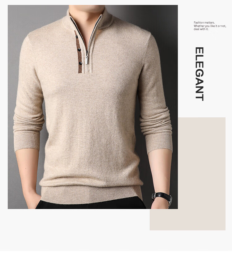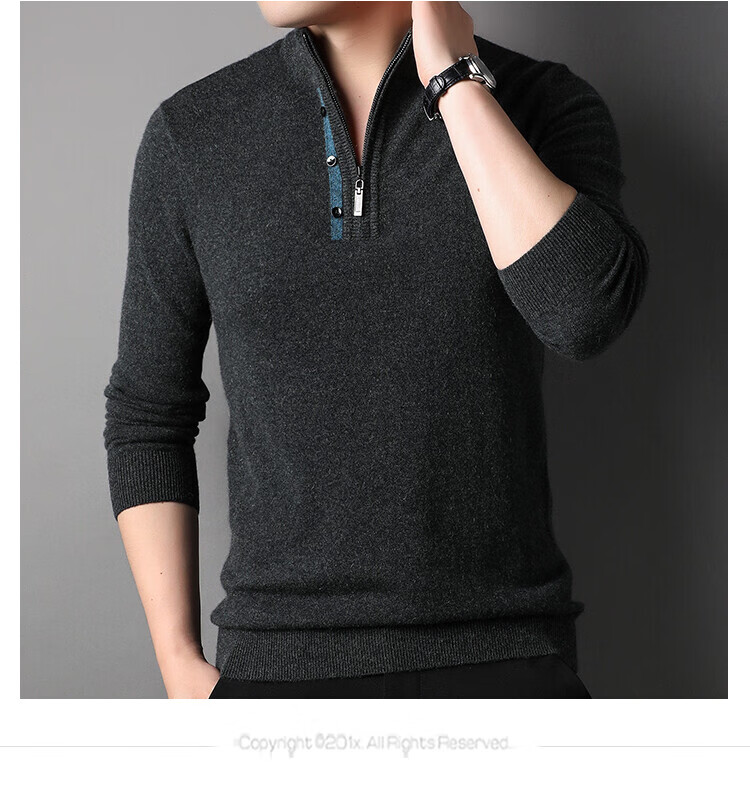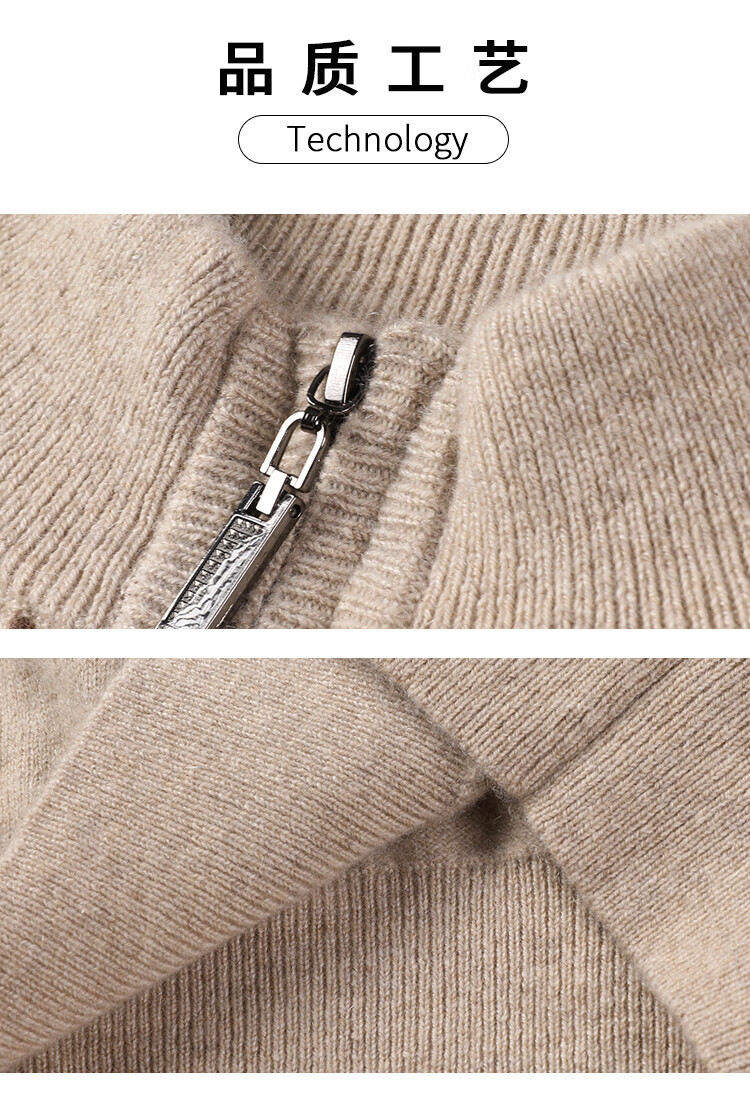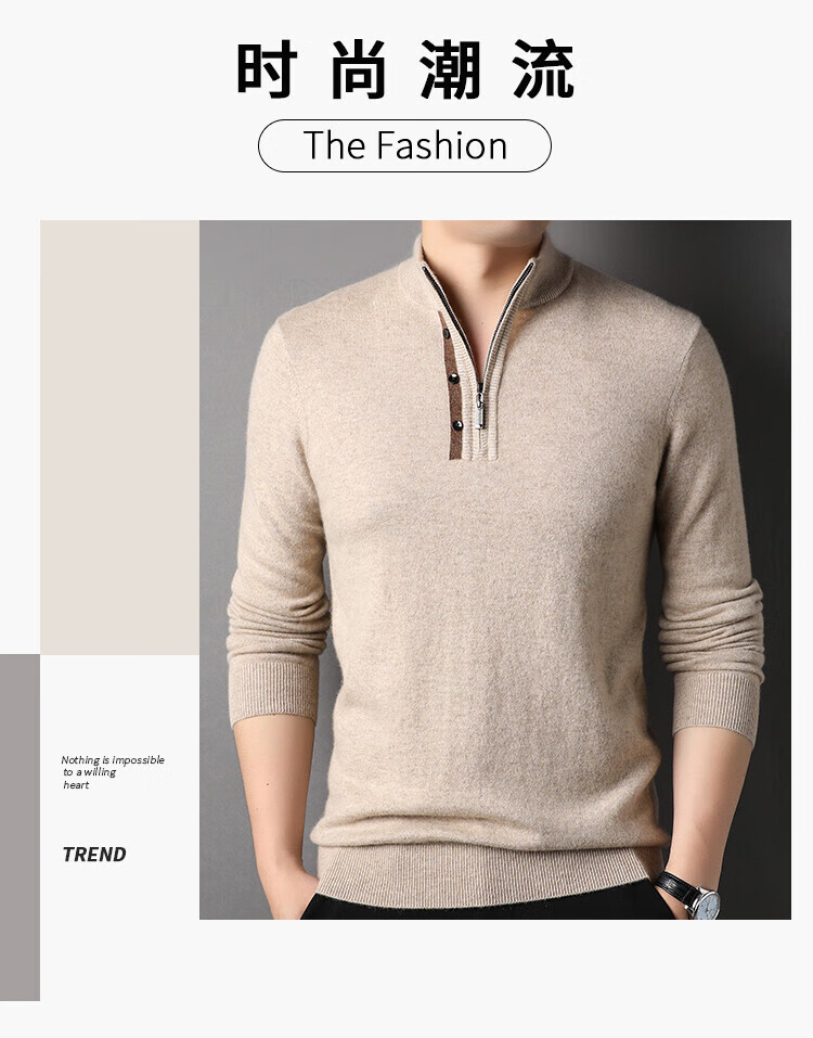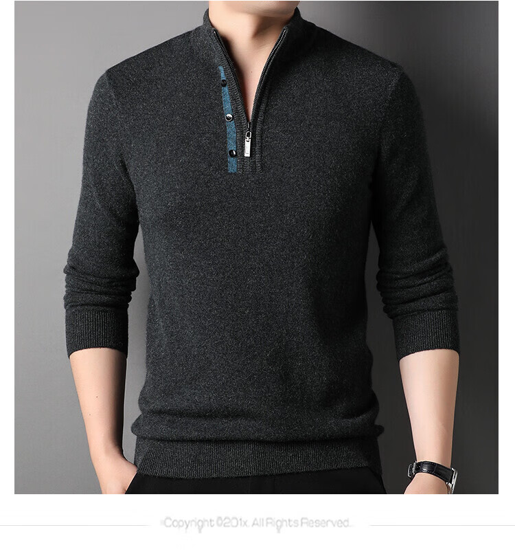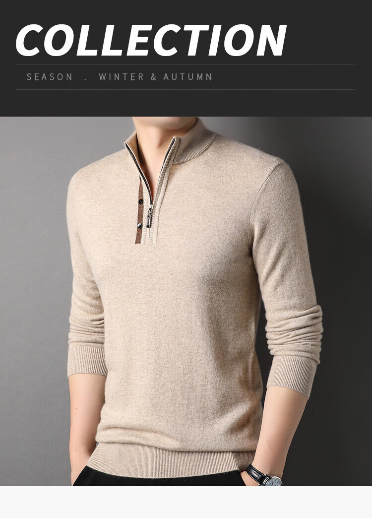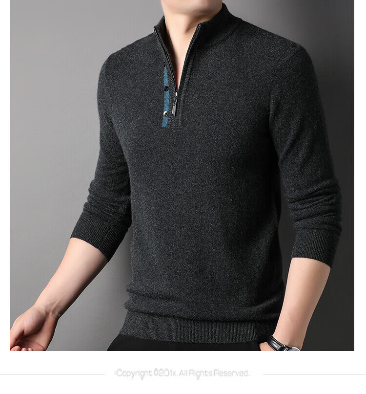 恒源祥(HYX)羊绒衫男100纯羊绒保暖时尚拉链半高领男士高端羊毛毛衣男装 黑色 105