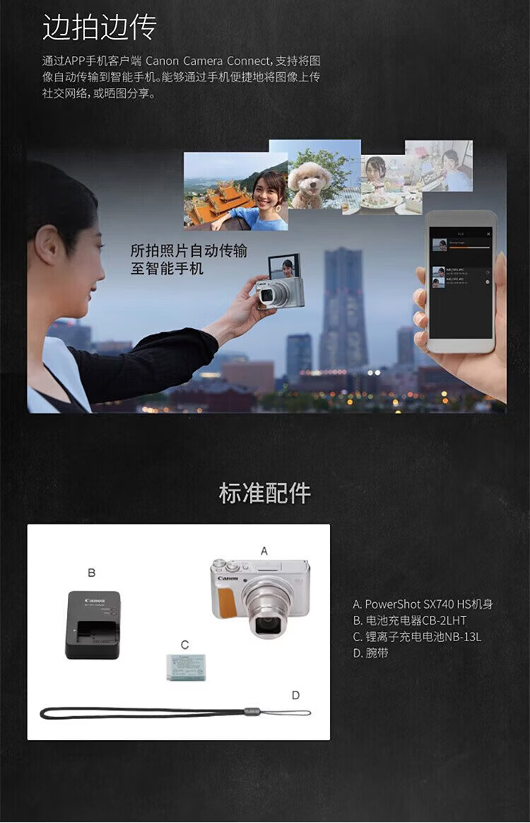 Canon PowerShot SX740 HS digital camera Home travel photography digital camera PowerShot SX740 HS Silver Official standard No photography gift package without memory card ~ Recommended purchase package