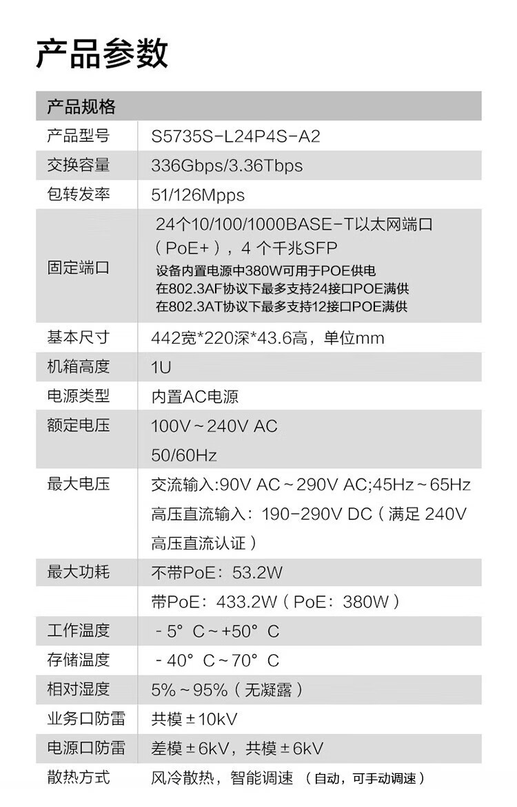 华为(HUAWEI)坤灵 S5735S-L24P4S-A2 24口千兆POE交换机功率380W 企业级三层网管核心汇聚层网络分线器交换器 24口千兆POE+4个千兆光 机架式 适用中小企业商业园区办公