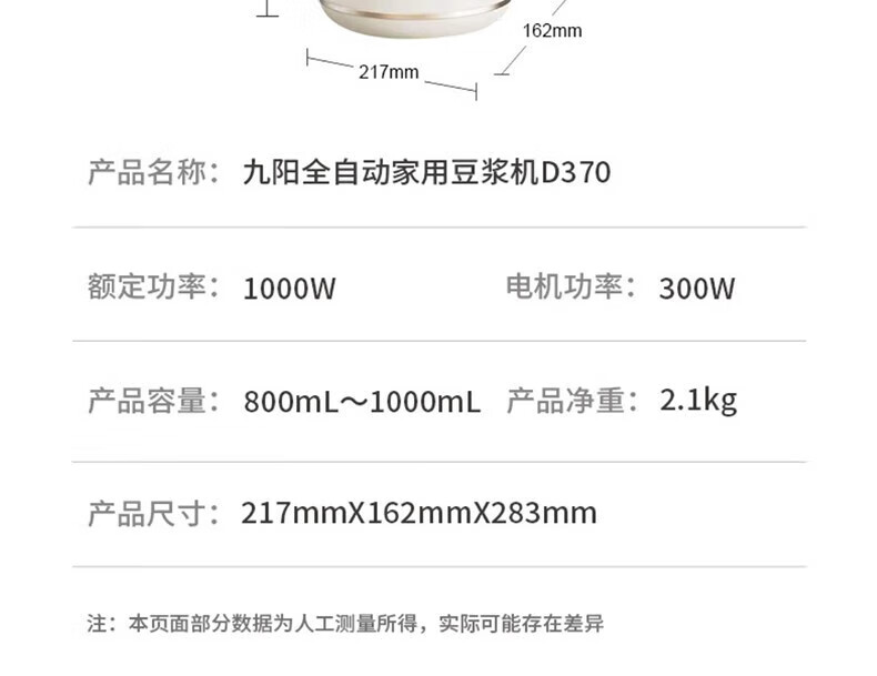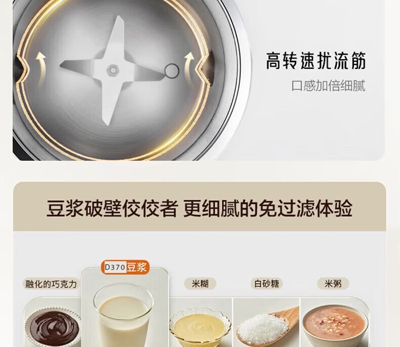Joyoung D370 Sojamilchmaschine für 1–2 Personen, multifunktionale, filterfreie Wandbrechmaschine, 1 l, kleiner Einzelschlafsaal, Saft, Reis, Müsli, DJ10X-D370