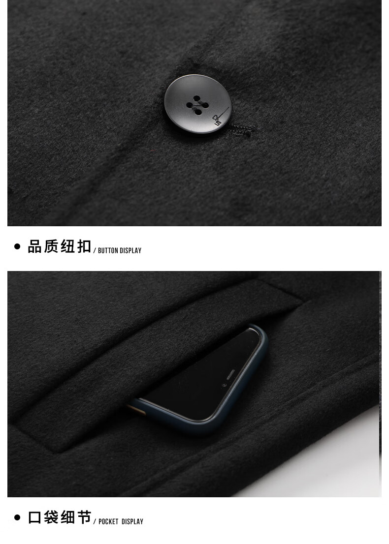 Hengyuanxiang große Herrenwolle doppelseitiger Wollmantel Herbst und Winter plus fett plus Größe Herrenanzugkragen Wollmantel locker lässig dicker Mann schwarz 4XL (empfohlen 180-190Jin Jin entspricht 0,5 kg)