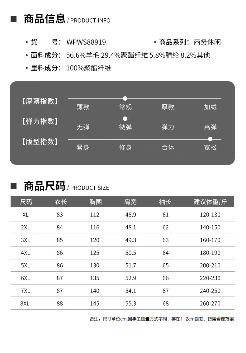 China (cm) 165 / 88-90 170 / 96-98 175 / 108-110 180 / 118-122 185 / 126-130