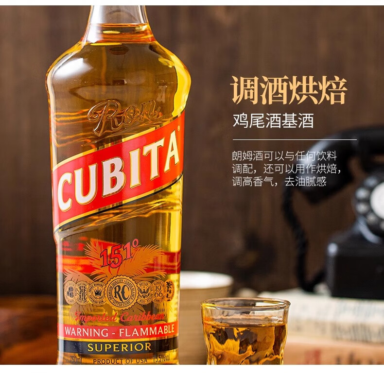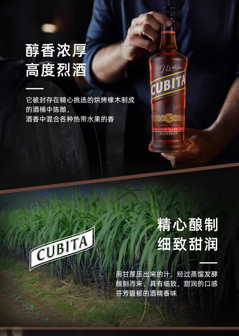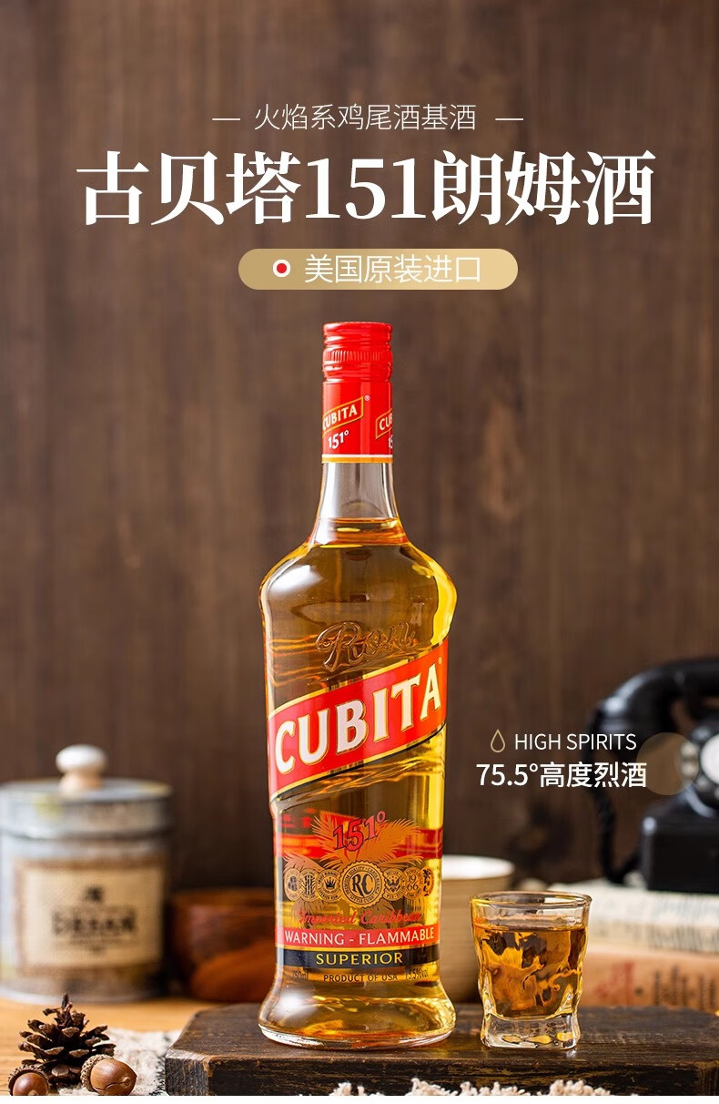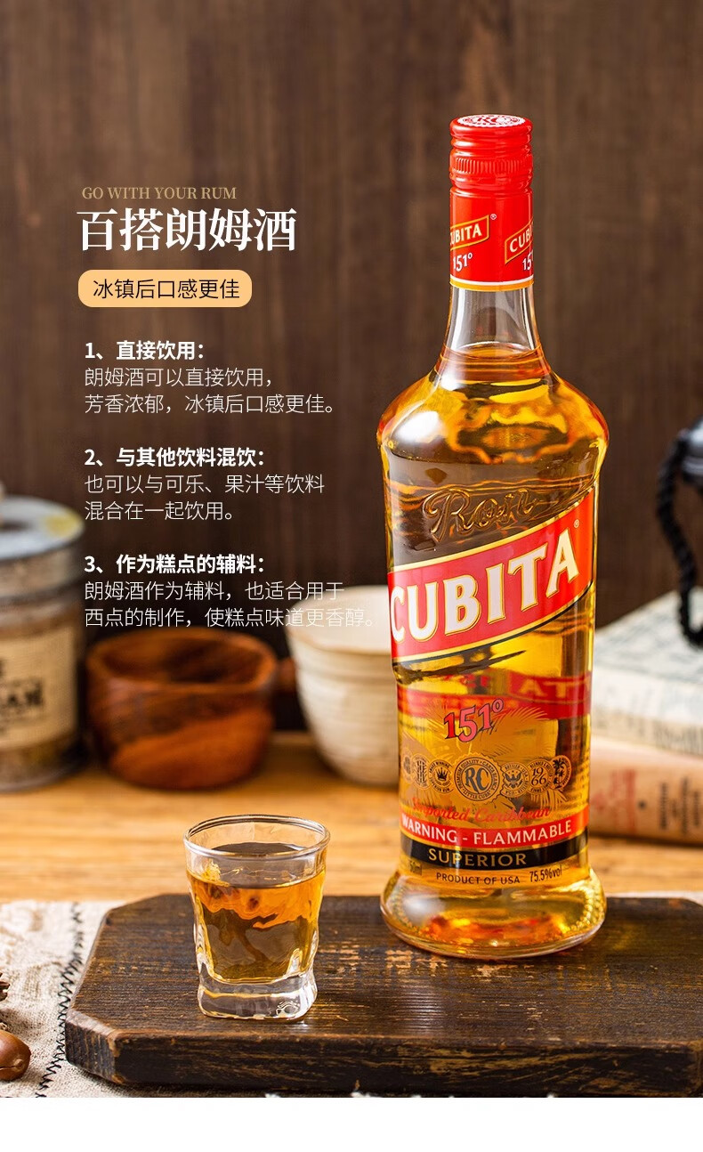 古贝塔cubita白/黑朗姆酒40度 750mL进口朗姆酒75.5度正品行货 金朗姆 750mL 1瓶 单瓶装