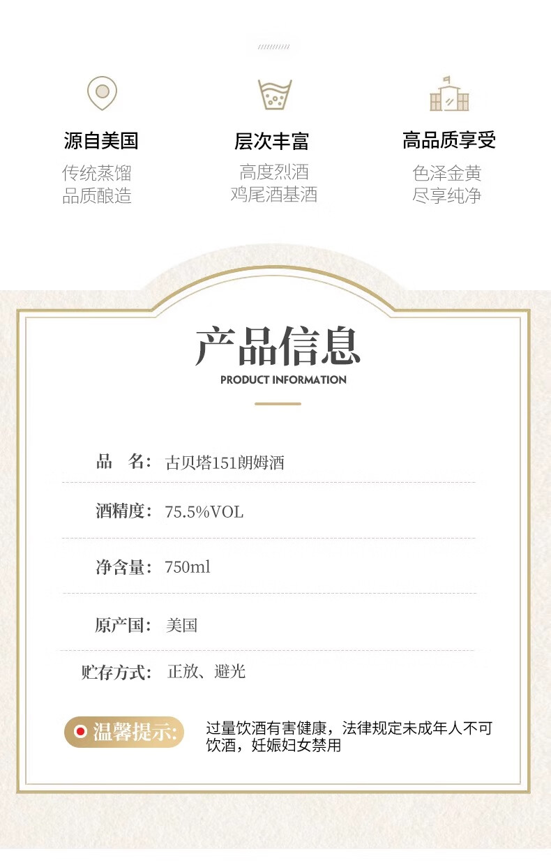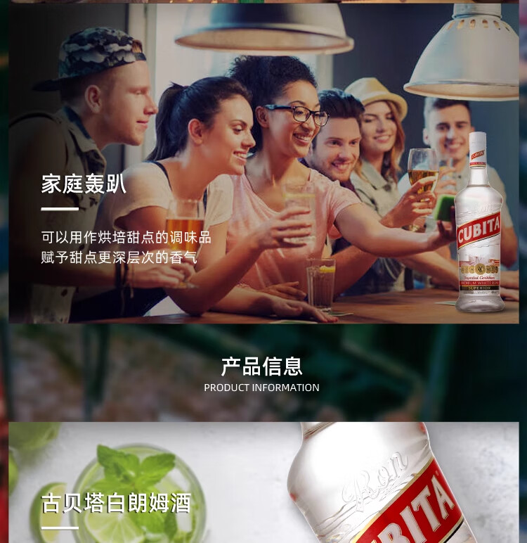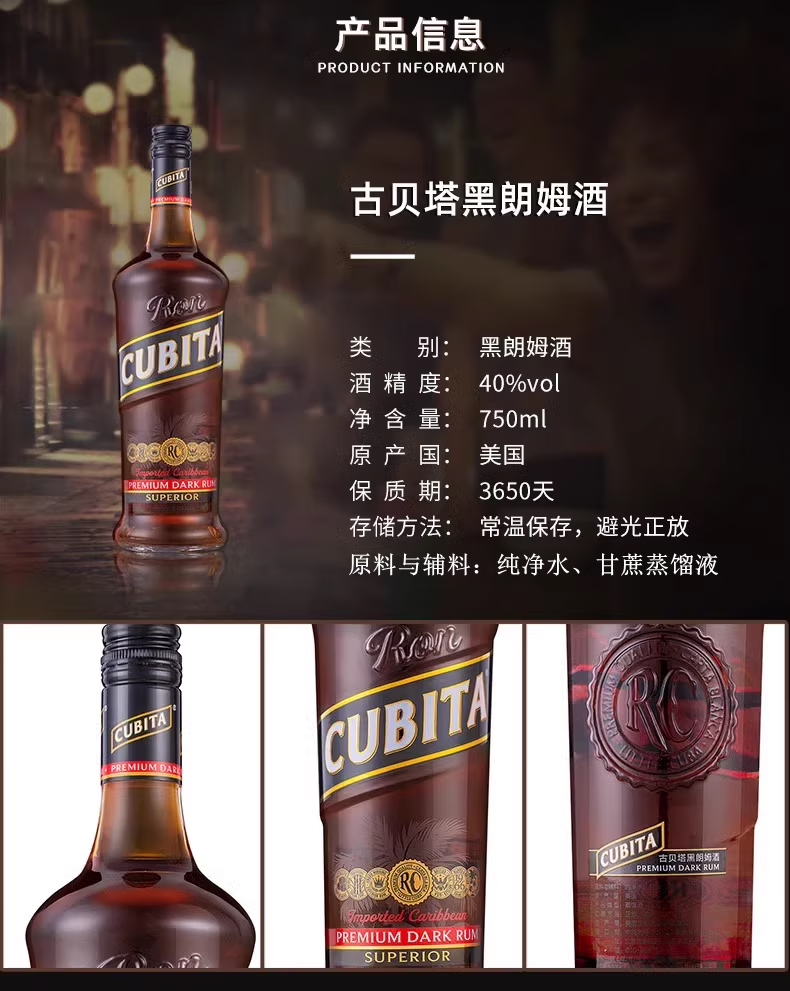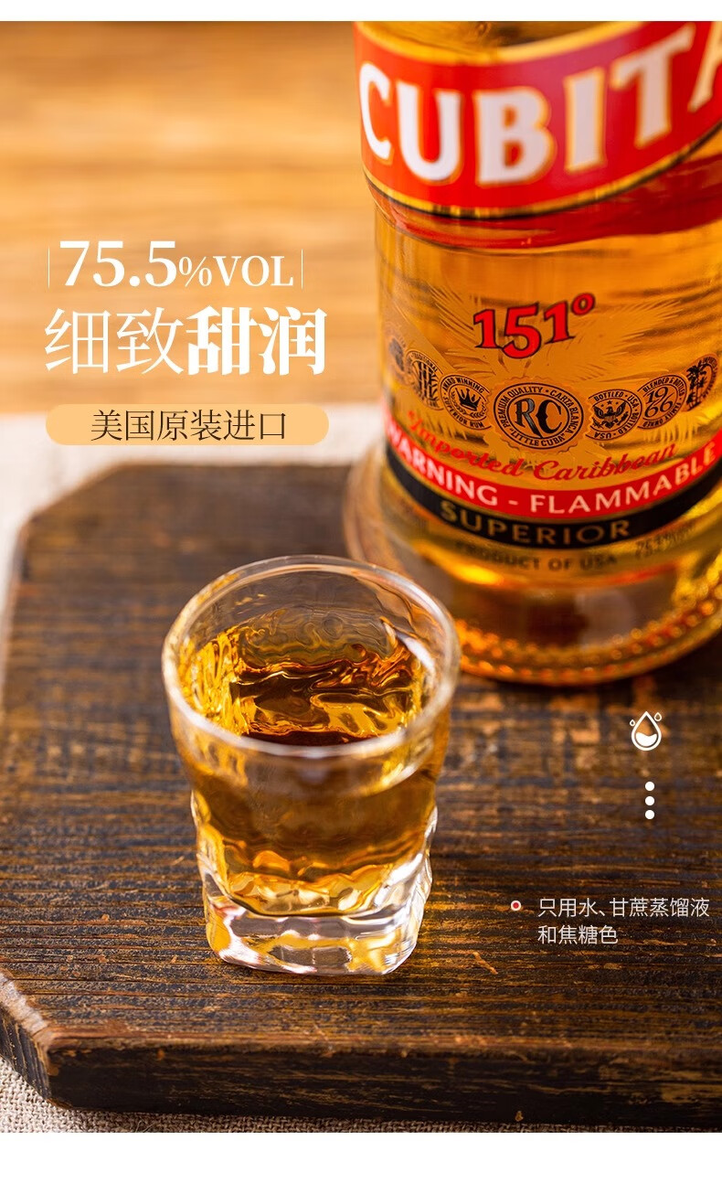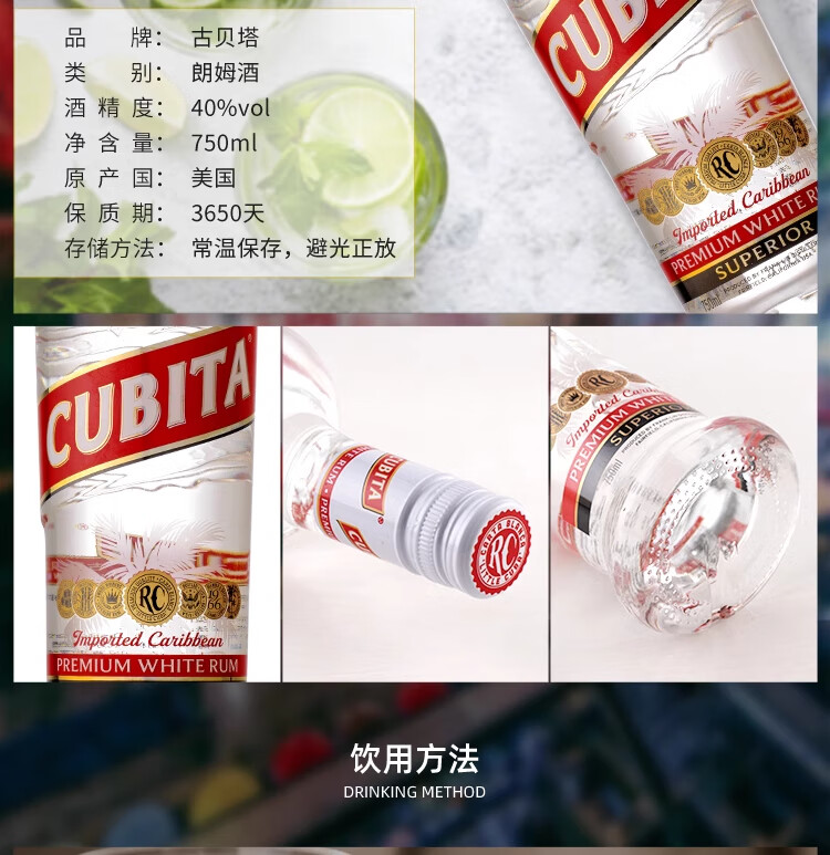 古贝塔cubita白/黑朗姆酒40度 750mL进口朗姆酒75.5度正品行货 金朗姆 750mL 1瓶 单瓶装