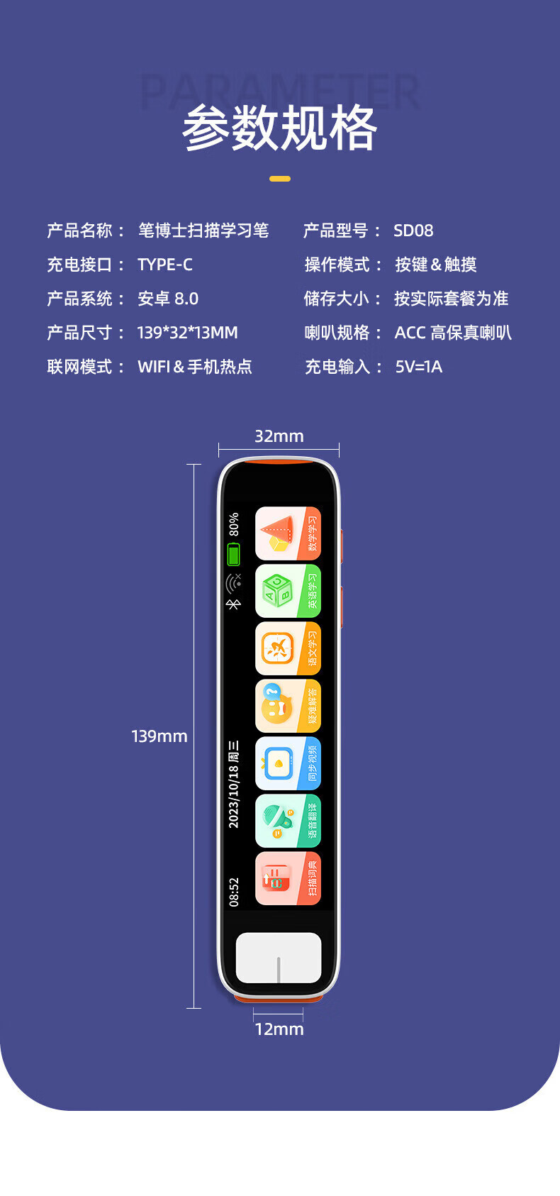 La machine Huawei convient à la numérisation de la machine de lecture à stylo pour traduire l'anglais pour le scan intelligent multifonctionnel universel du collège et du lycée. Version hors ligne haut de gamme de 3,69 pouces gris fer, sujet général