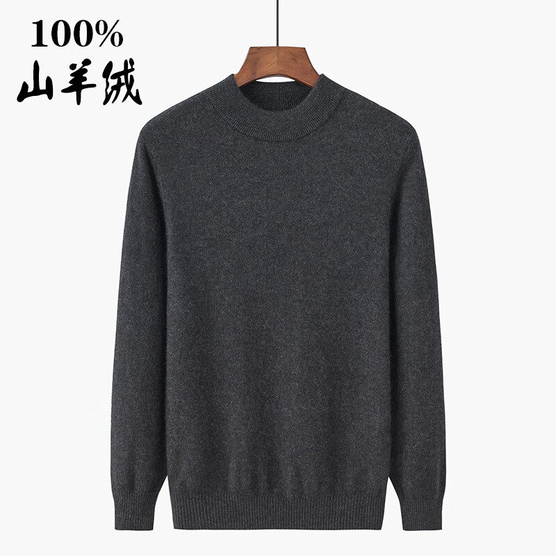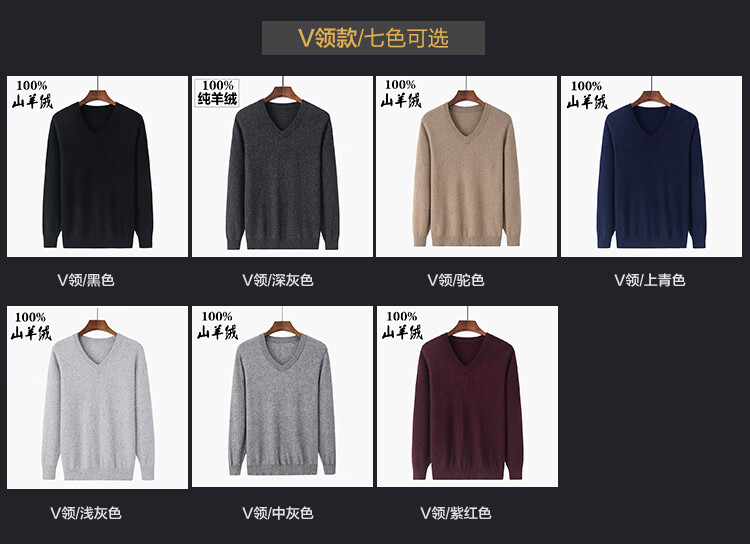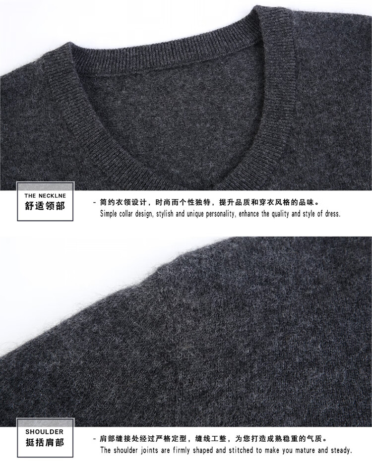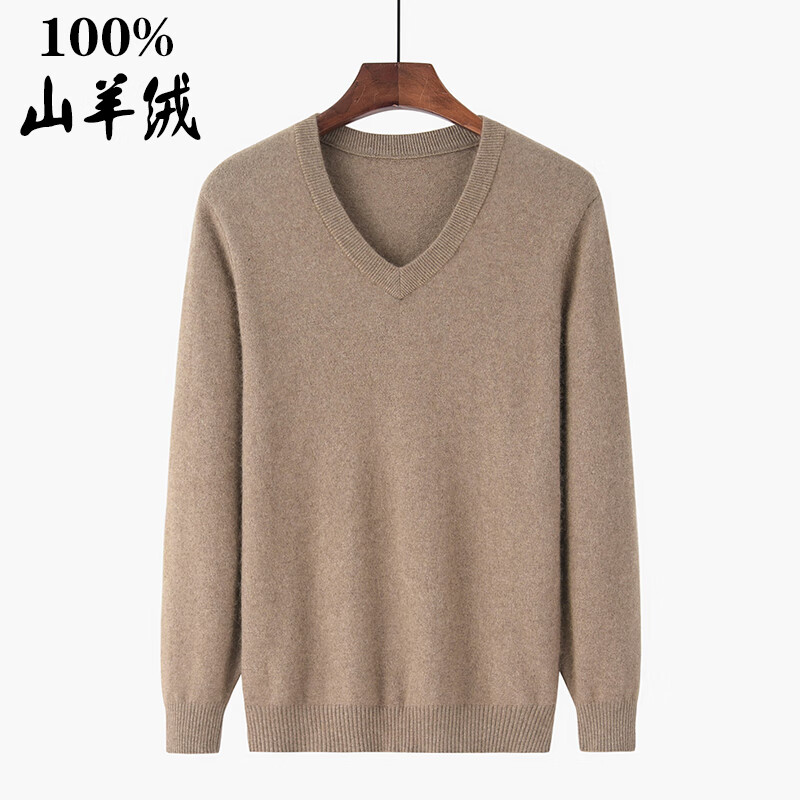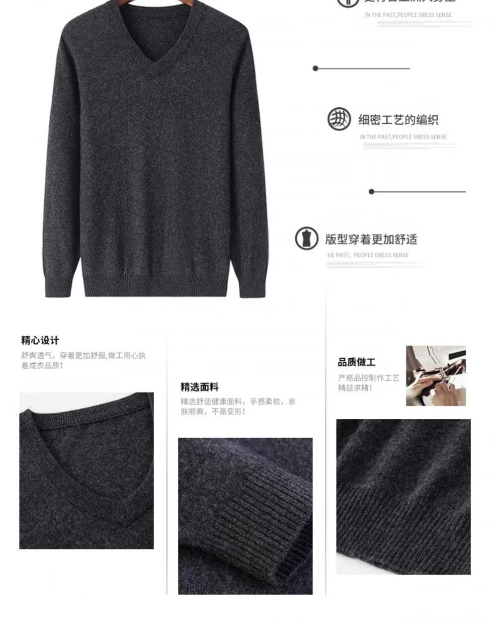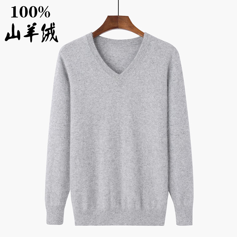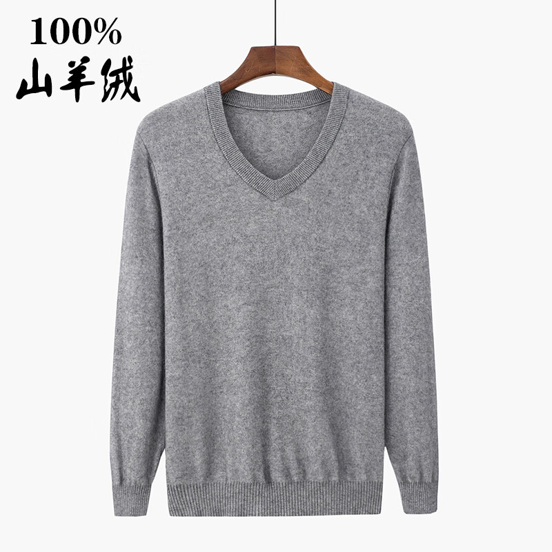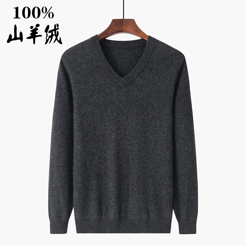 鄂尔多斯市产2024纯羊绒衫秋冬V领毛衣男中年商务纯色打底针织衫 产自鄂尔多斯市-V领/深灰色 XL 175/92A(145-160斤)