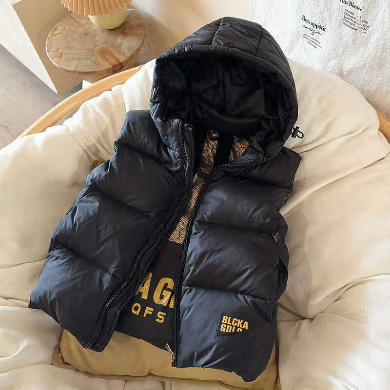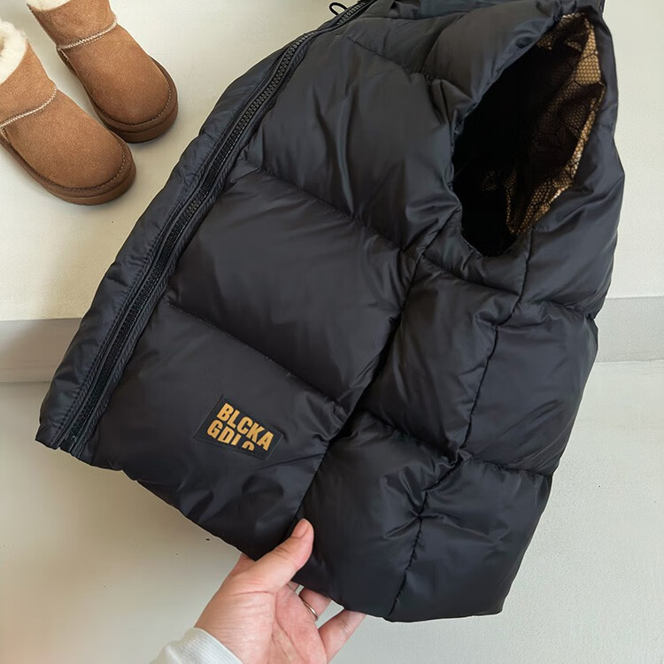 G.DUCKKIDS儿童棉马甲冬季男女童加厚连帽背心2025新款中大童保暖外穿马夹 黑色 150 cm