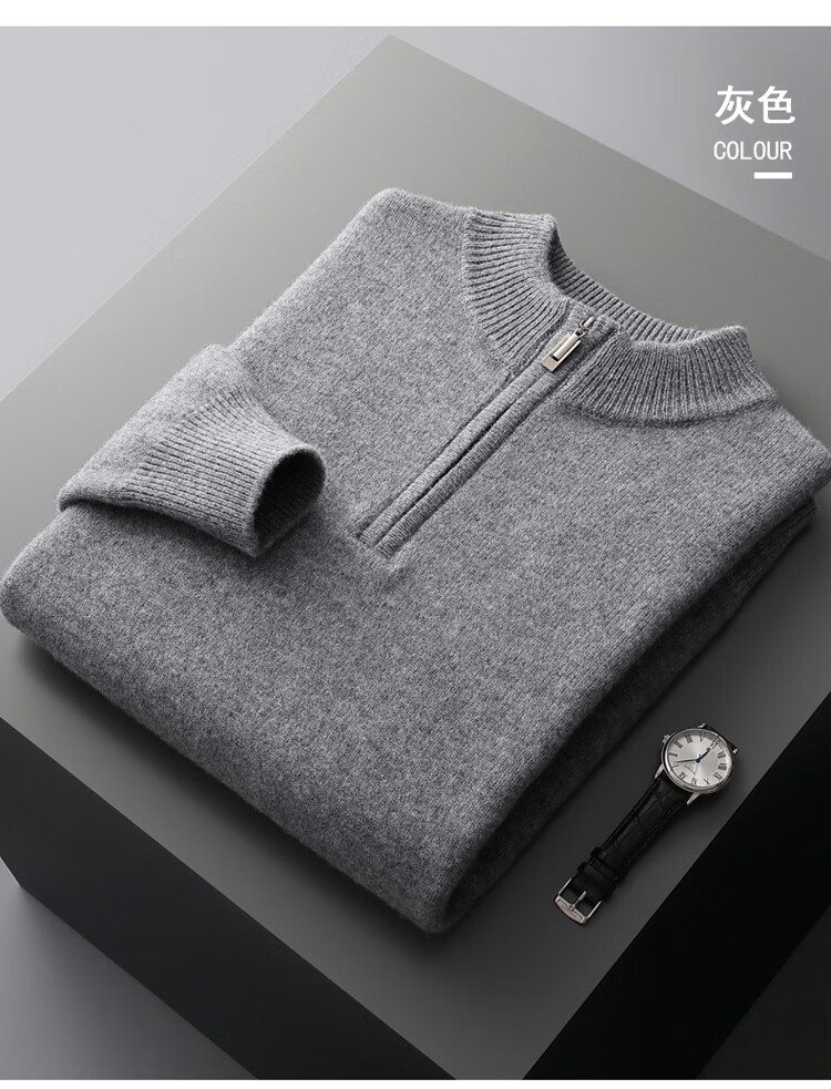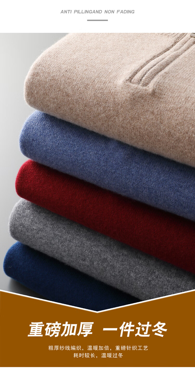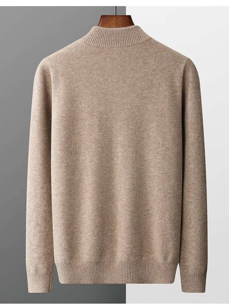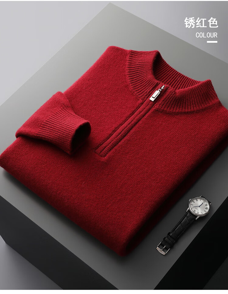 Men's thickened and warm autumn and winter pure cashmere sweater half-height zipper solid color long-sleeved pullover sweater produced in Ordos City - rust red M