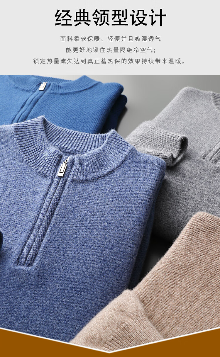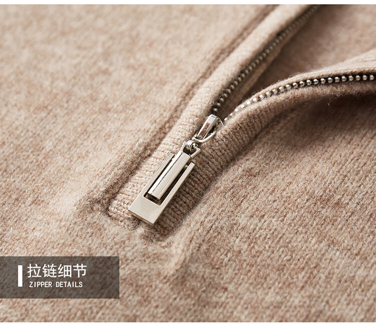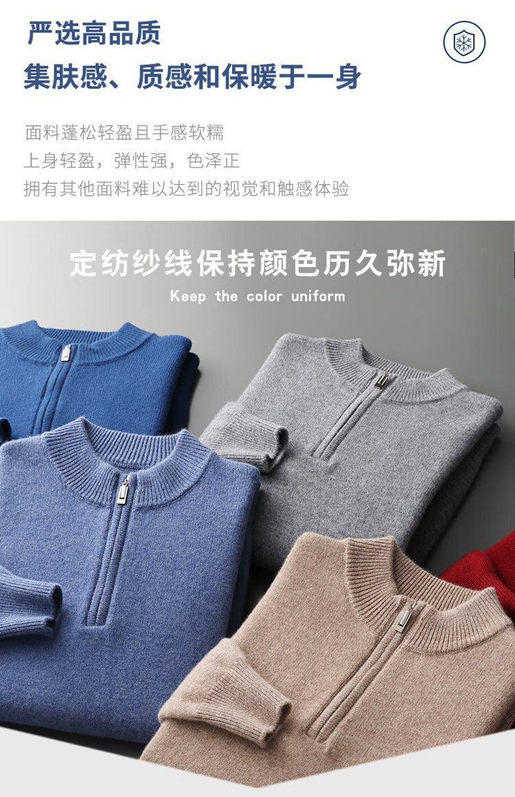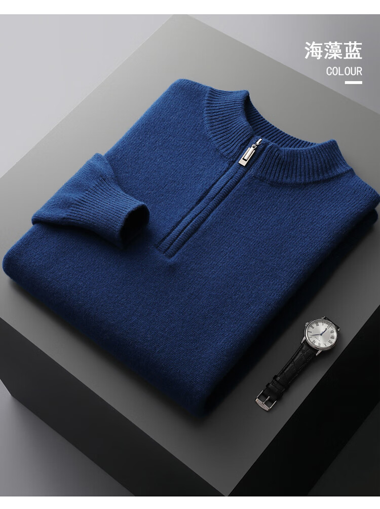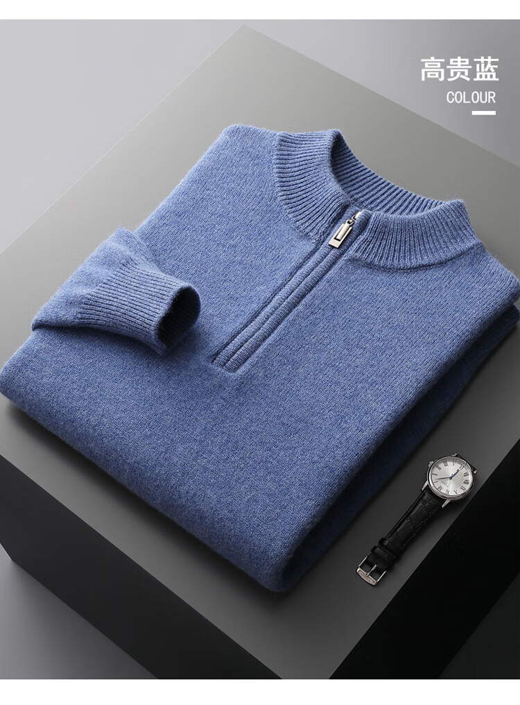 Men's thickened and warm autumn and winter pure cashmere sweater half-height zipper solid color long-sleeved pullover sweater produced in Ordos City - rust red M