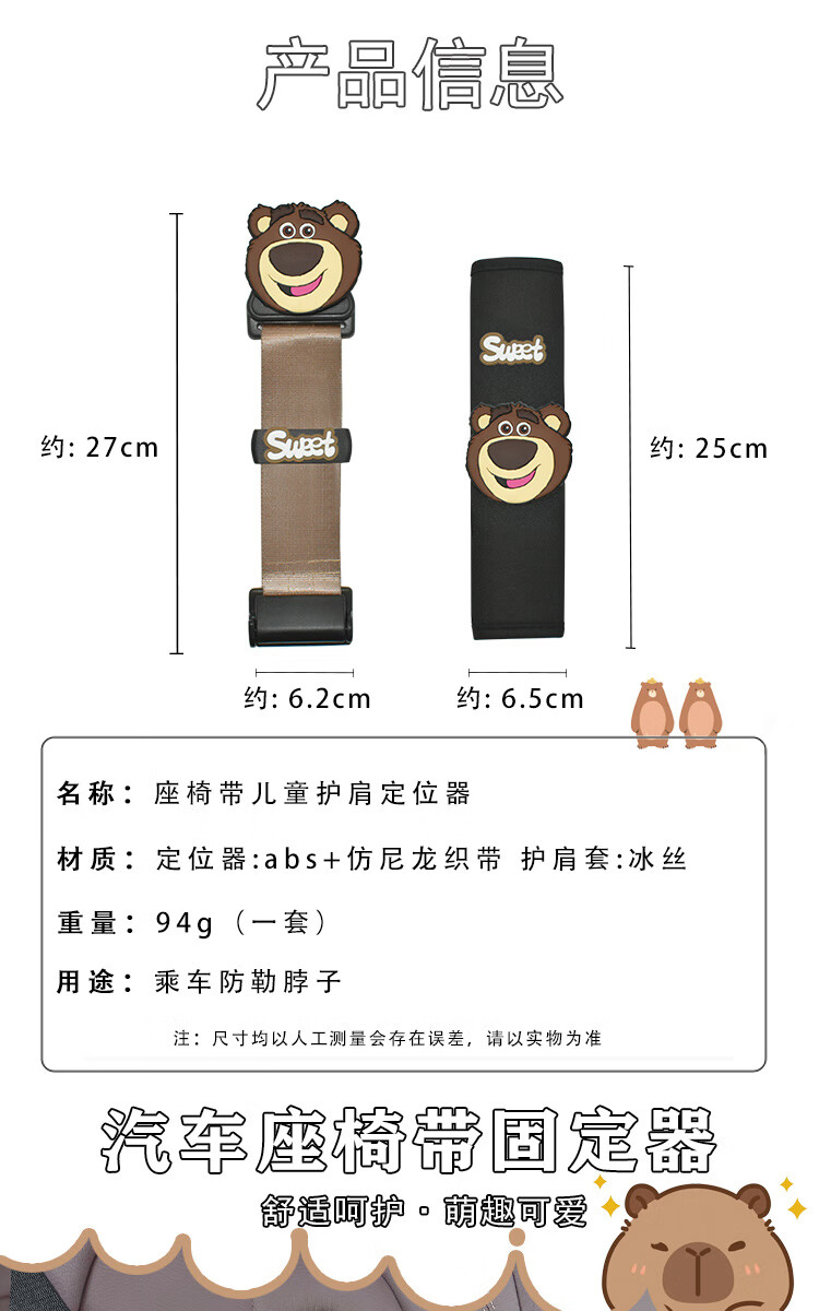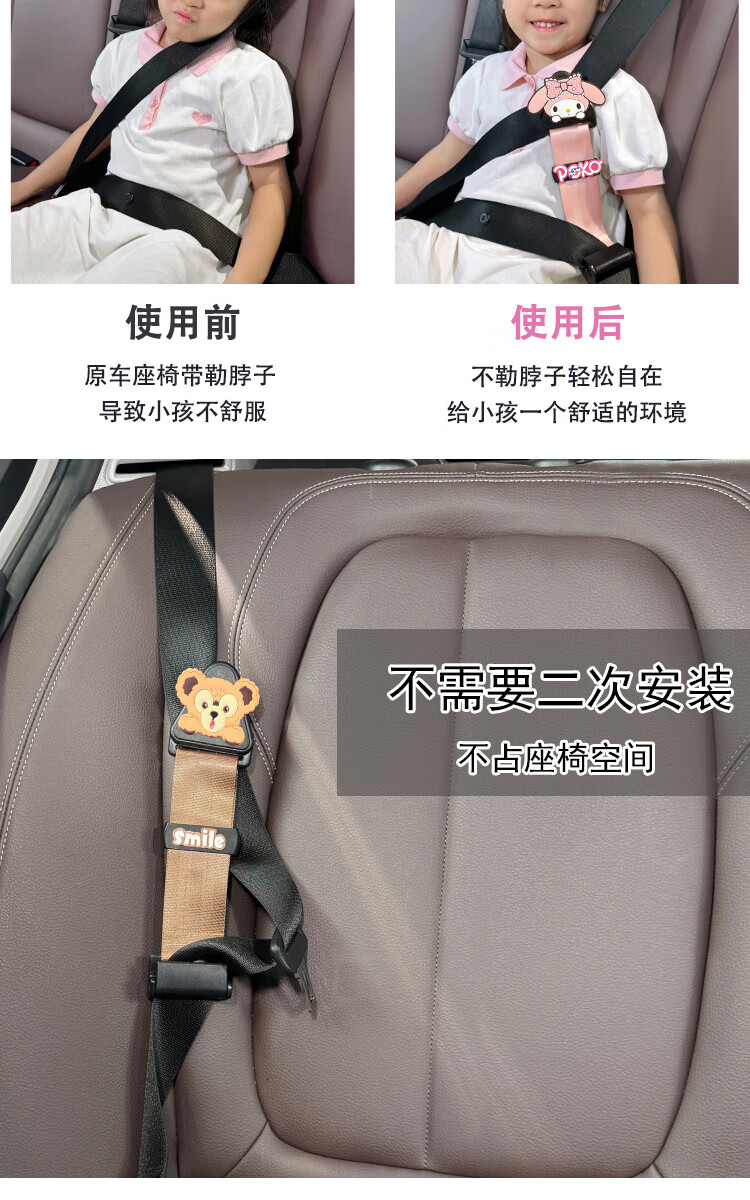 叮贝奇汽车儿童安全带调节器保护套卡通车载宝宝防勒脖肚简易座椅辅助带 简约款(固定器)