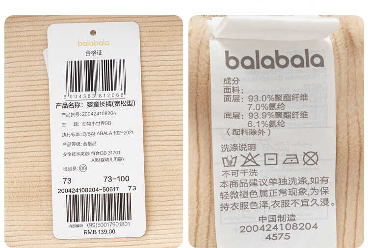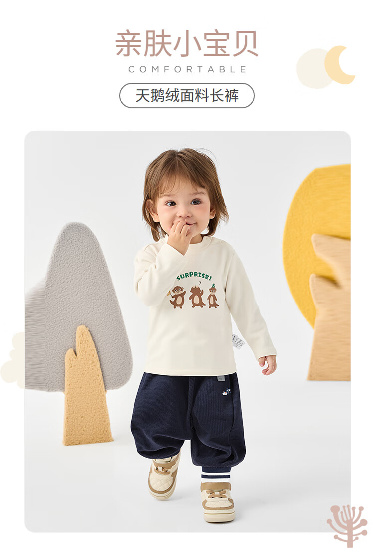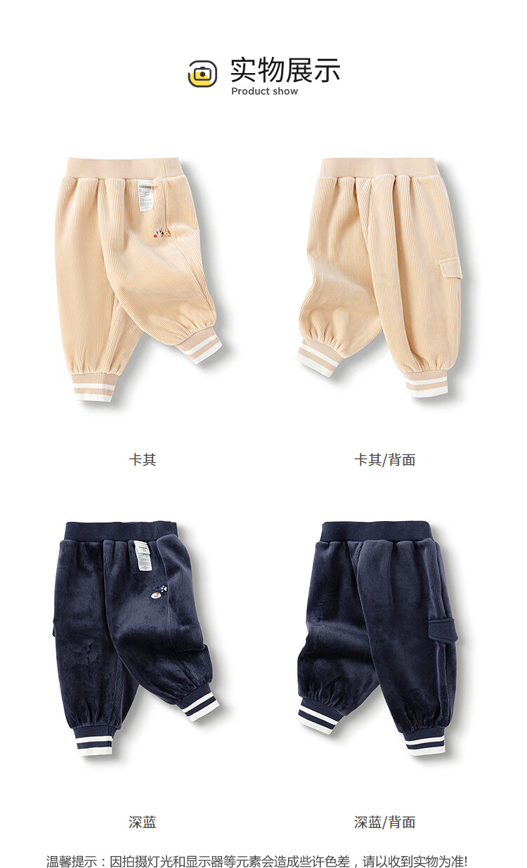 巴拉巴拉童装儿童长裤男女童运动裤冬装宝宝长裤子休闲时尚保暖 卡其50617 100