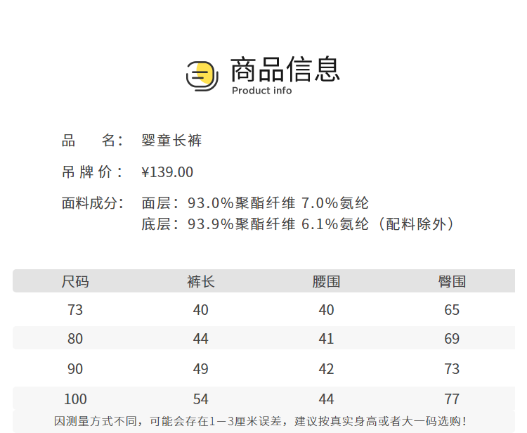 Outseam (cm) 99 cm 101.5 cm 104 cm 106.5 cm 109 cm