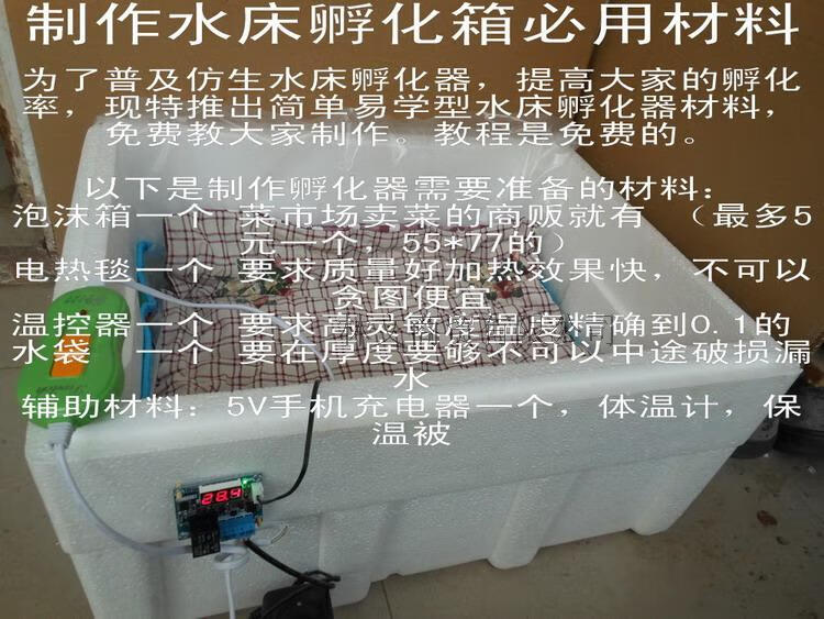 自制自动控温小型家用型水床孵化器小鸡鹌鹑鸽子蛋孵化机孵蛋器箱 100枚双电源铝板水床无箱