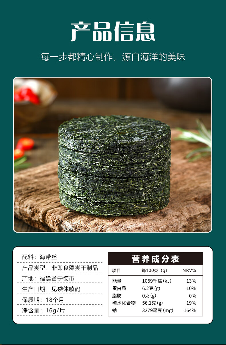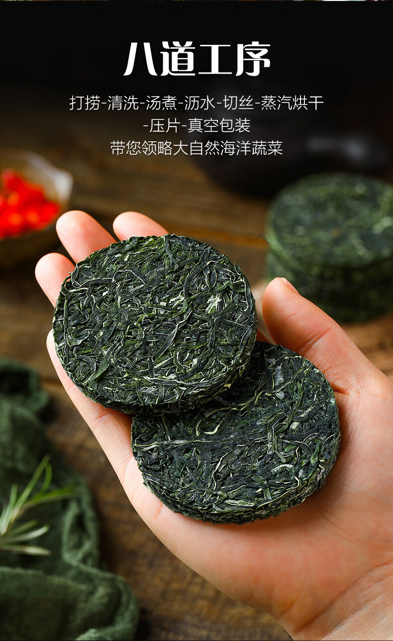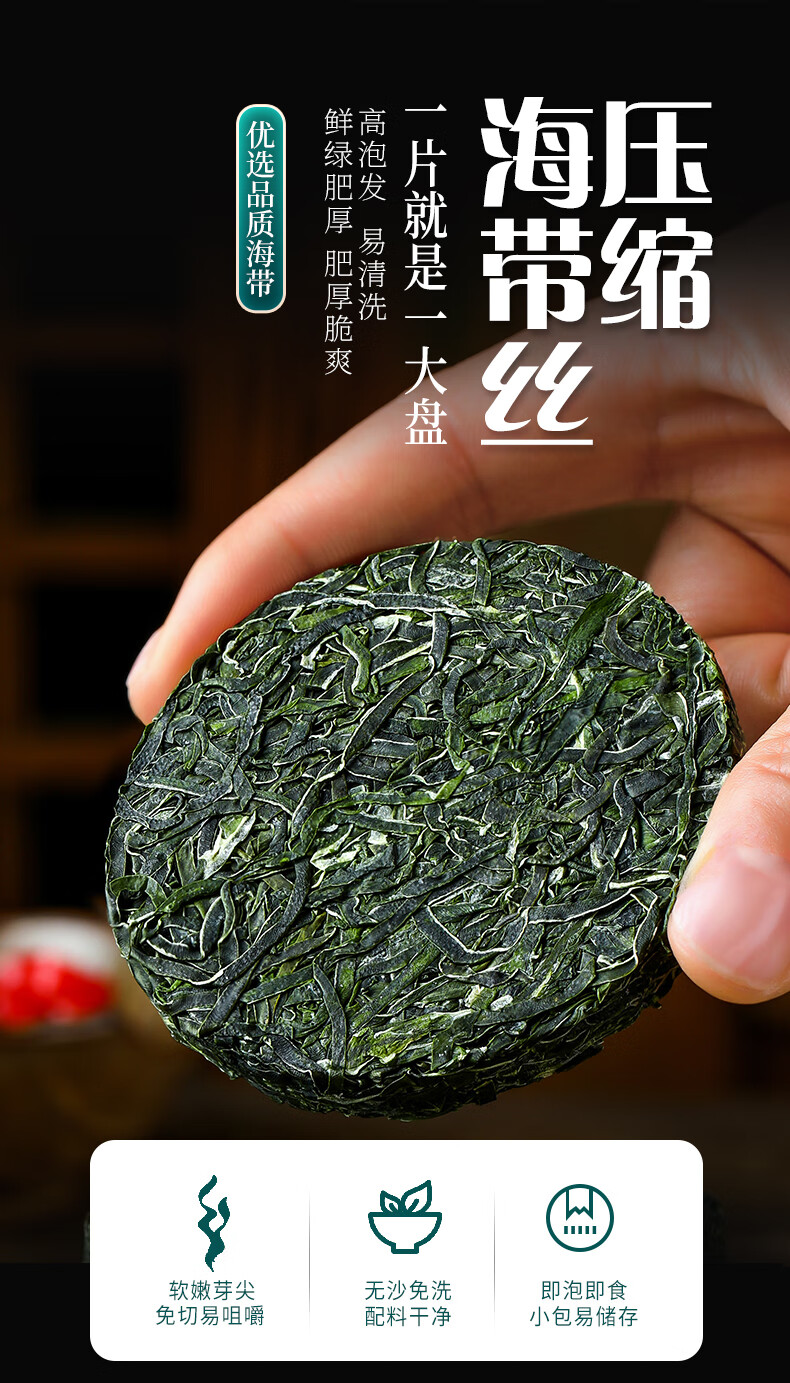 压缩海带丝 烘干高品质海带丝 圆饼无沙 高倍泡发 16g*5片