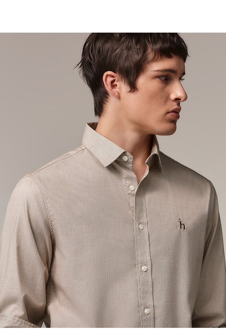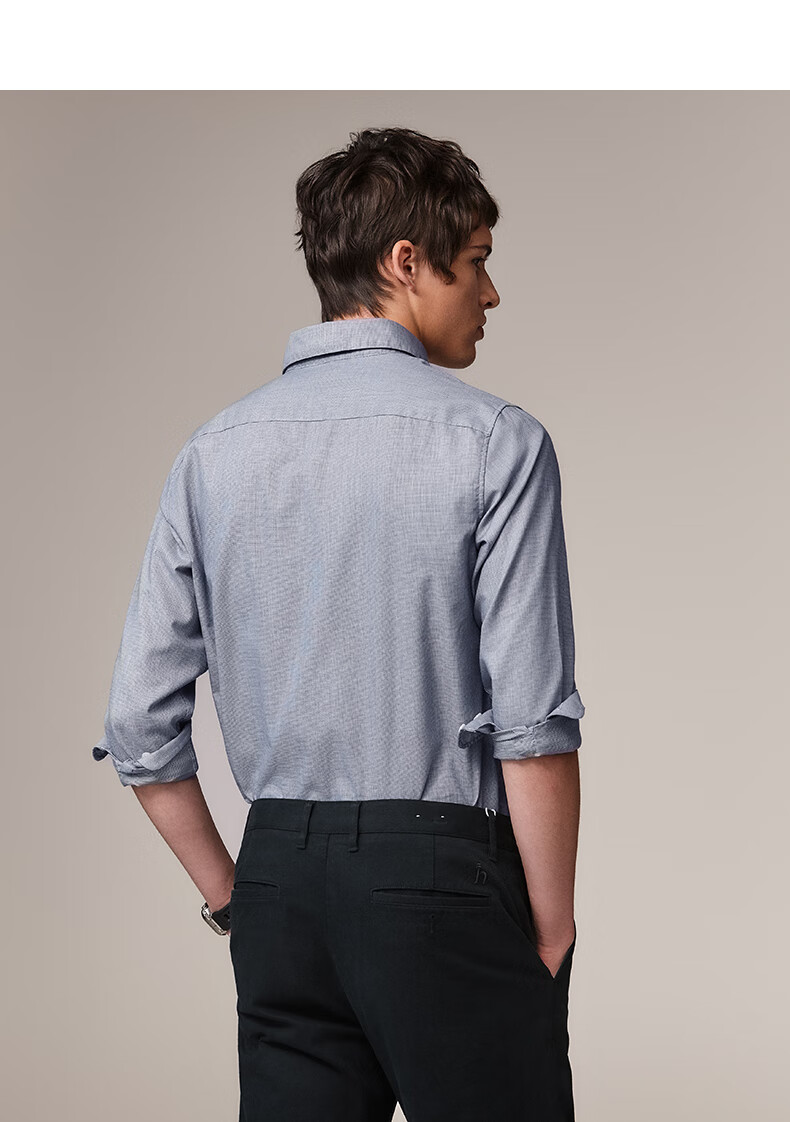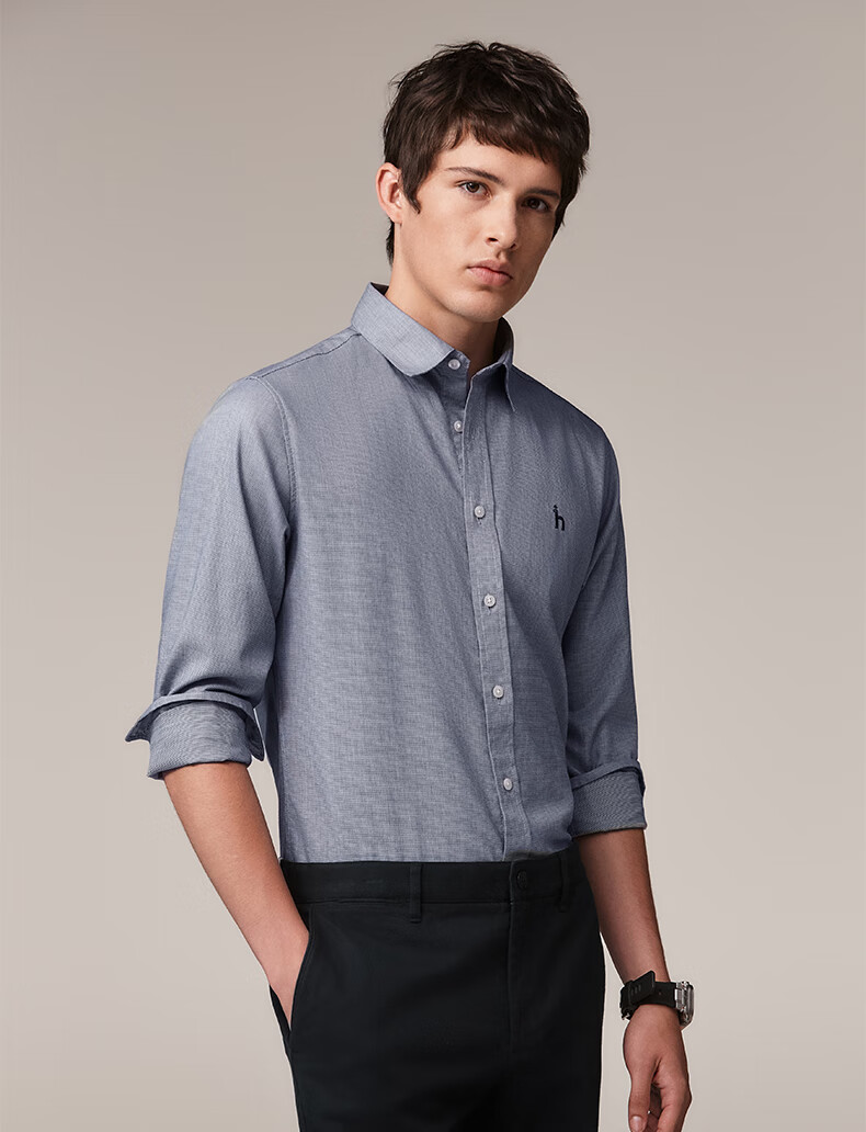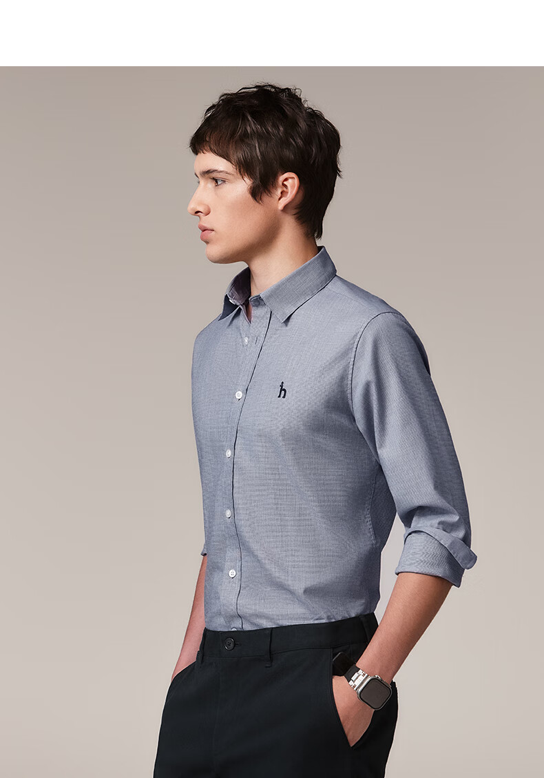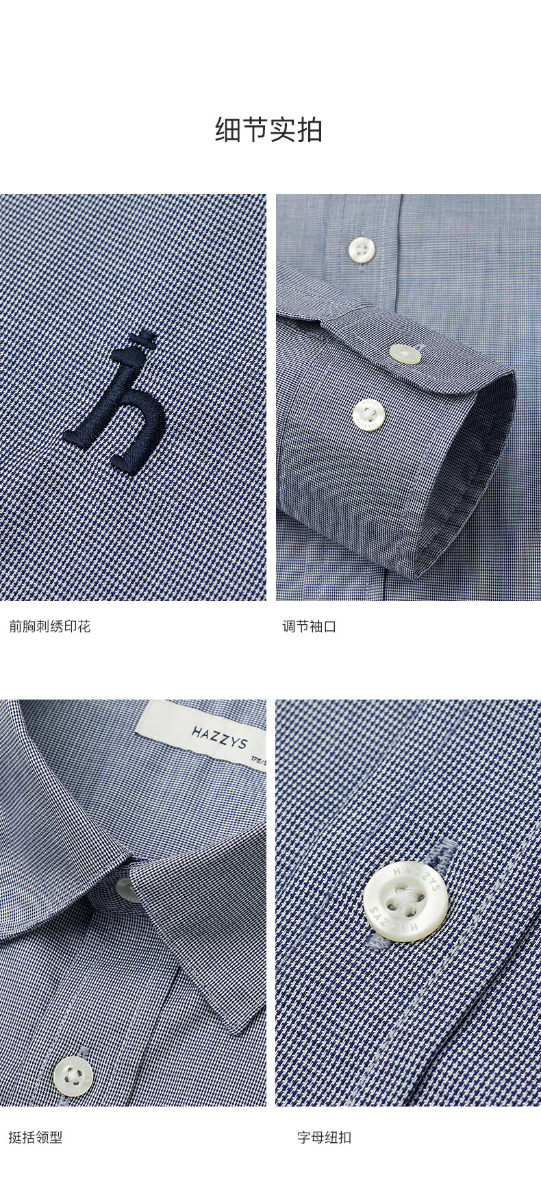 哈吉斯(HAZZYS)男装 秋款商务通勤衬衣小千鸟格长袖衬衫男ASCZK1BCK03 藏青色NV L (175/96A 48)