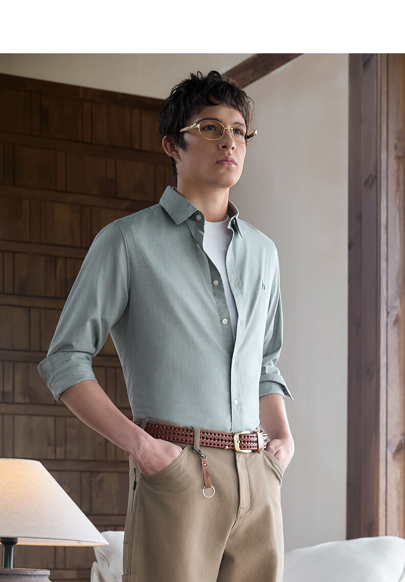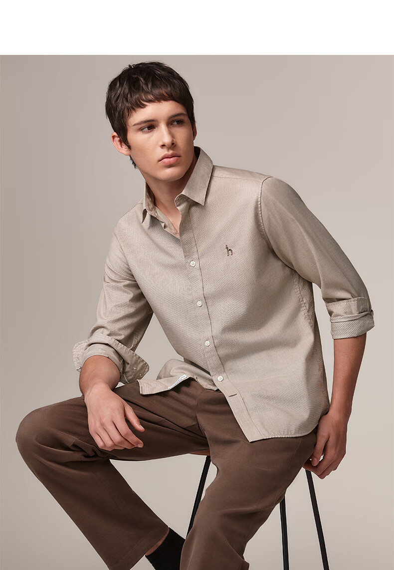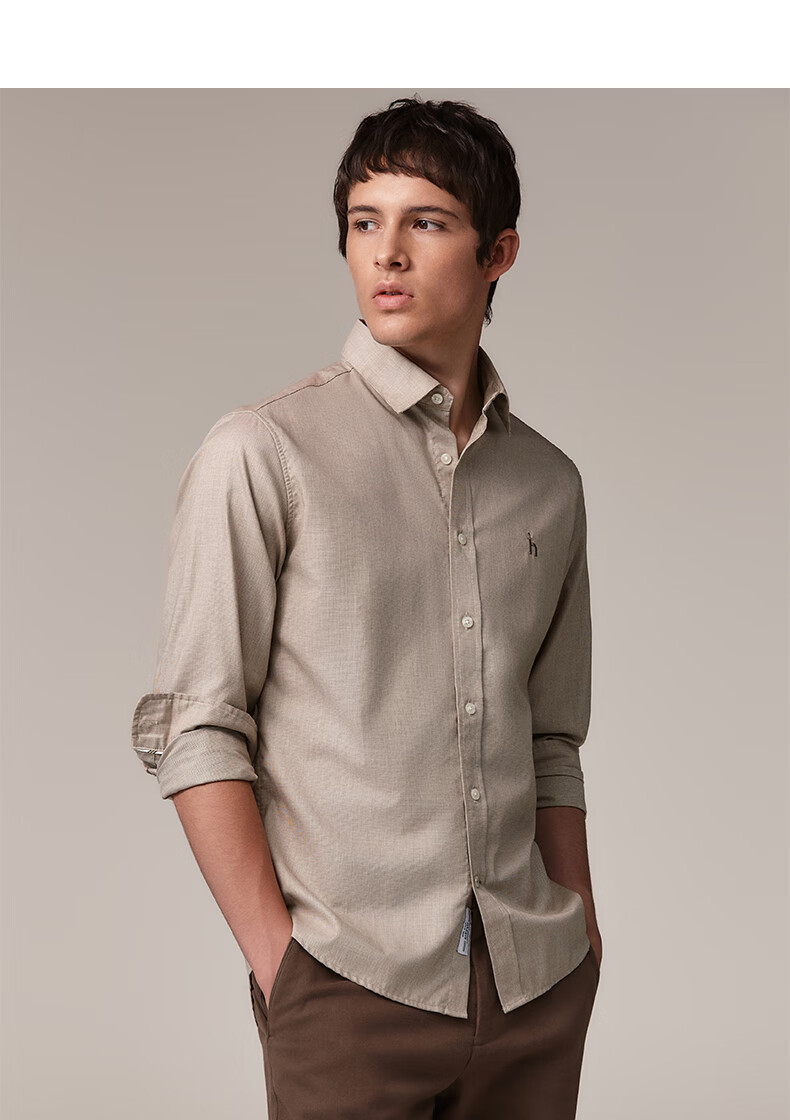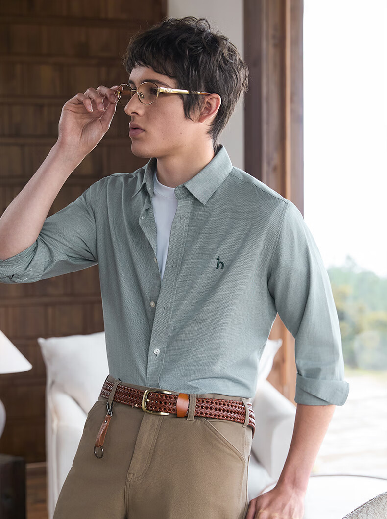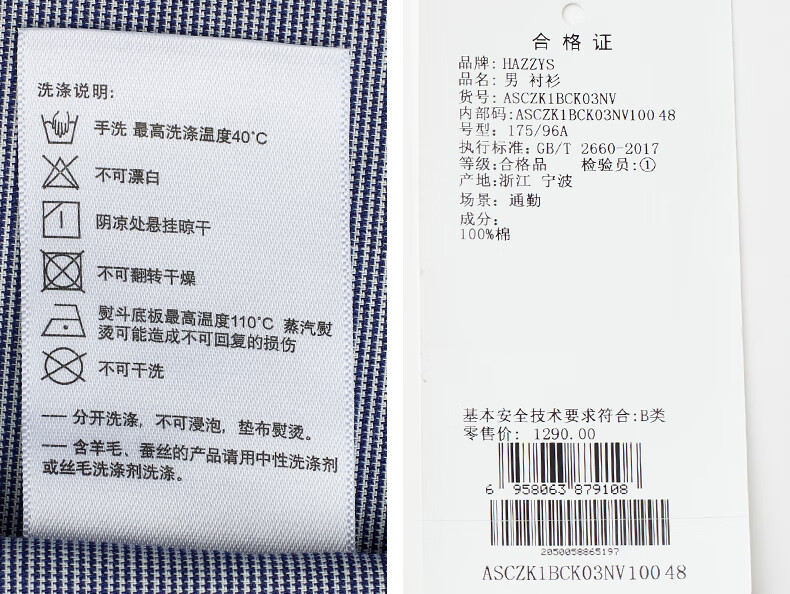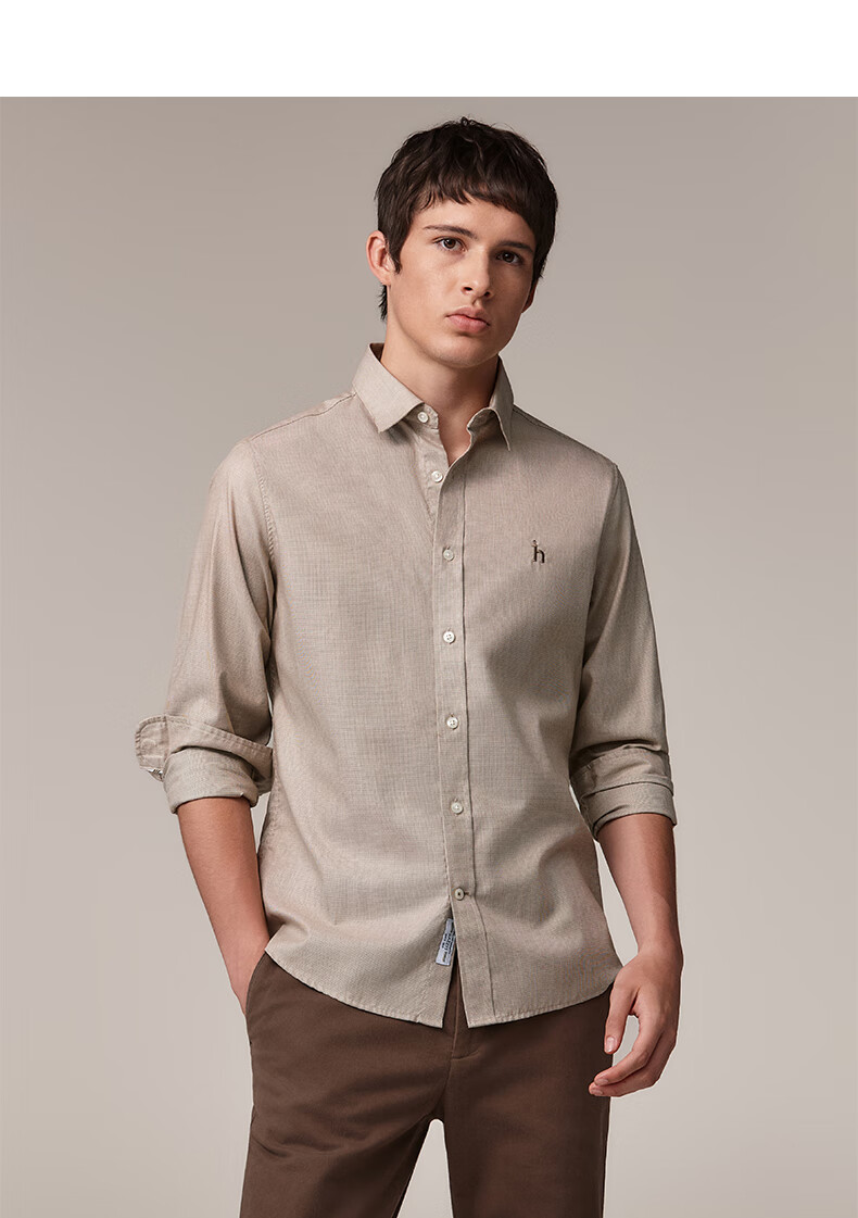 哈吉斯(HAZZYS)男装 秋款商务通勤衬衣小千鸟格长袖衬衫男ASCZK1BCK03 藏青色NV L (175/96A 48)