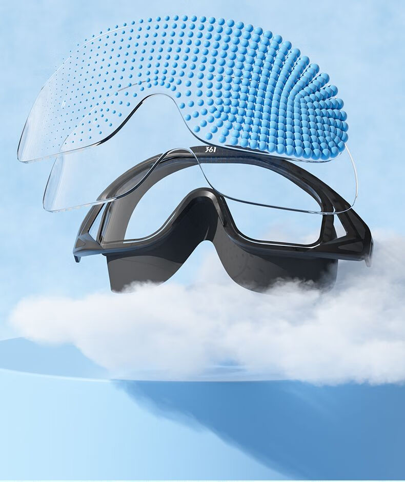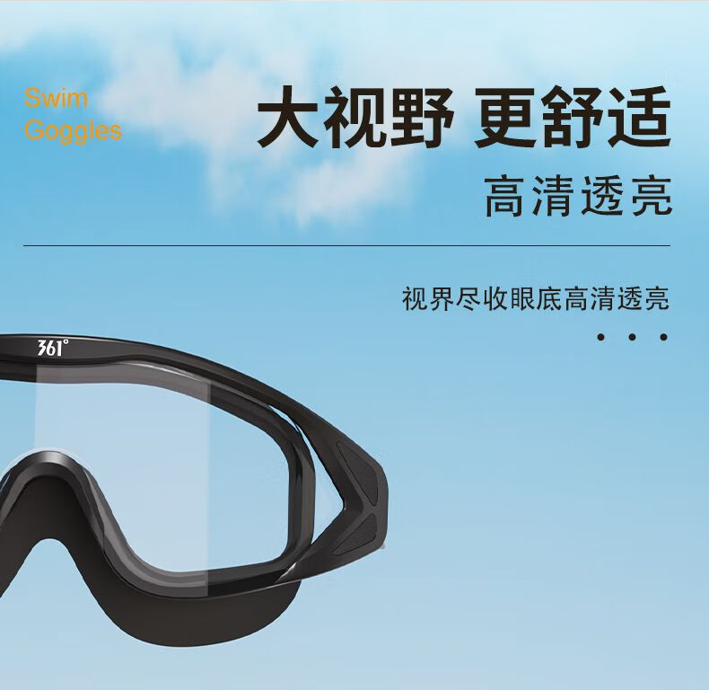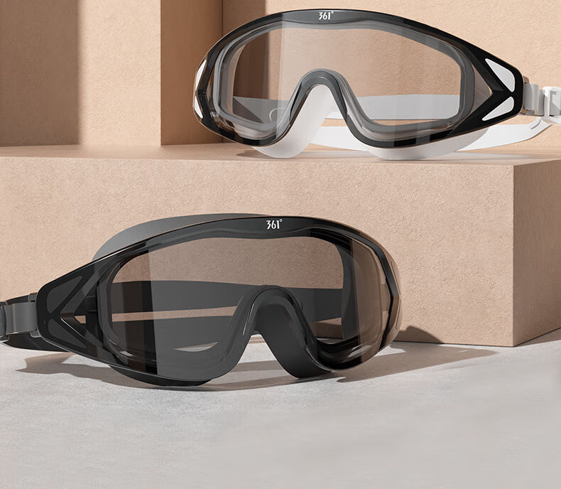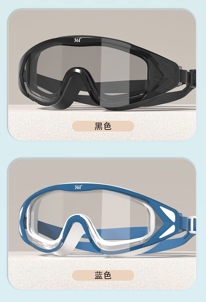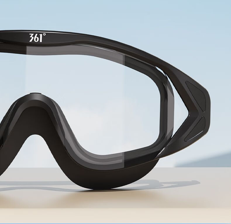 361 Swimming Goggles Waterproof and Anti-fog HD Large Frame Men's and Women's Swimming Goggles Professional Adult Diving Equipment Pure Black - High-Looking Frameless Flat Light