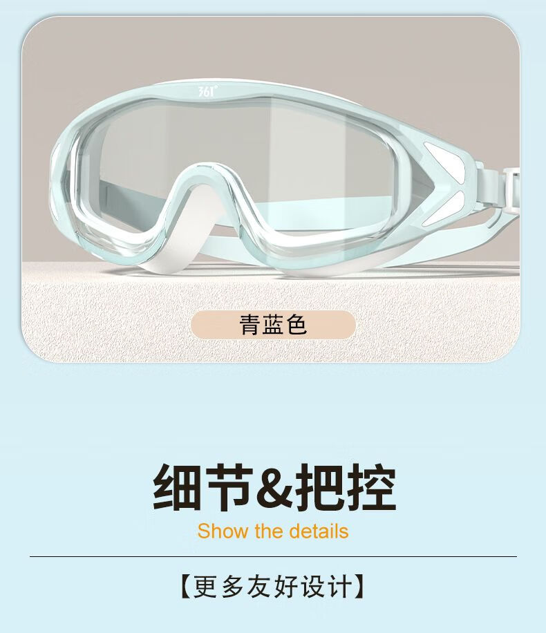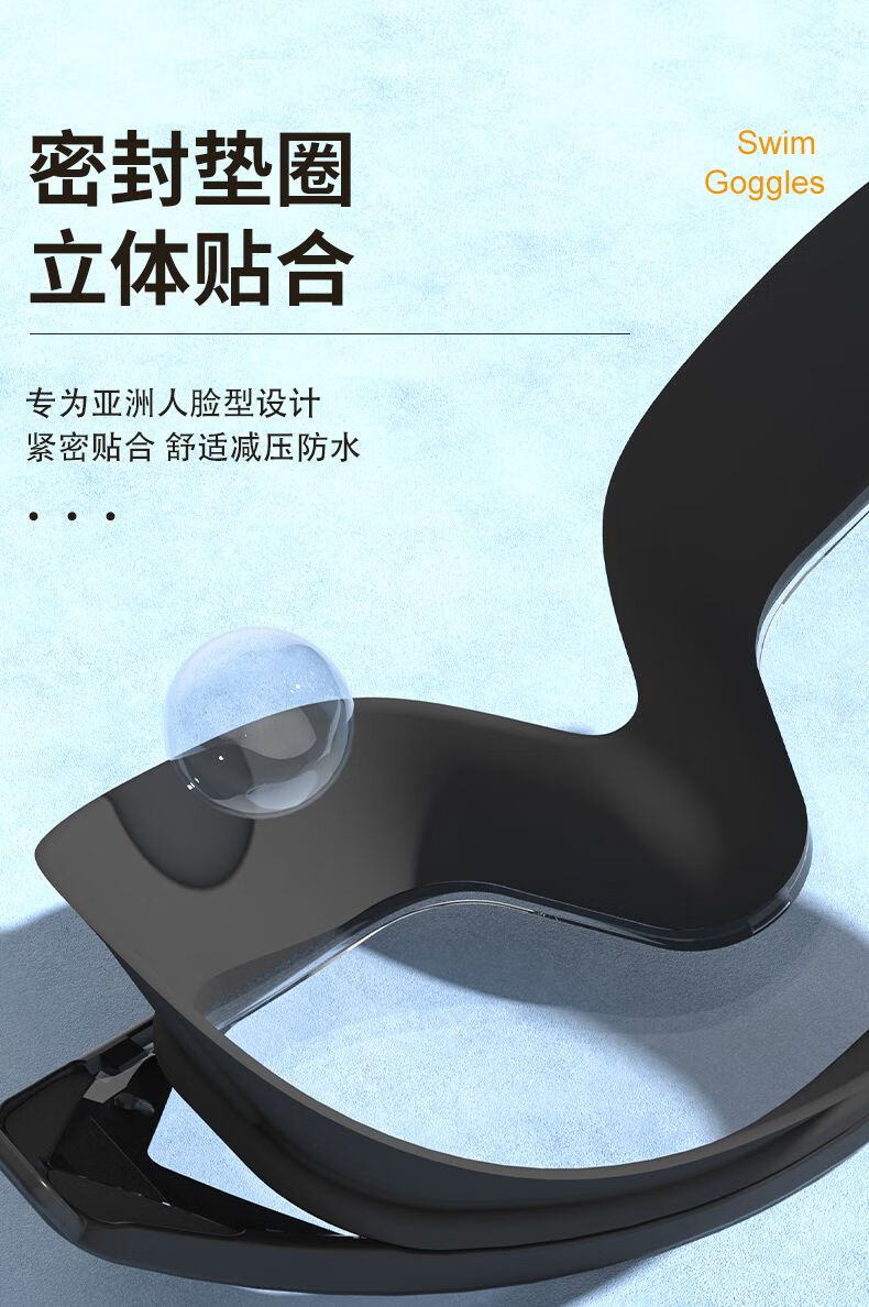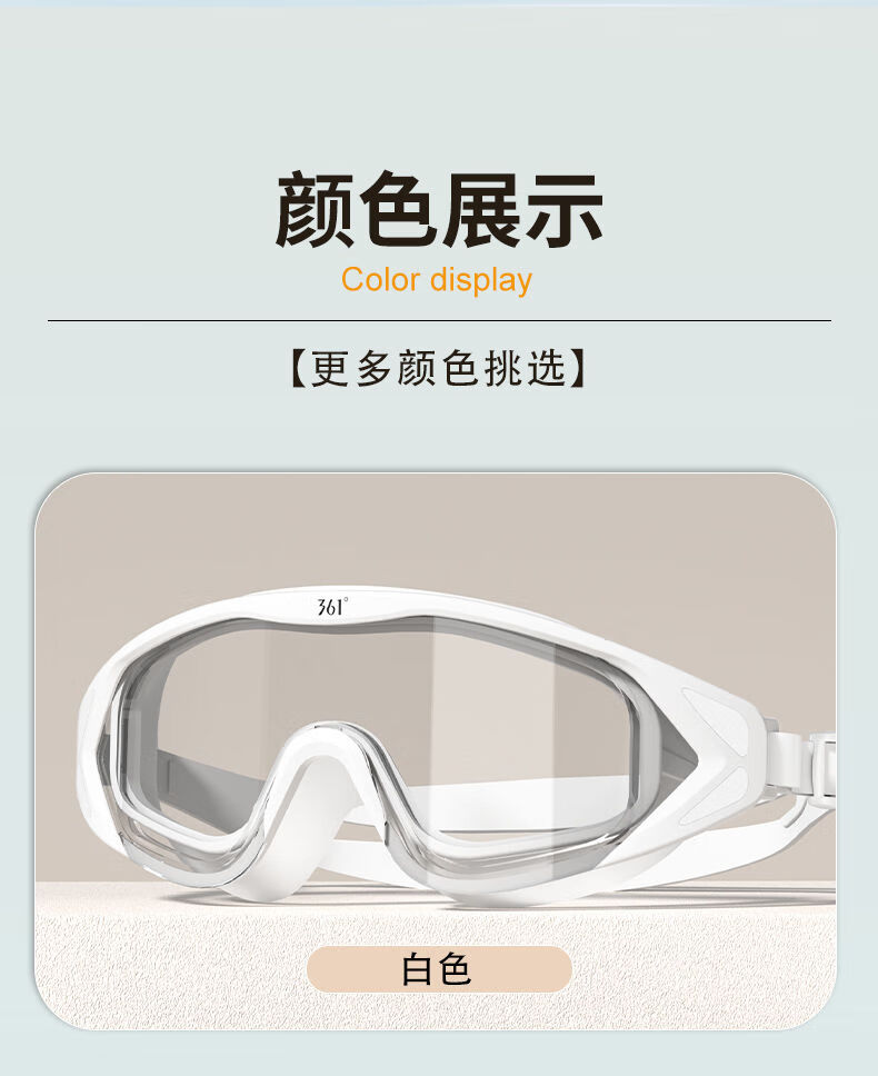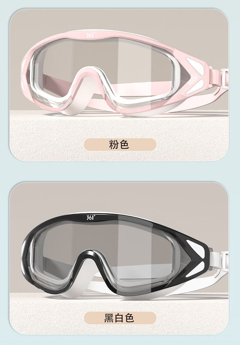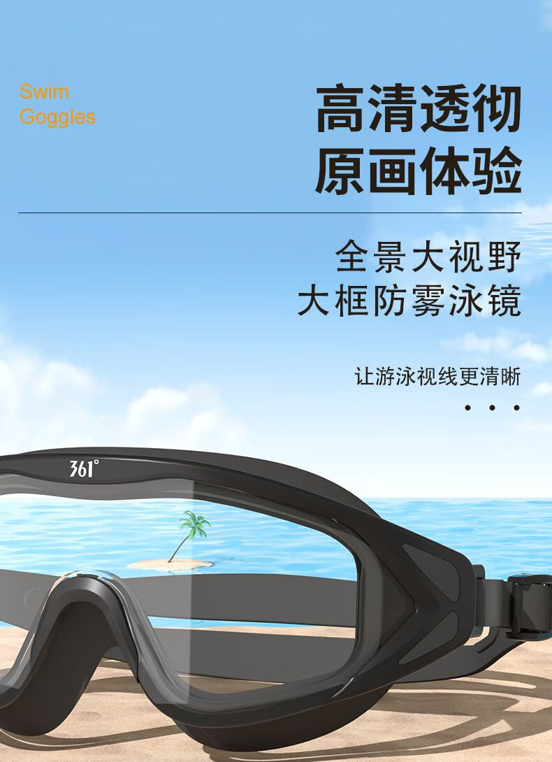361 Swimming Goggles Waterproof and Anti-fog HD Large Frame Men's and Women's Swimming Goggles Professional Adult Diving Equipment Pure Black - High-Looking Frameless Flat Light
