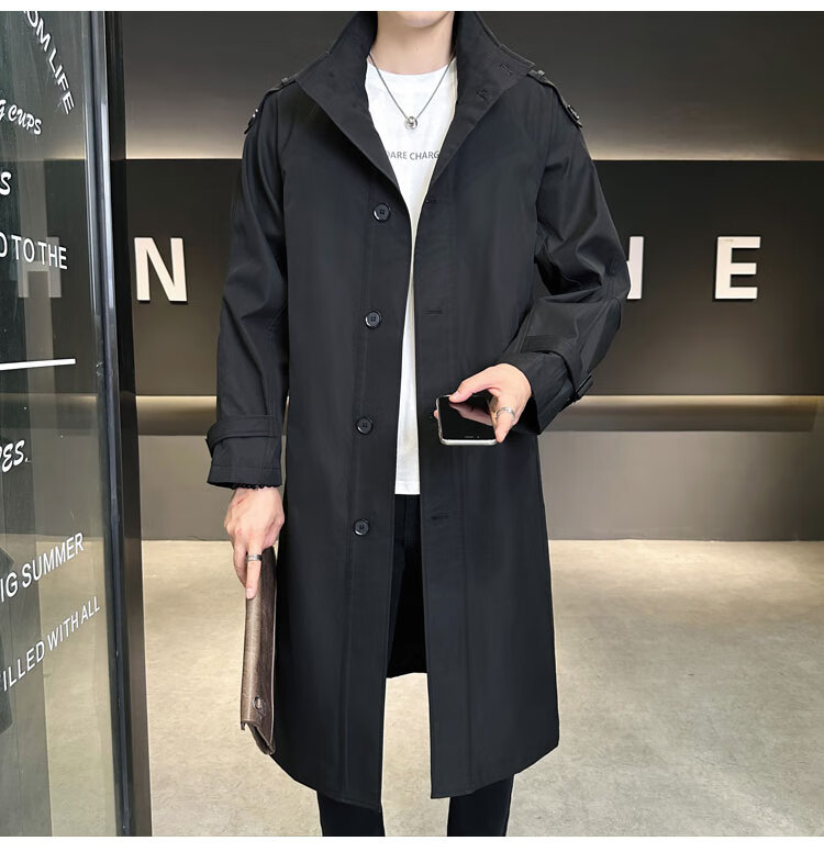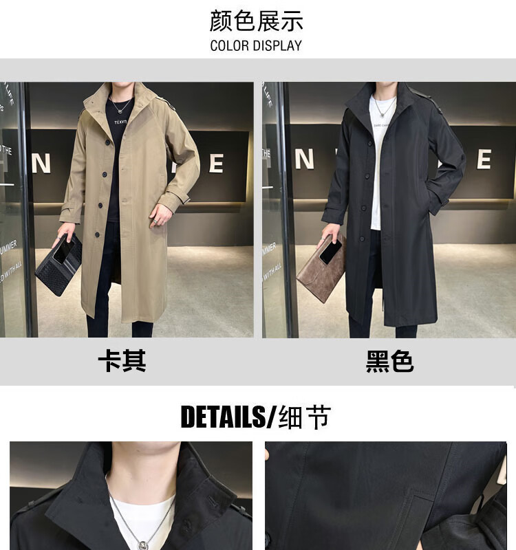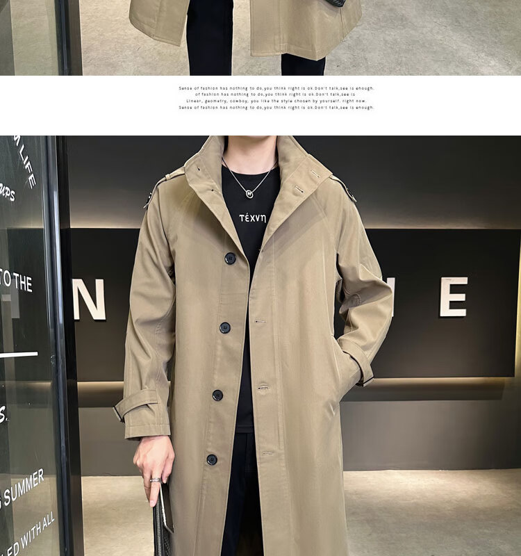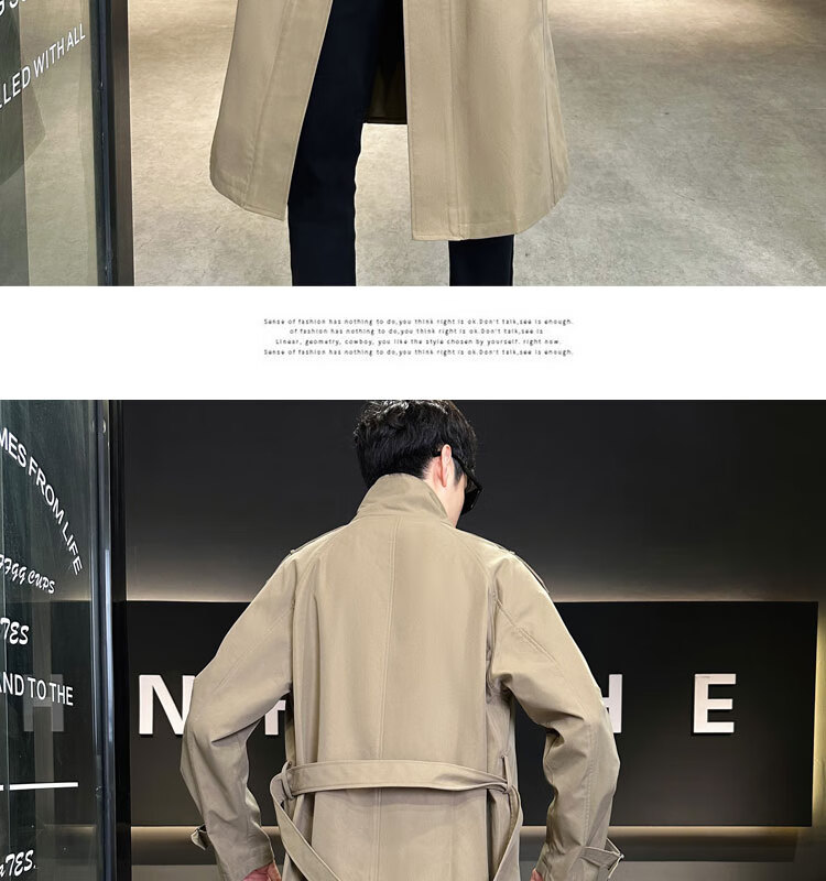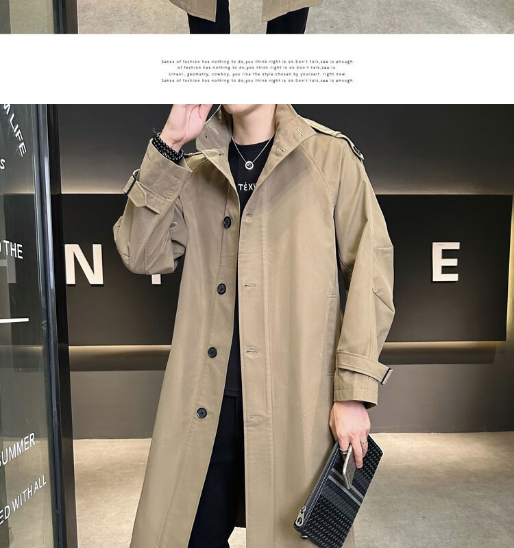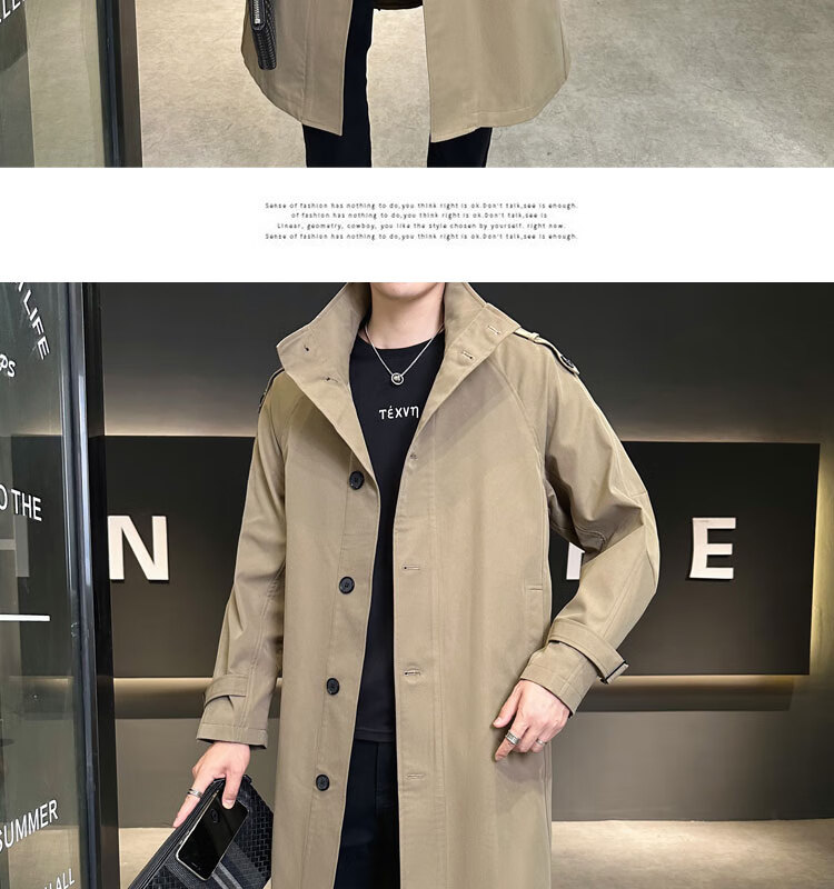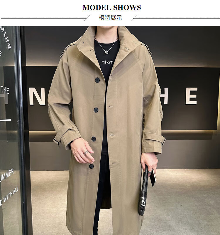罗蒙(ROMON)卡其色风衣外套男秋冬中长款早秋薄款宽松休闲立领克鲁苏文职大衣 卡其色 L 【建议160斤以内】