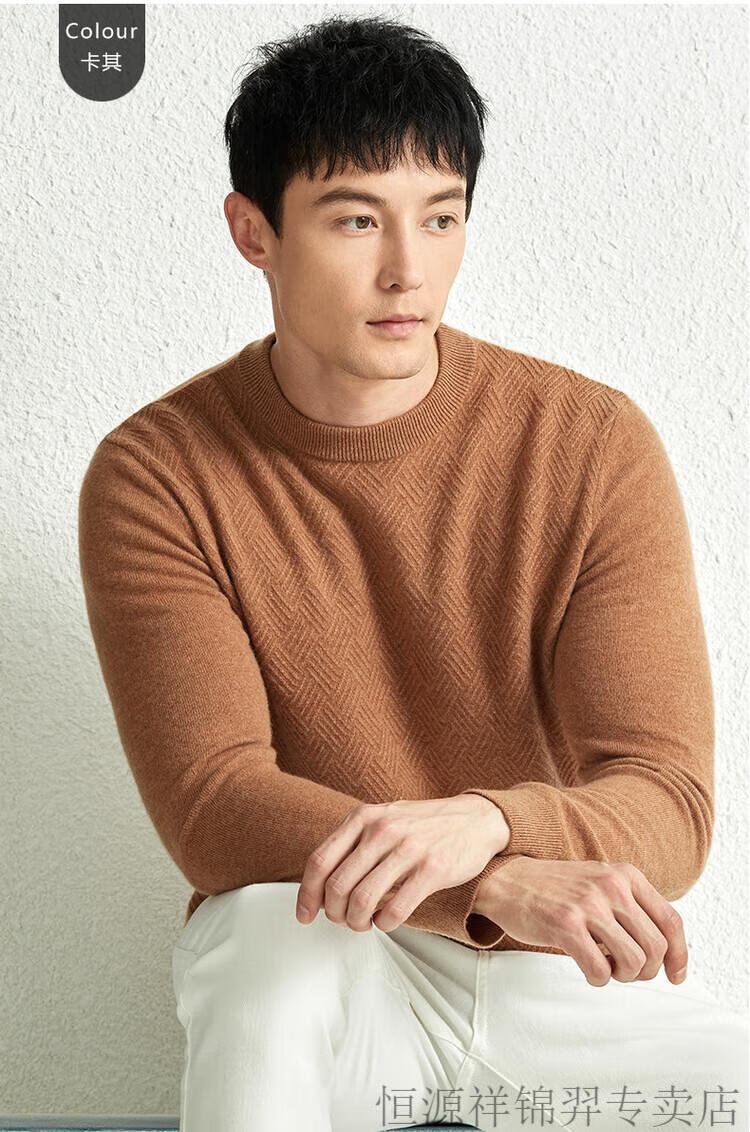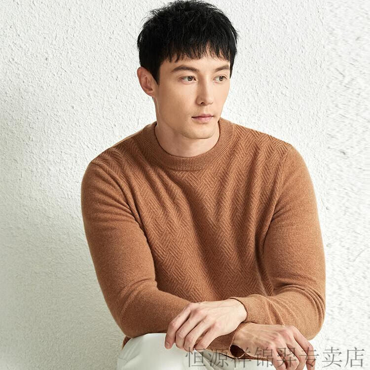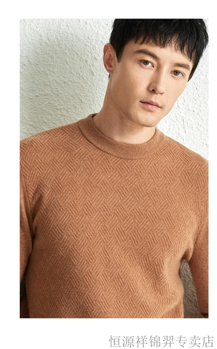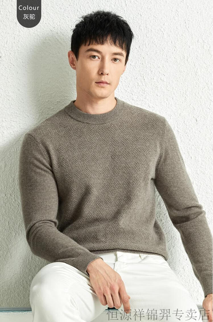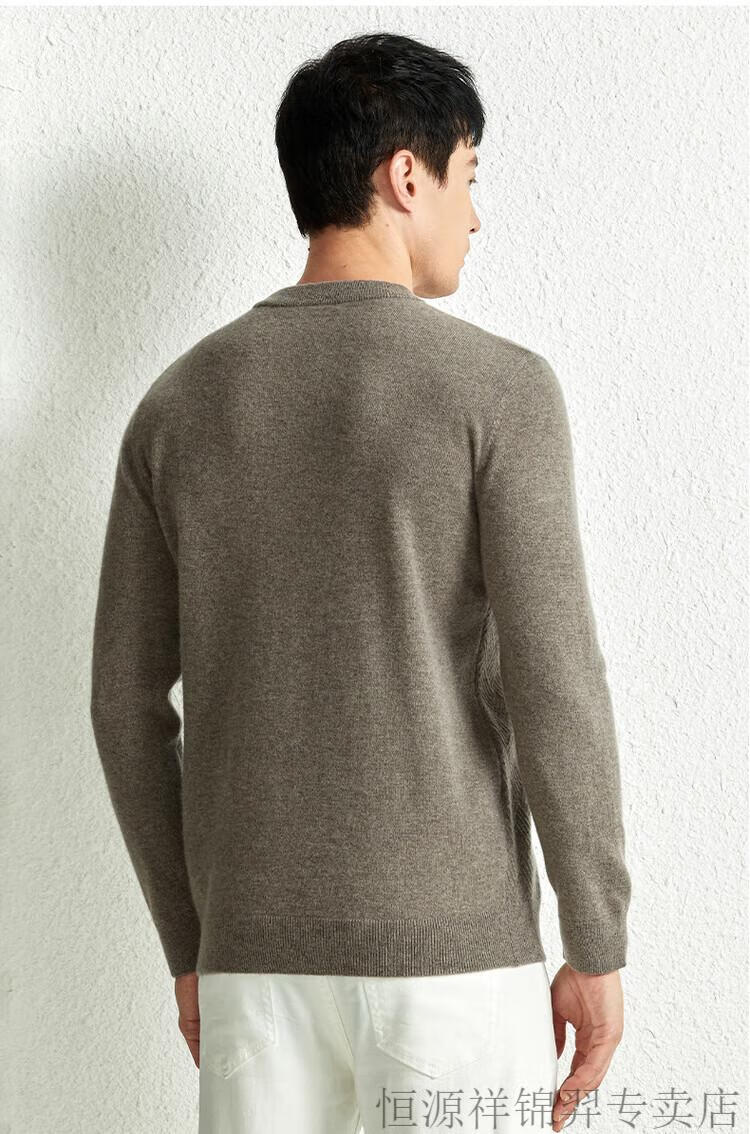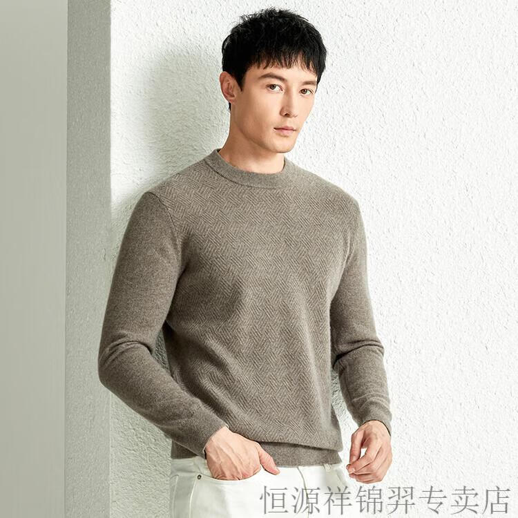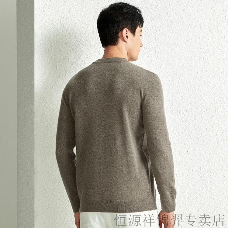 恒源祥(HYX)高档100纯山羊绒衫男士秋冬季加厚打底中年圆领宽松毛衣爸爸装 灰驼 2XL