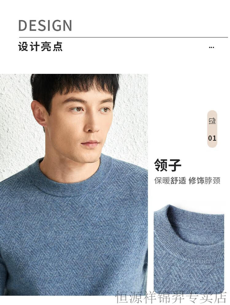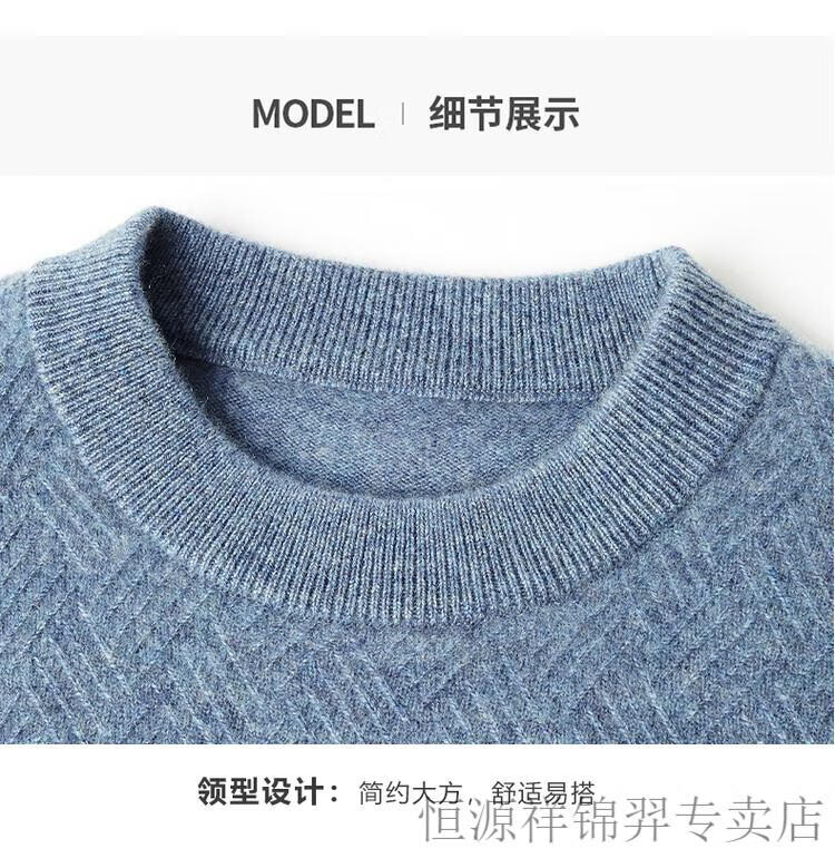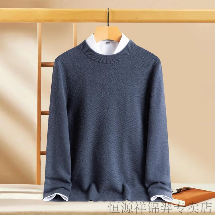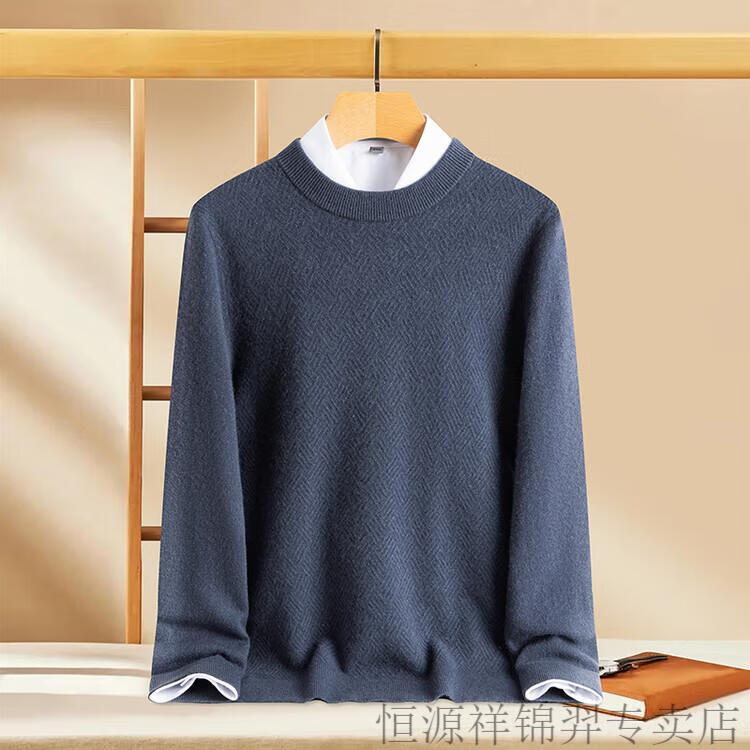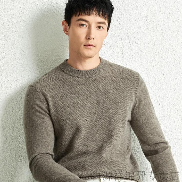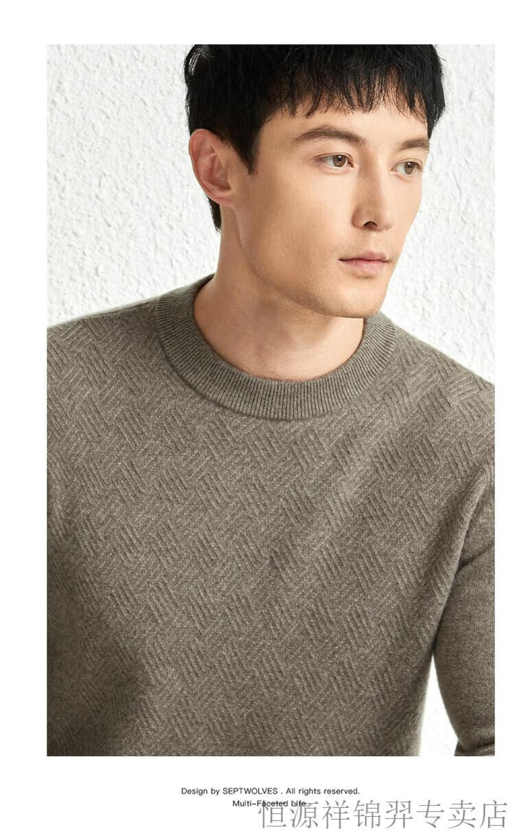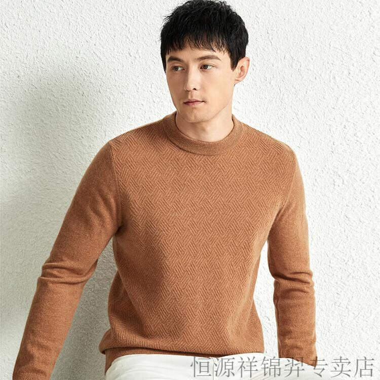 恒源祥(HYX)高档100纯山羊绒衫男士秋冬季加厚打底中年圆领宽松毛衣爸爸装 灰驼 2XL