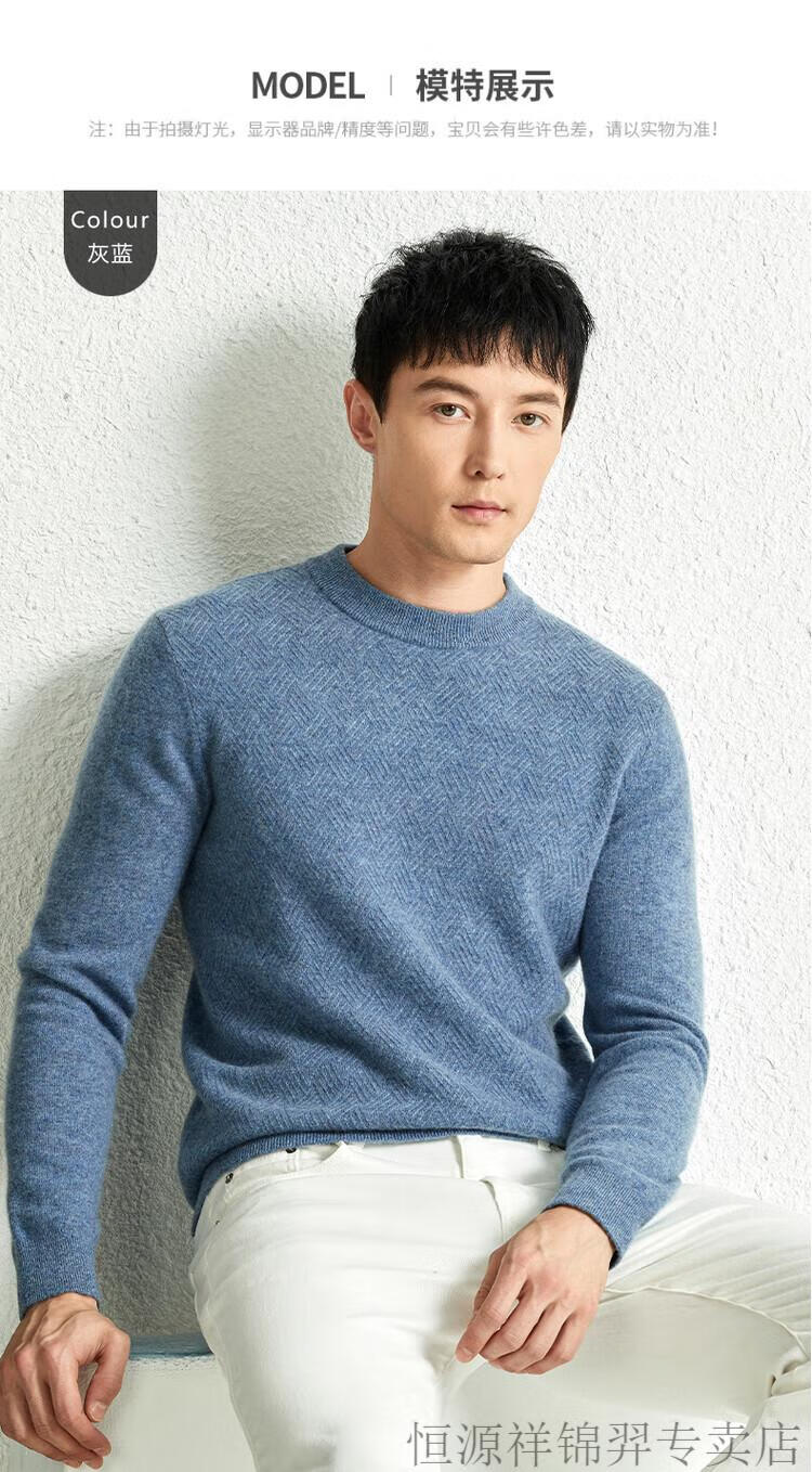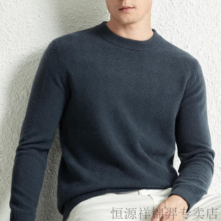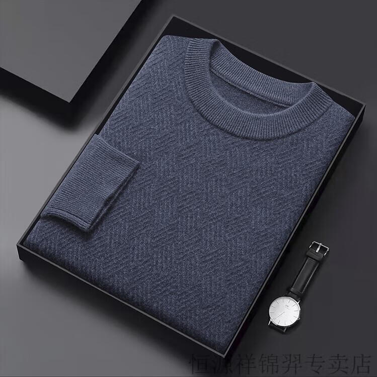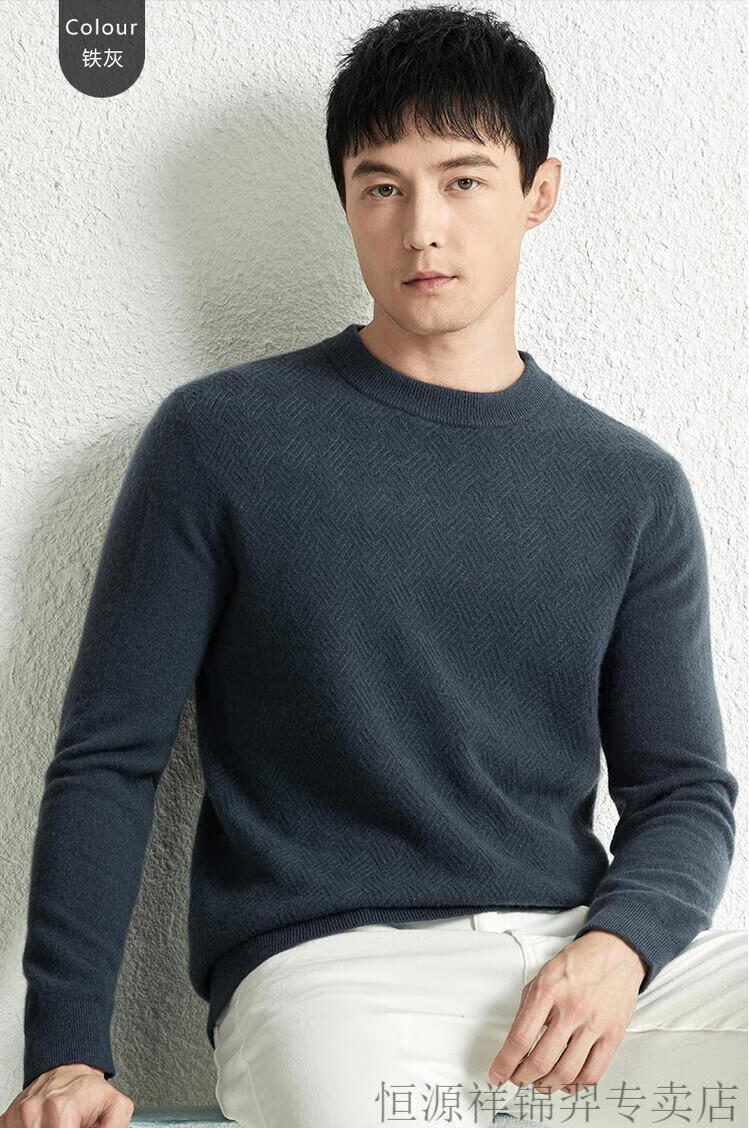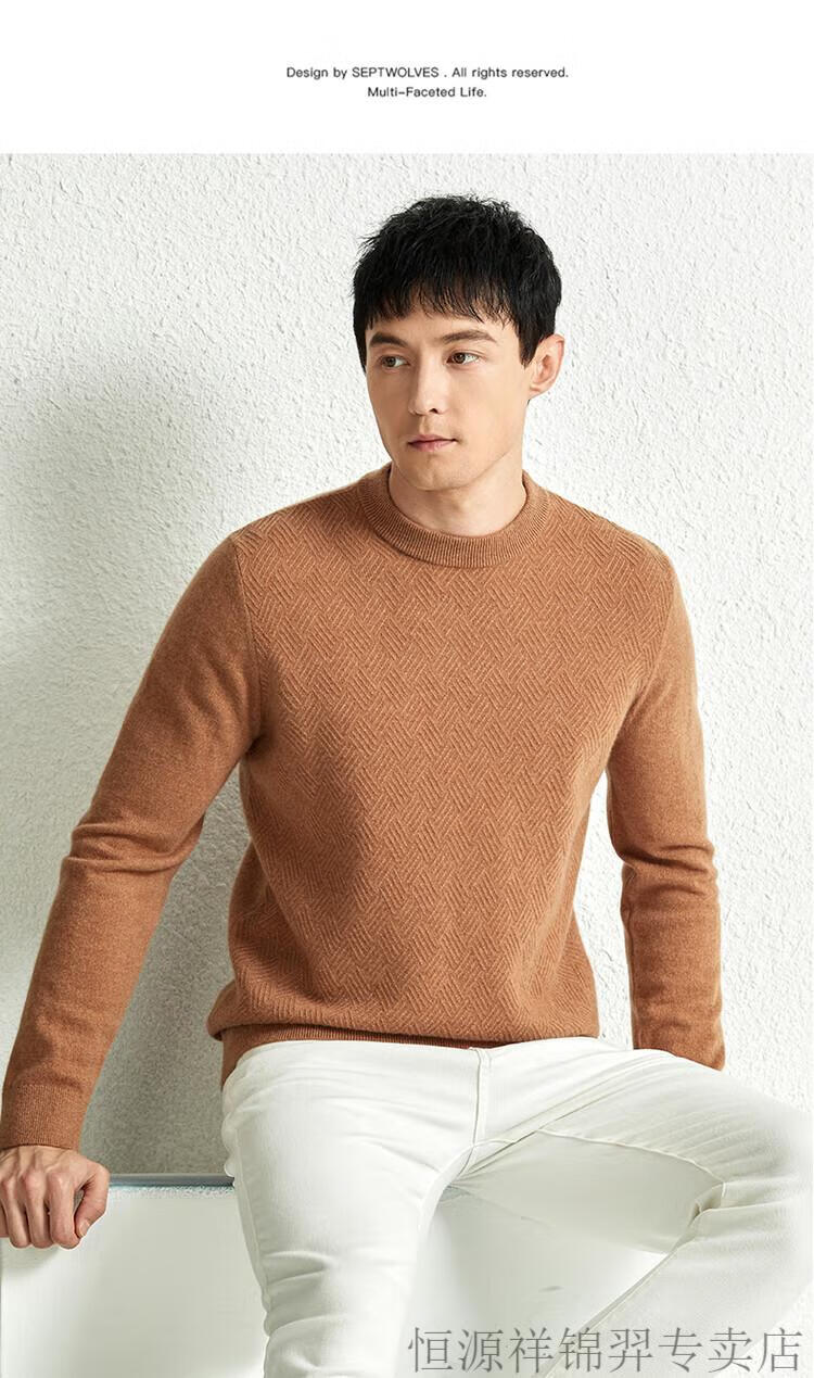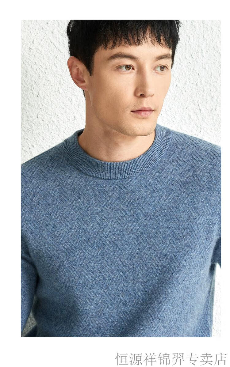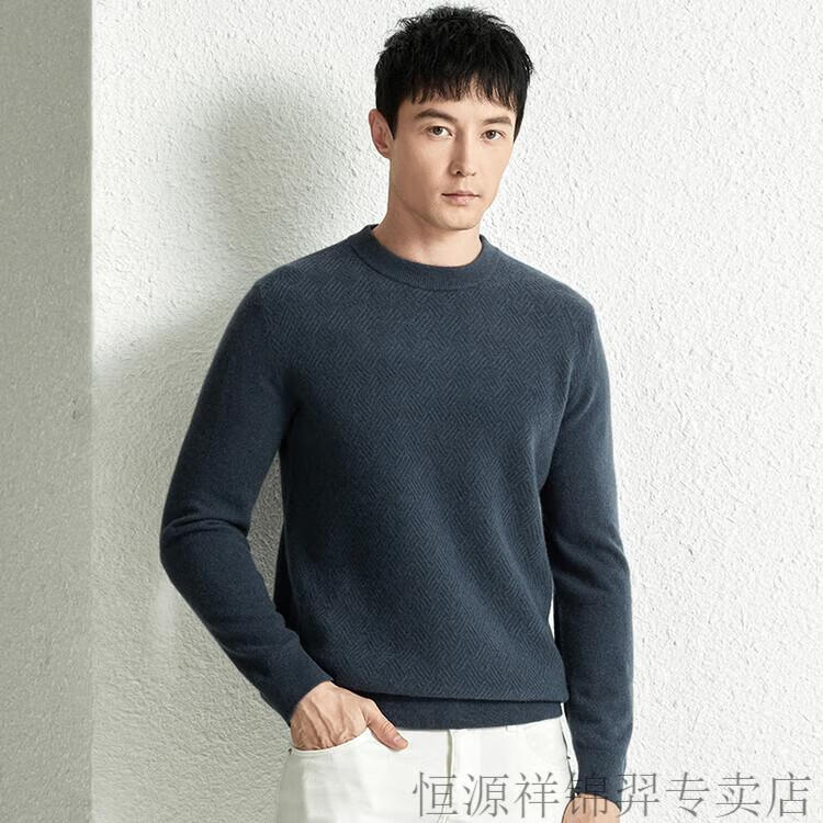 恒源祥(HYX)高档100纯山羊绒衫男士秋冬季加厚打底中年圆领宽松毛衣爸爸装 灰驼 2XL
