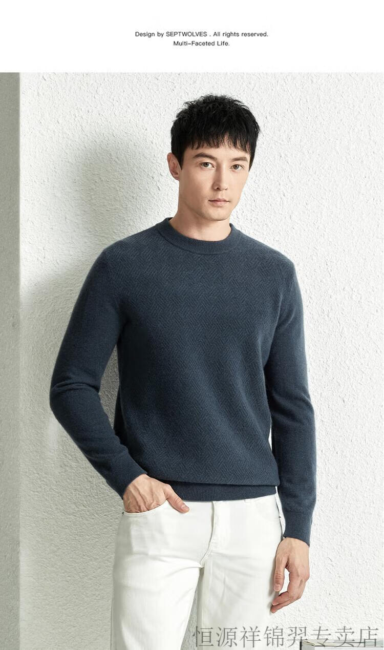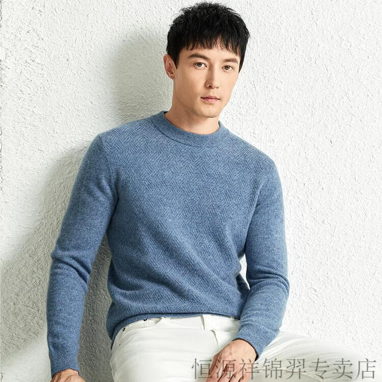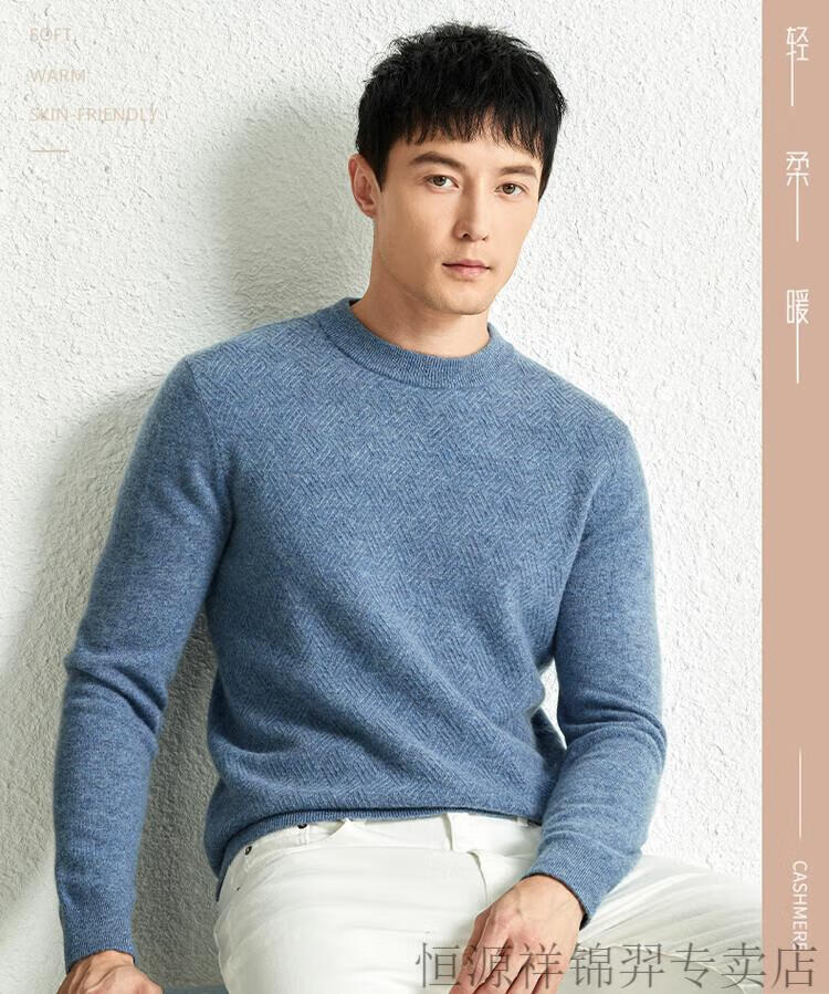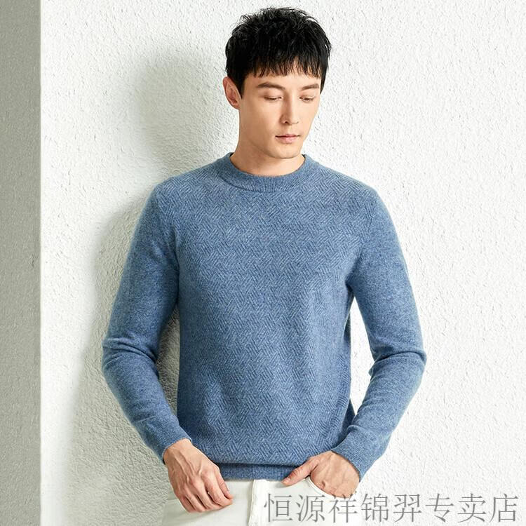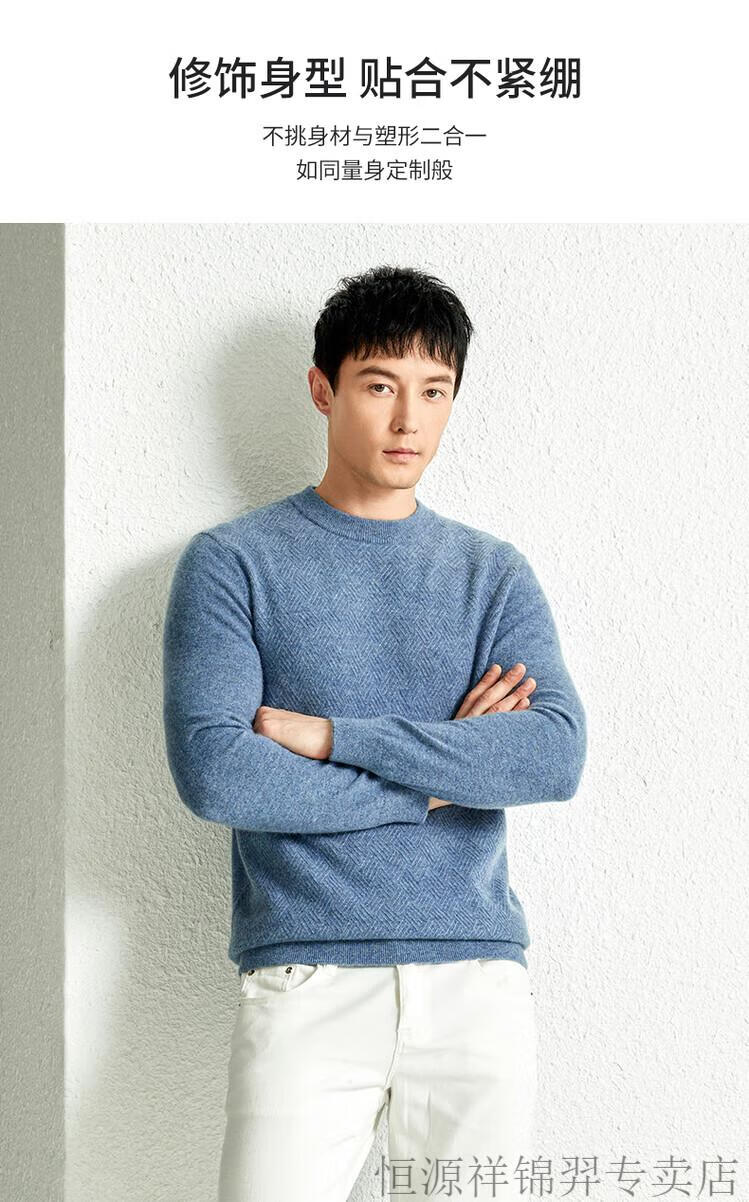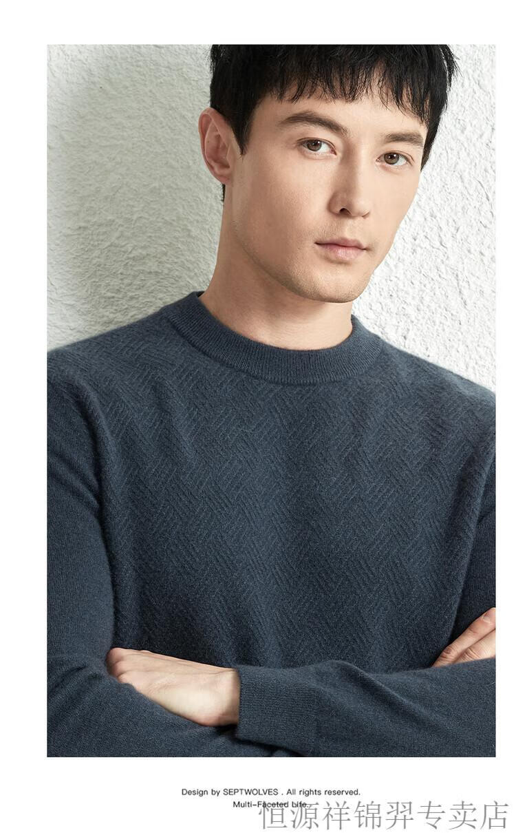 恒源祥(HYX)高档100纯山羊绒衫男士秋冬季加厚打底中年圆领宽松毛衣爸爸装 灰驼 2XL