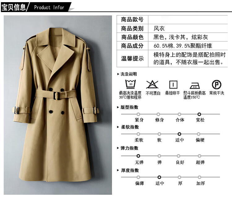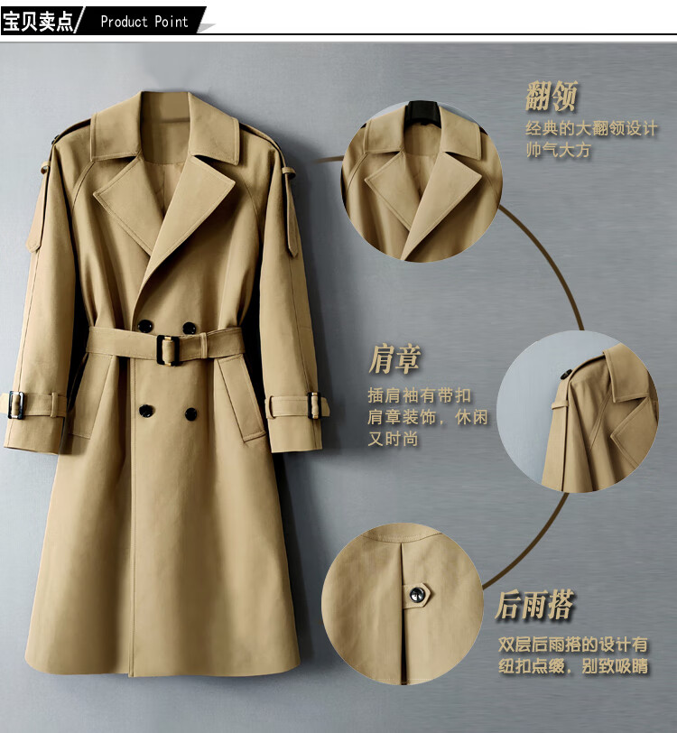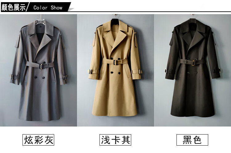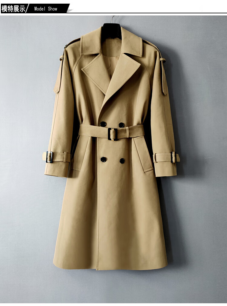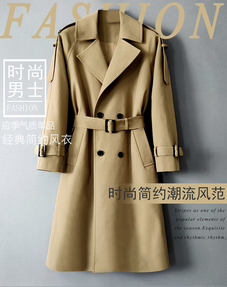 MUCILAGEKNOW Осенне-зимний длинный плащ выше колена, мужской однотонный легкий роскошный плащ в британском стиле, мужской уличный топ, мужской светлый хаки M (160Jin Jin соответствует весу 0,5 кг, указанному ниже)