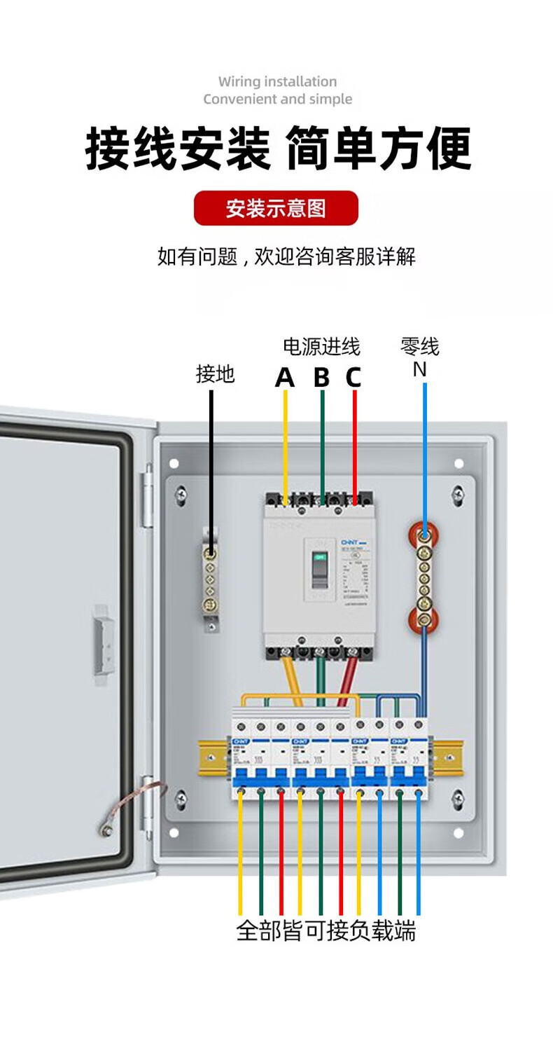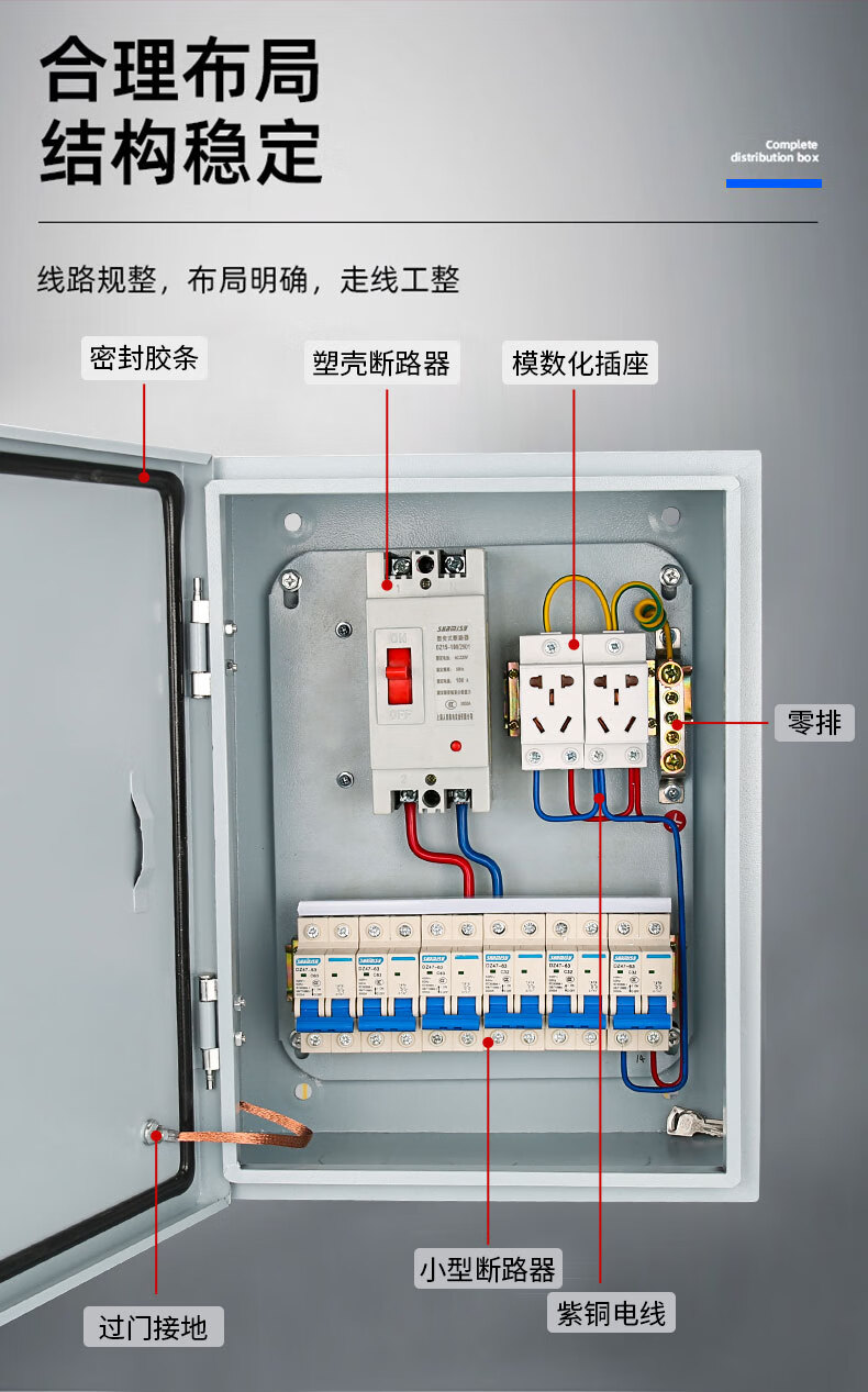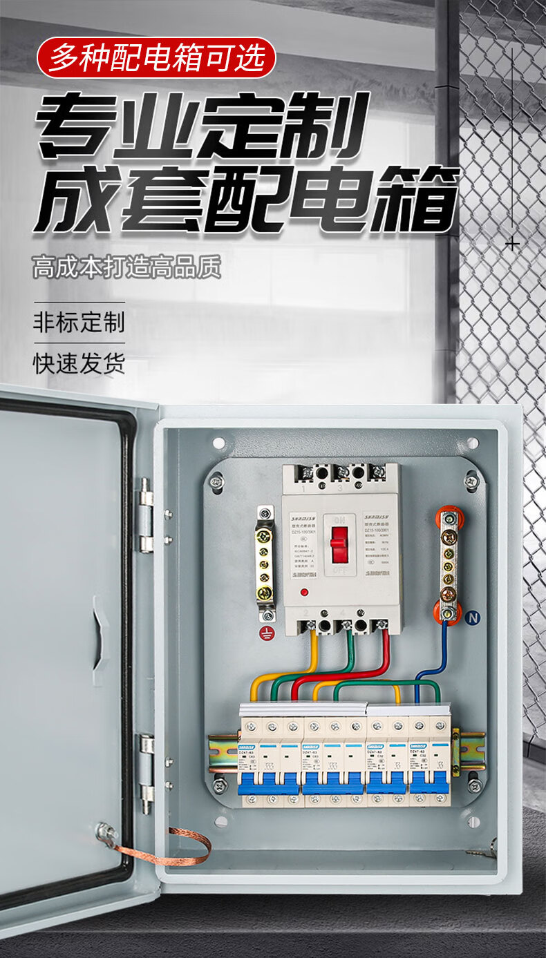 GERK household complete set of distribution box surface-mounted indoor and outdoor waterproof distribution box construction site secondary and tertiary box low-voltage lighting control box configuration 16 (three-phase 380V main switch 100A)