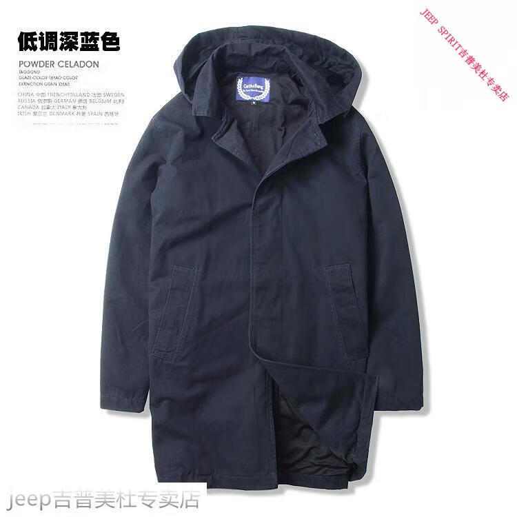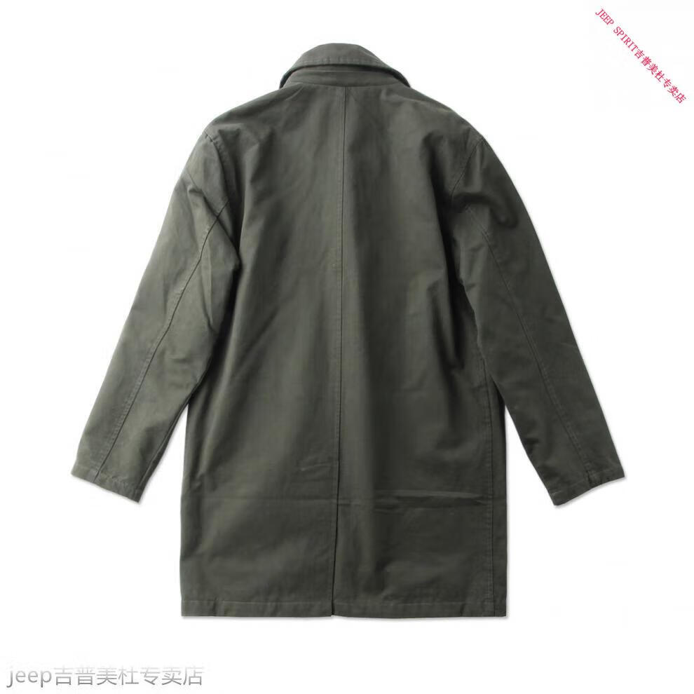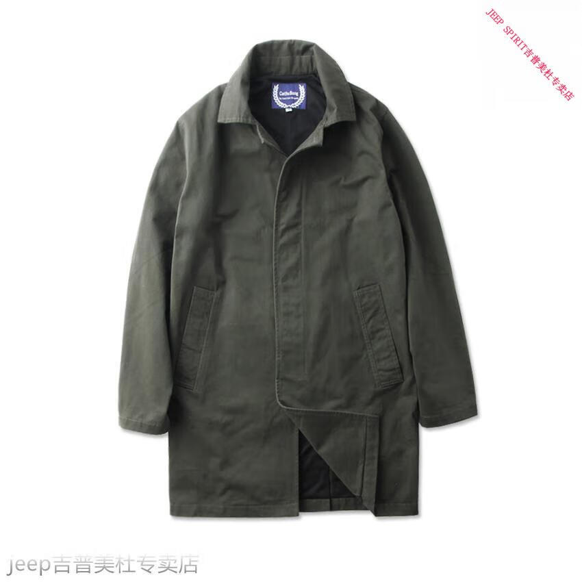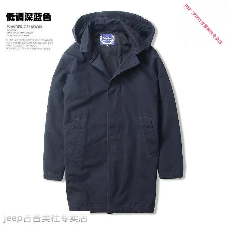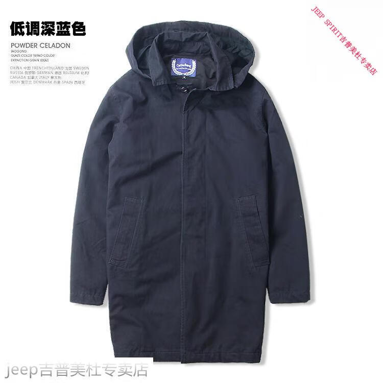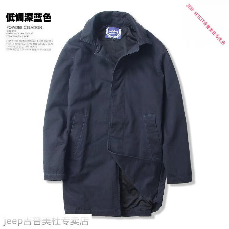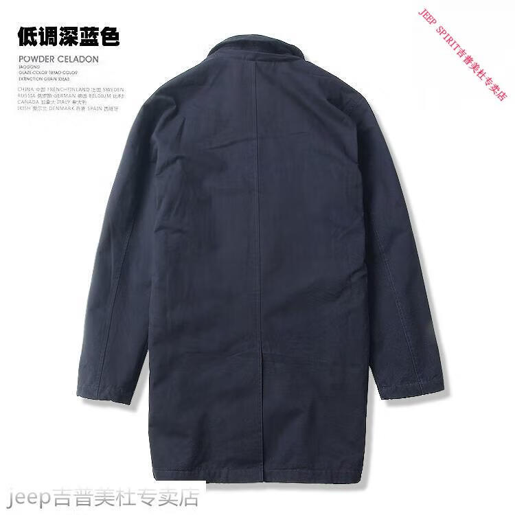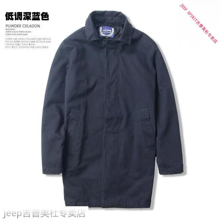 JEEP SPIRIT吉普春秋男款潮流欧美翻领工装纯棉风衣美式复古中长款休闲外套男 深蓝色 单衣款(现货) S -适合体重120斤内