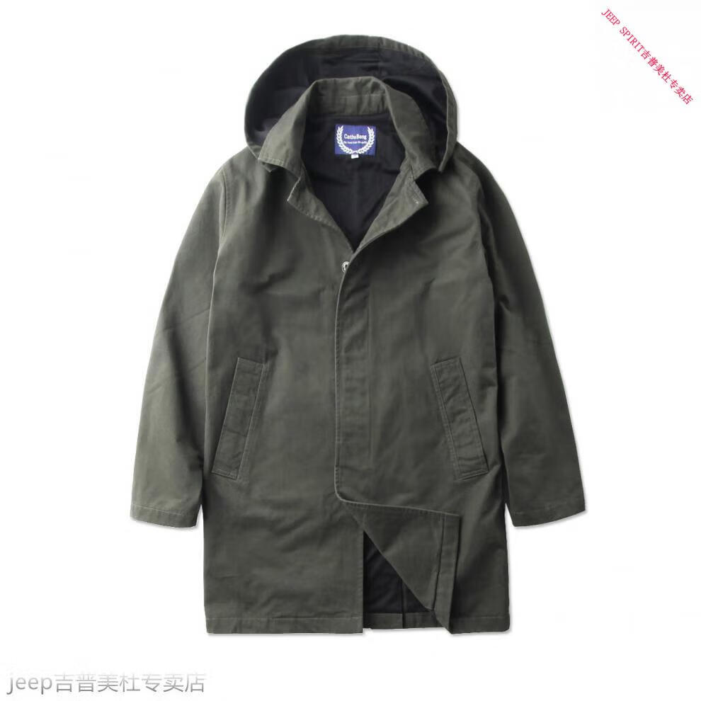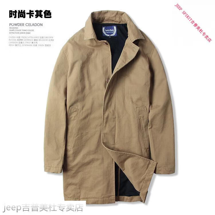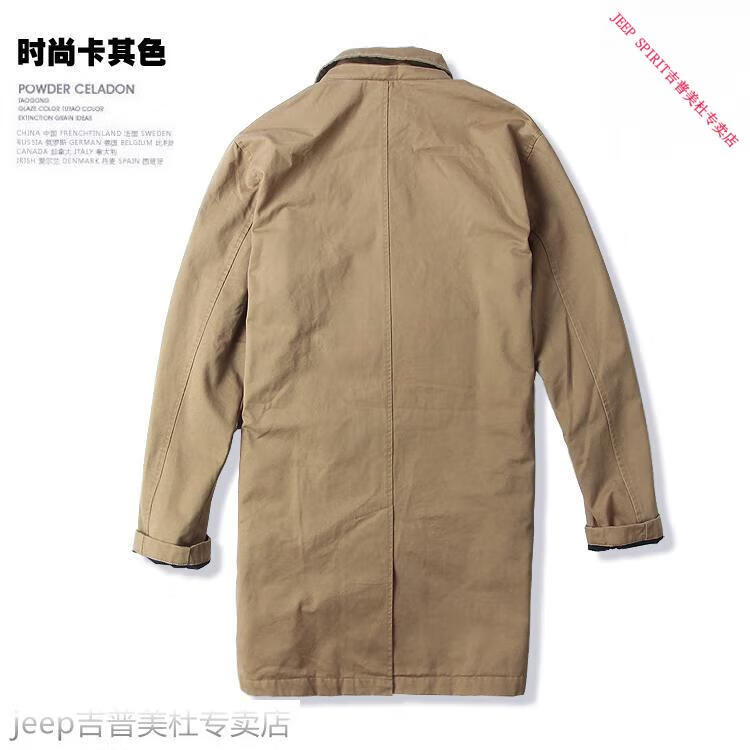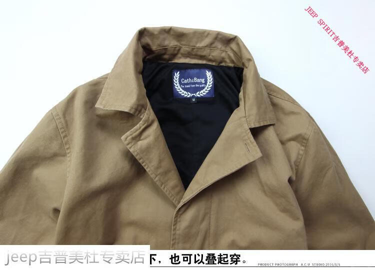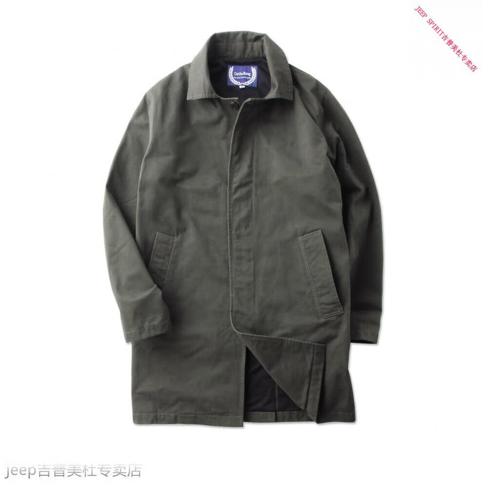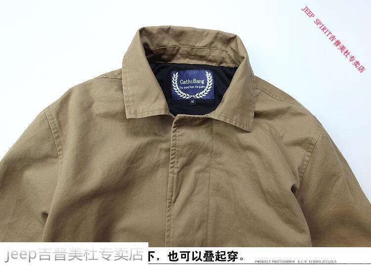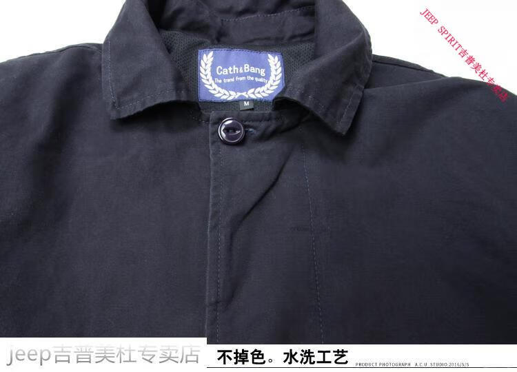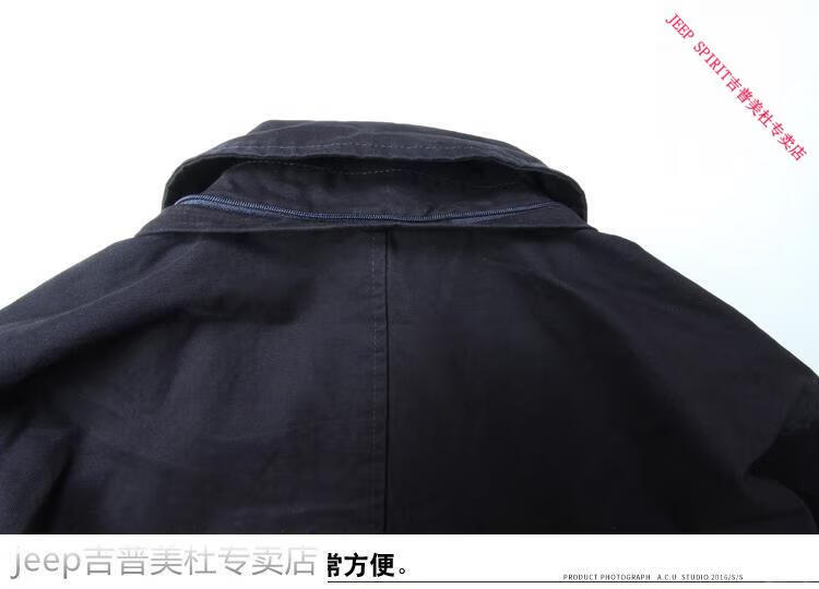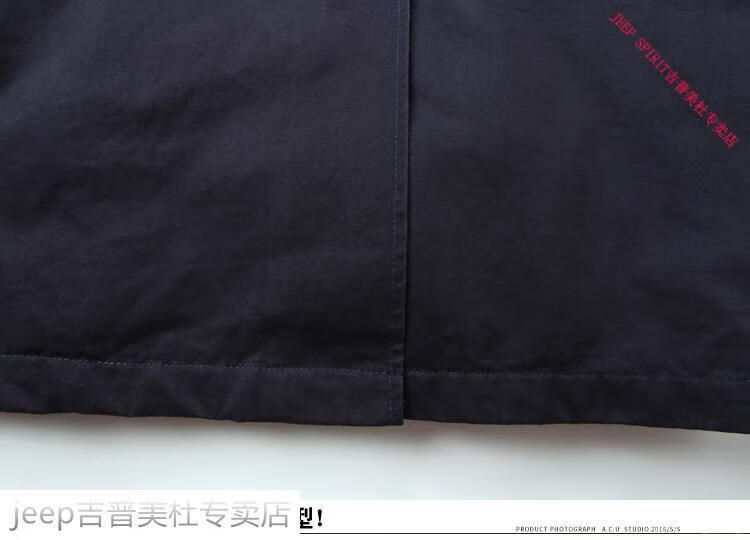JEEP SPIRIT吉普春秋男款潮流欧美翻领工装纯棉风衣美式复古中长款休闲外套男 深蓝色 单衣款(现货) S -适合体重120斤内