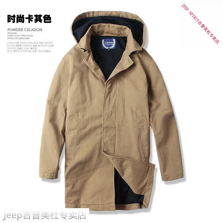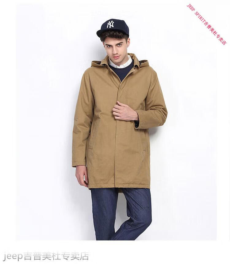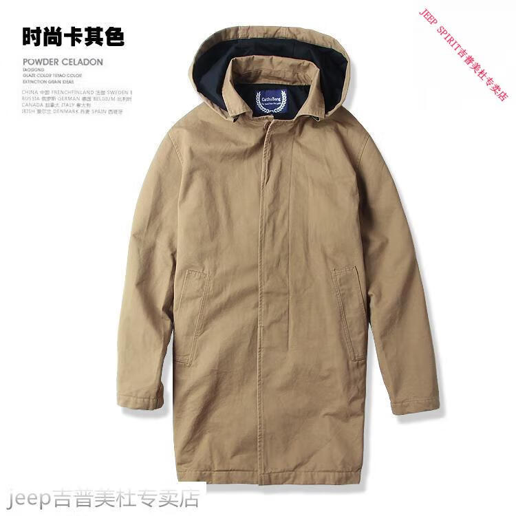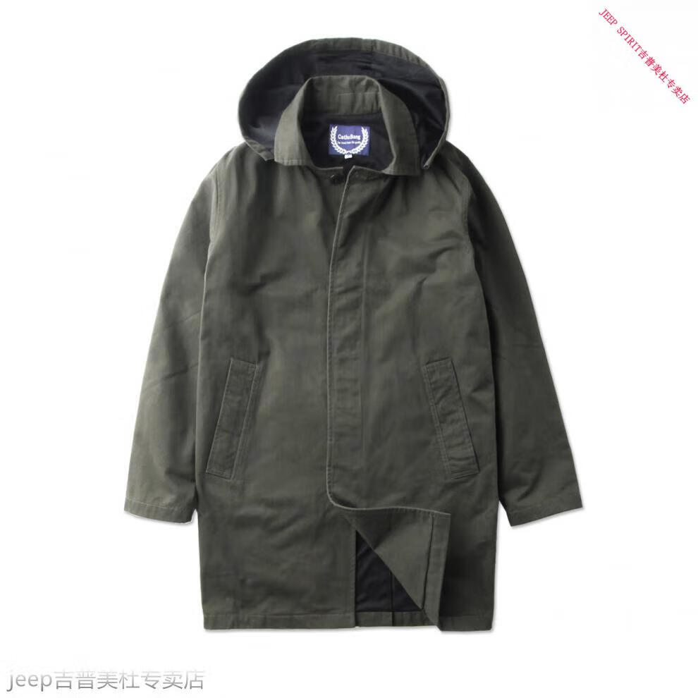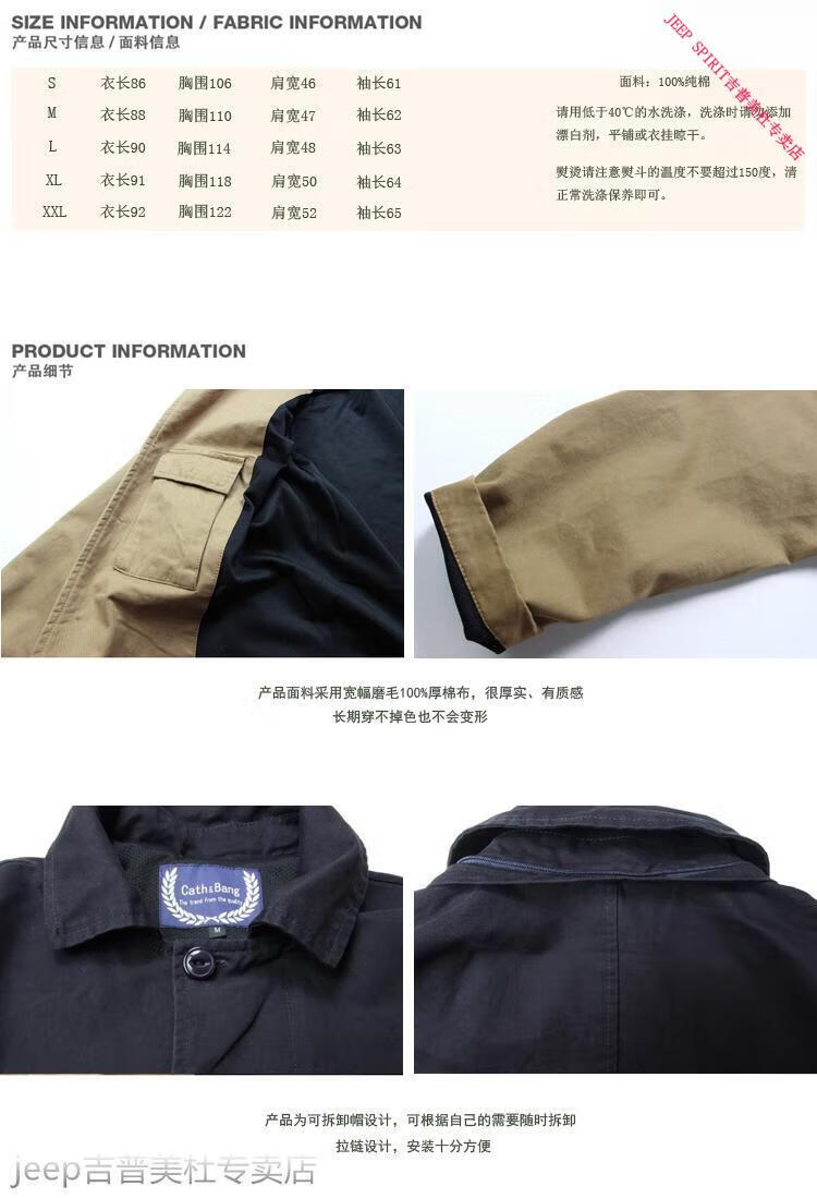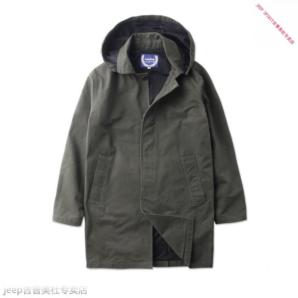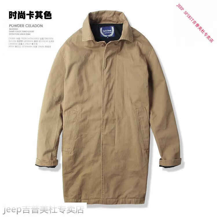 JEEP SPIRIT吉普春秋男款潮流欧美翻领工装纯棉风衣美式复古中长款休闲外套男 深蓝色 单衣款(现货) S -适合体重120斤内