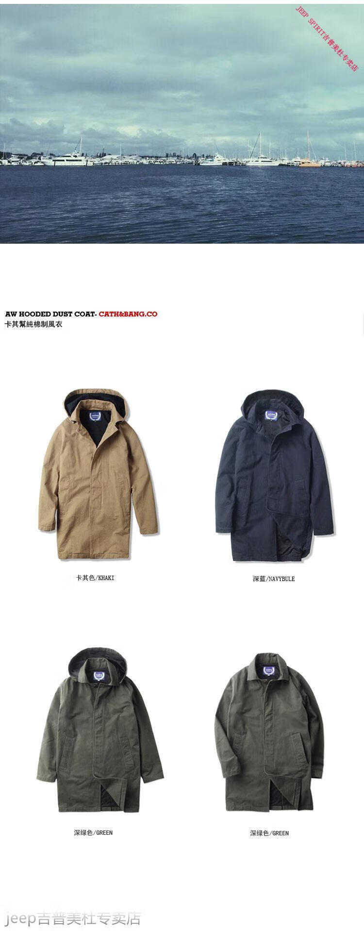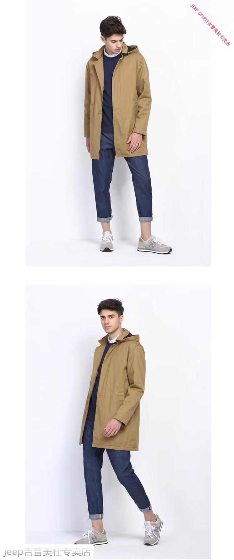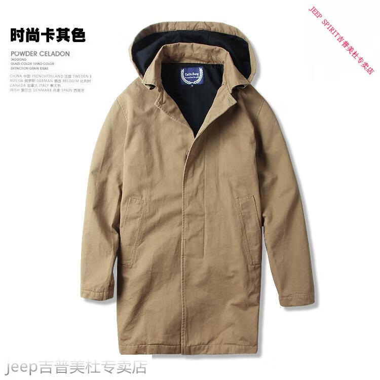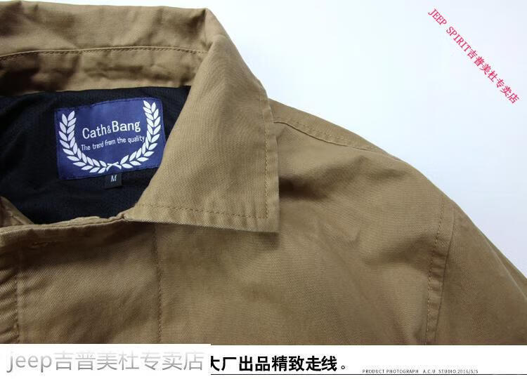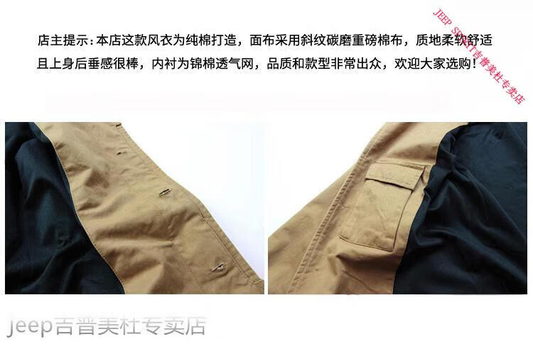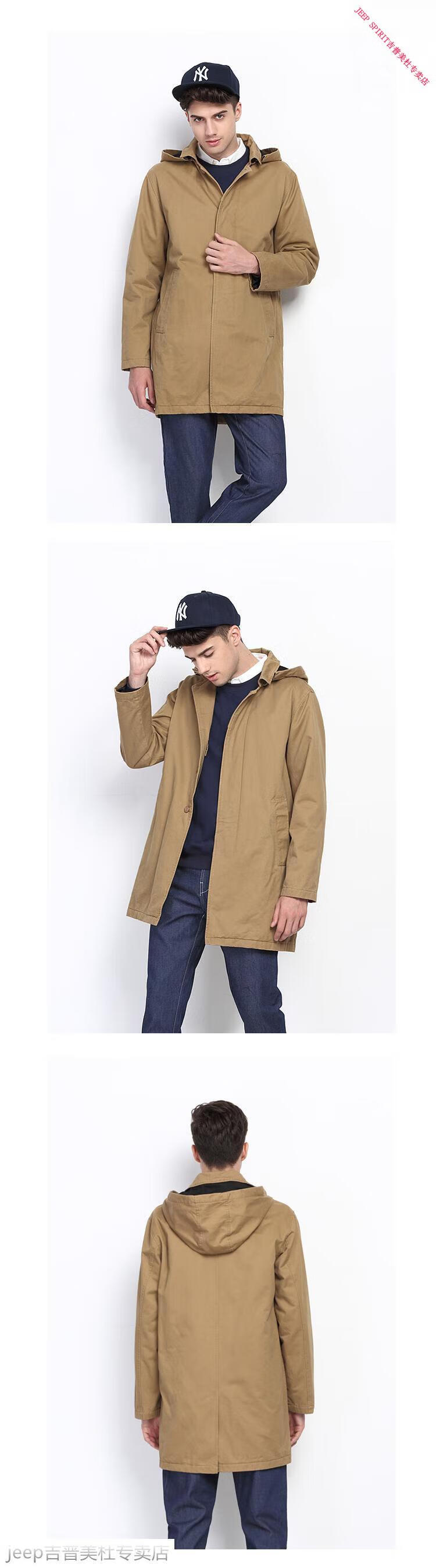 JEEP SPIRIT吉普春秋男款潮流欧美翻领工装纯棉风衣美式复古中长款休闲外套男 深蓝色 单衣款(现货) S -适合体重120斤内