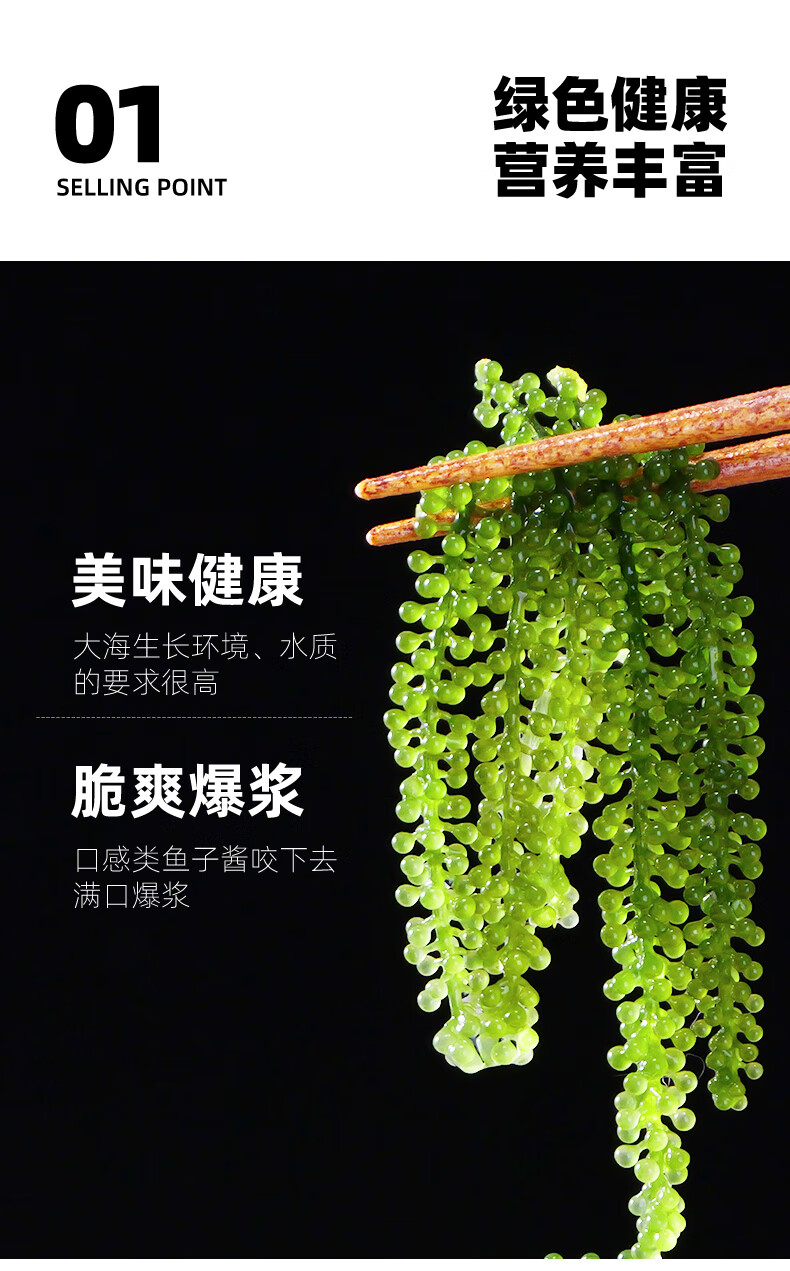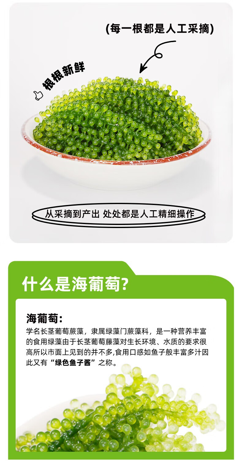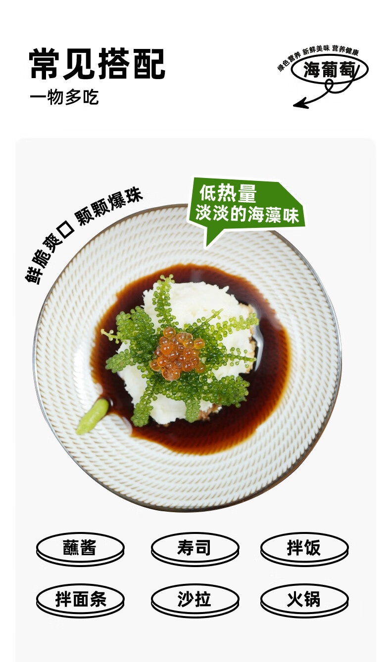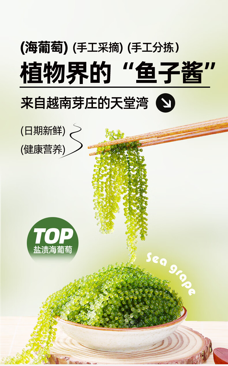 盐渍海葡萄泡发食用 儿童海藻菜海洋蔬菜海草 海葡萄100g*3袋【送芥末酱油】
