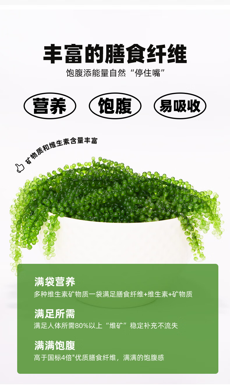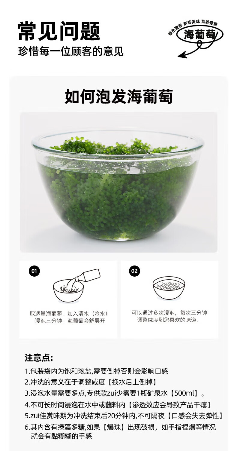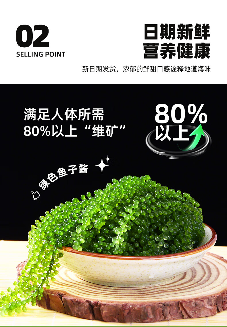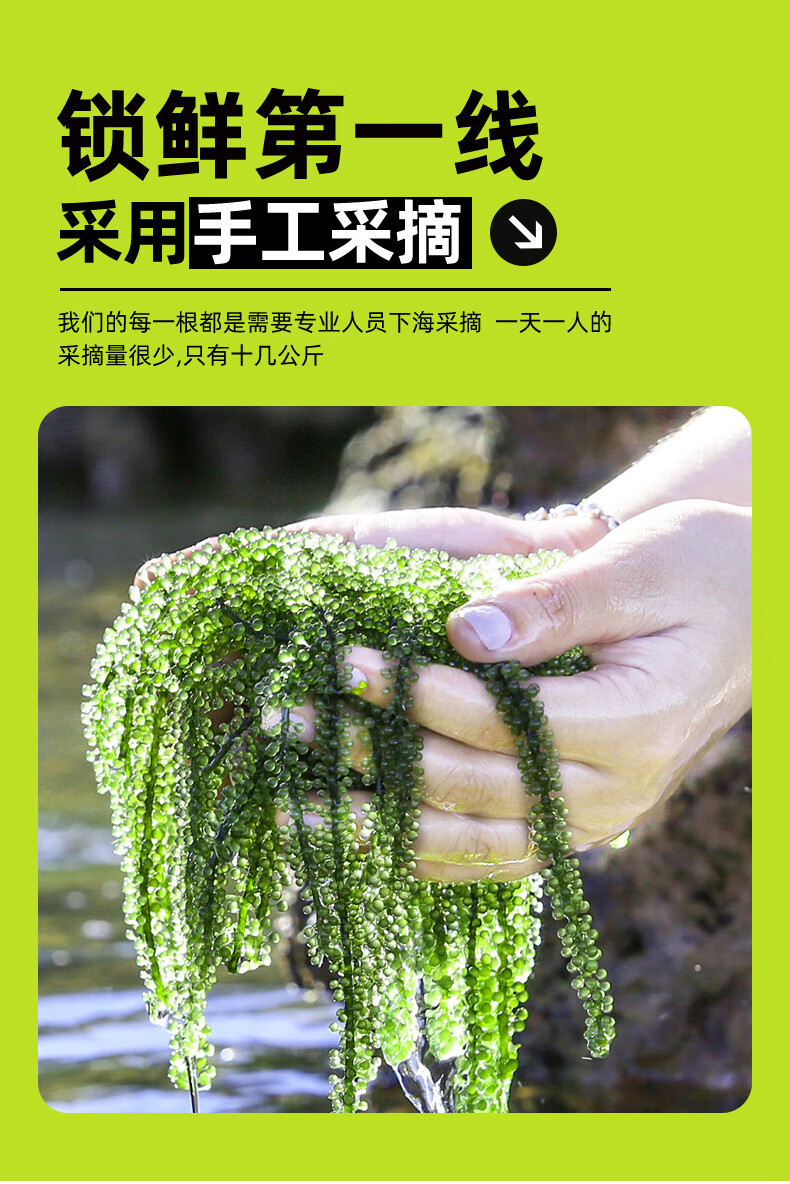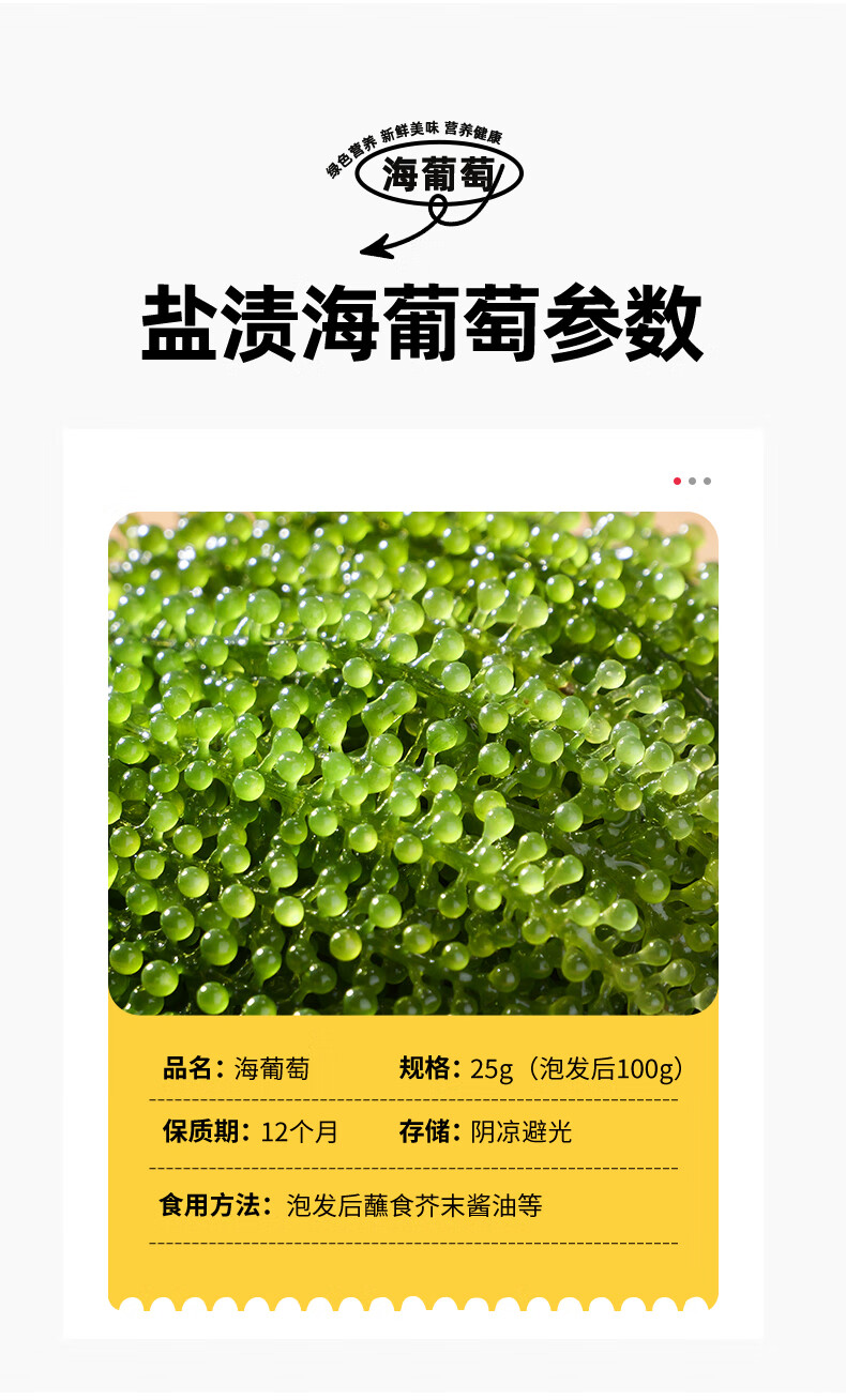 盐渍海葡萄泡发食用 儿童海藻菜海洋蔬菜海草 海葡萄100g*3袋【送芥末酱油】