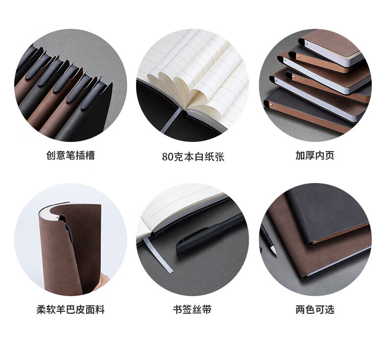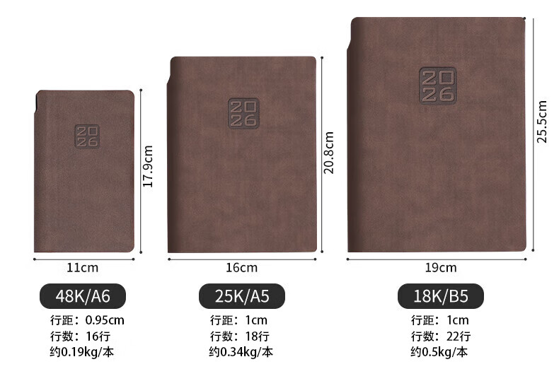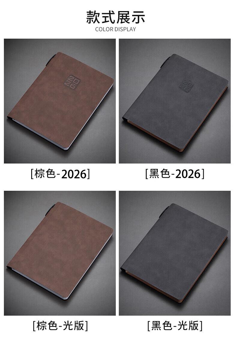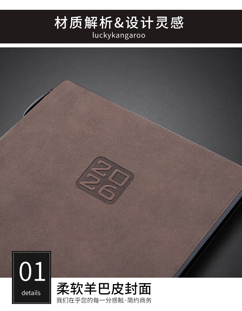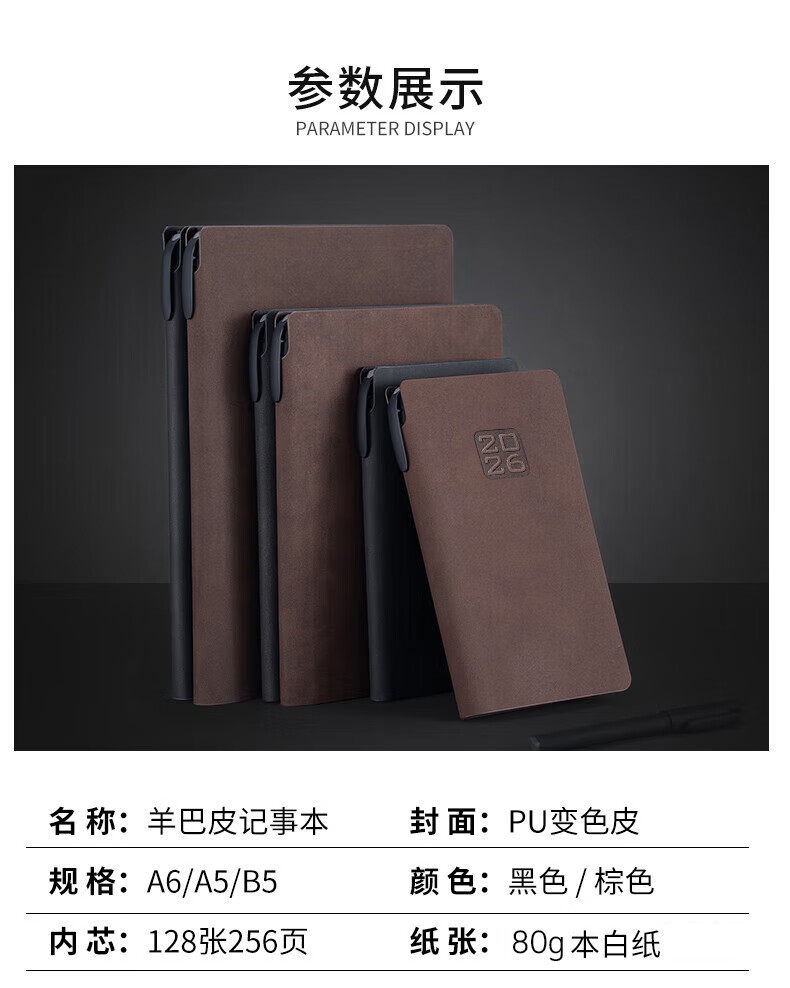 九千年2026羊巴皮软皮高颜值笔记本定制可印logo简约商务记事本礼品横线刻字带笔插加厚口袋本 棕色2026(送笔) A6