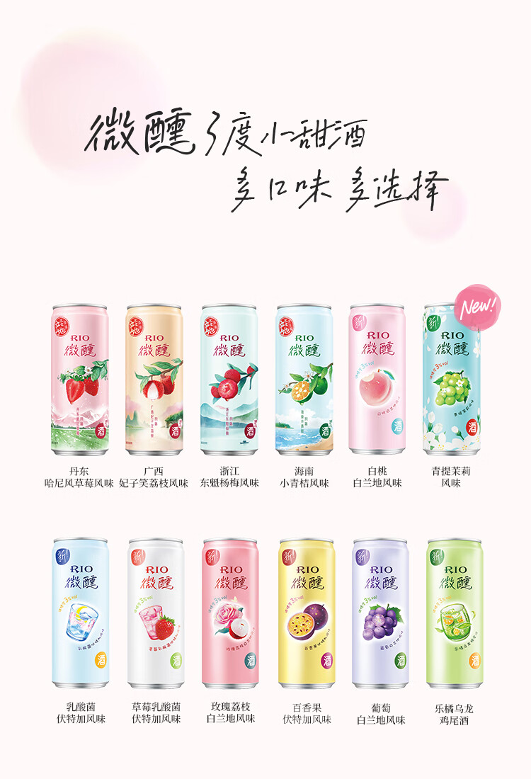 锐澳RIO全家福全 微醺 清爽 强爽组合装 预调鸡尾酒 洋酒气泡果酒 【共6罐】乳酸菌5罐+赠1罐饮料