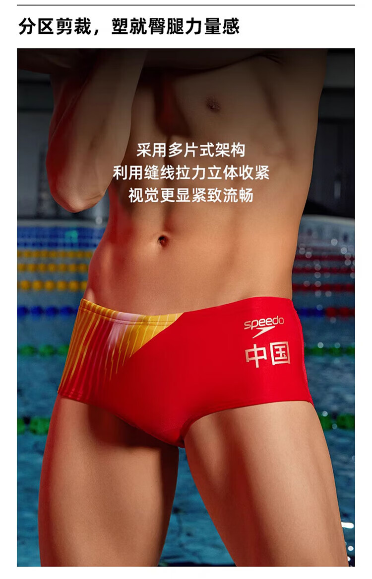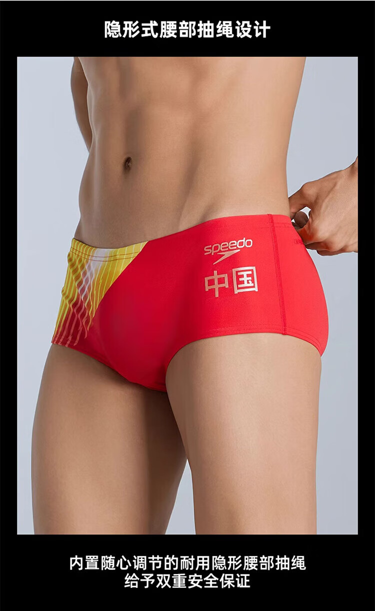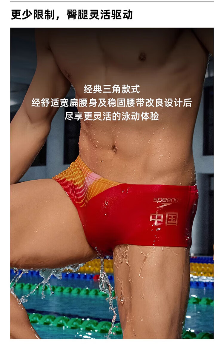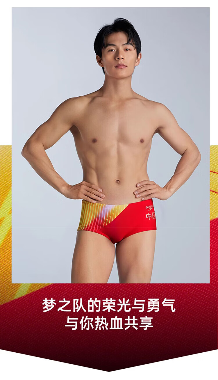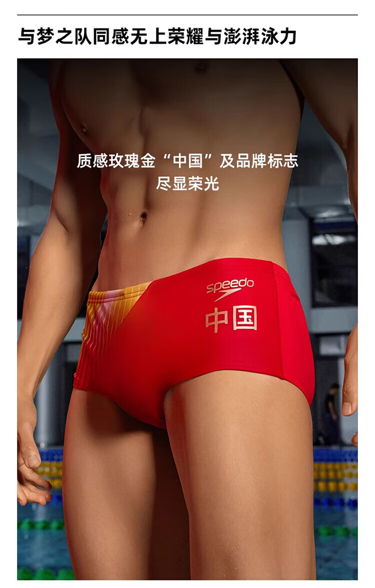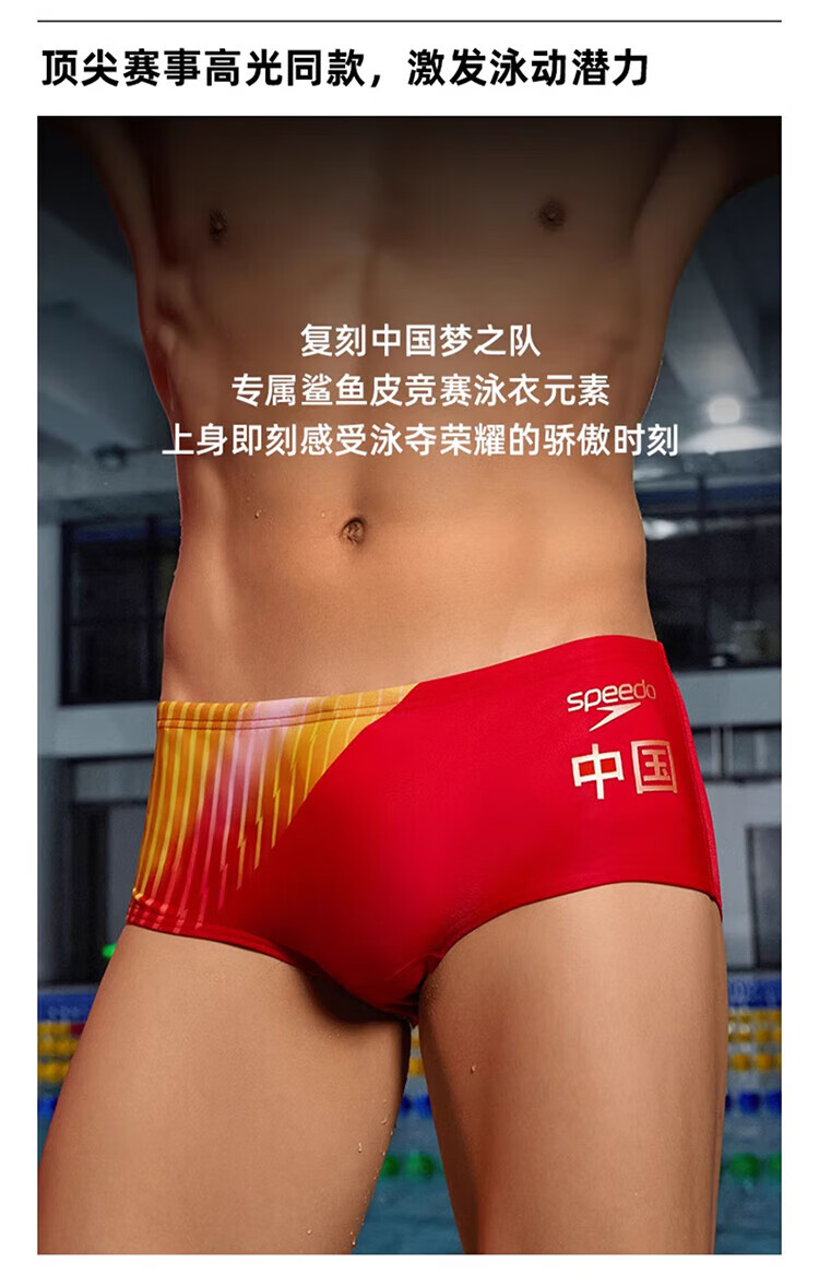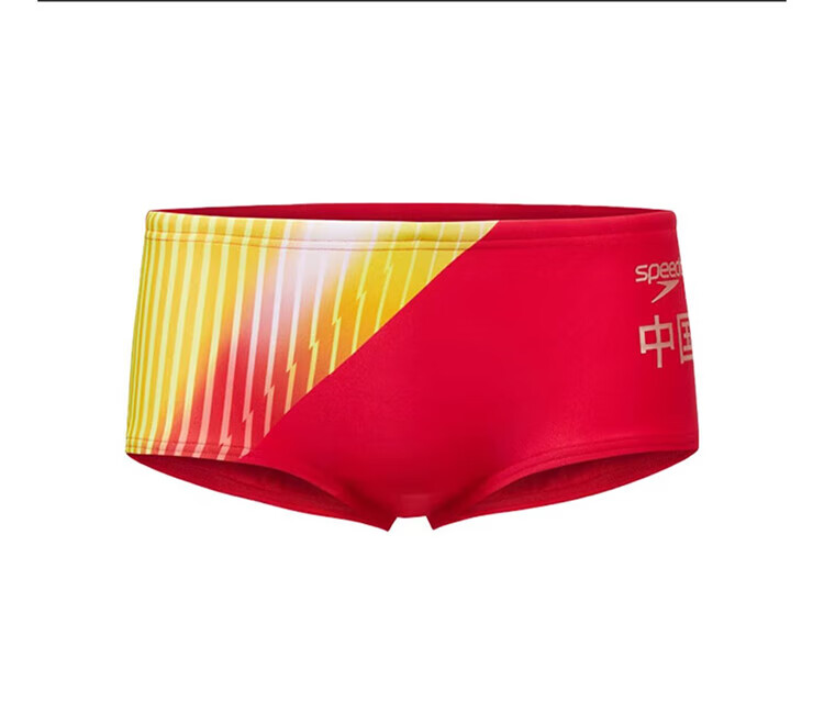 Speedo Chinese Dream Team Shared Edition bedruckte Badehose für Herren, chlorfrei, schnell trocknend, professioneller Wettkampf, langlebige Badehose, rot, Zonenschneiderei, formt Hüft- und Beinstärke S (32), Größe 170/Gewicht 65 Taille/82