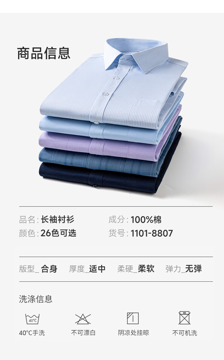 ROMON 100% cotton striped long-sleeved shirt men's business casual young and middle-aged professional formal bottoming no-iron shirt men 4015 41