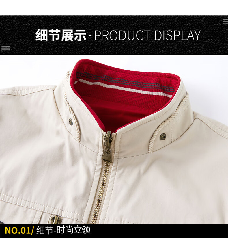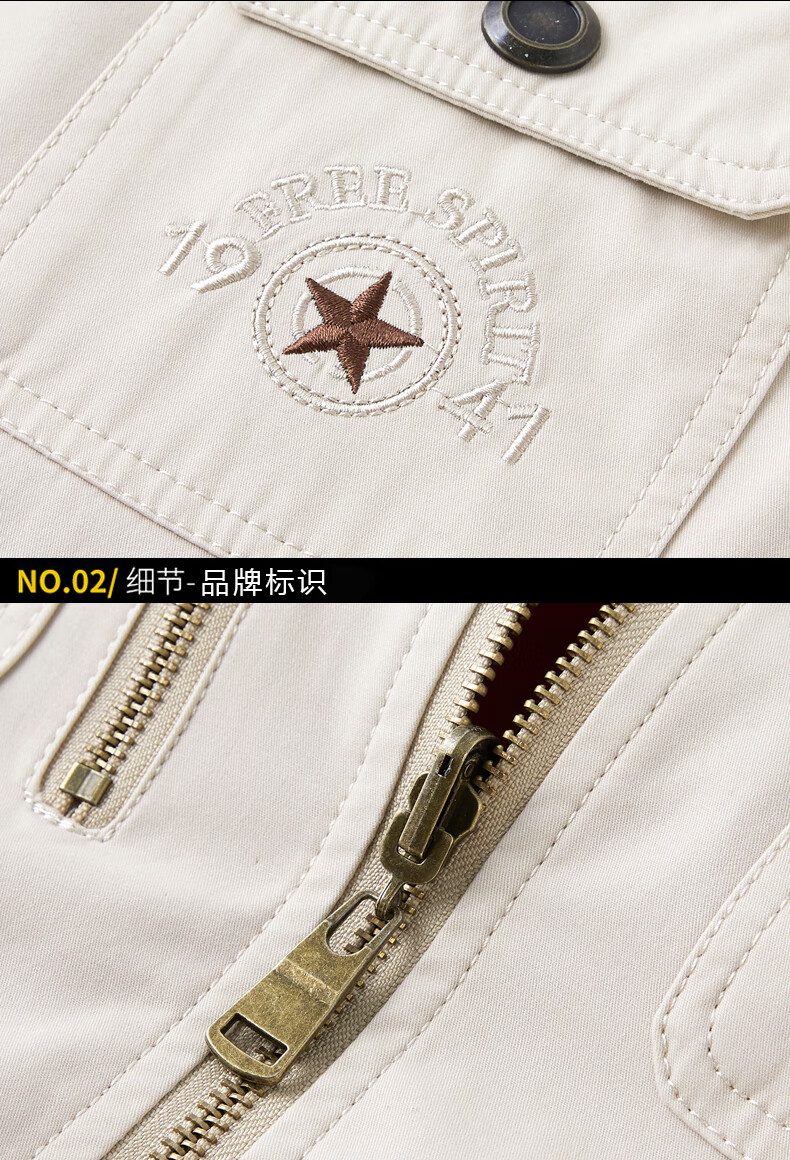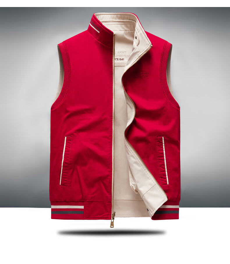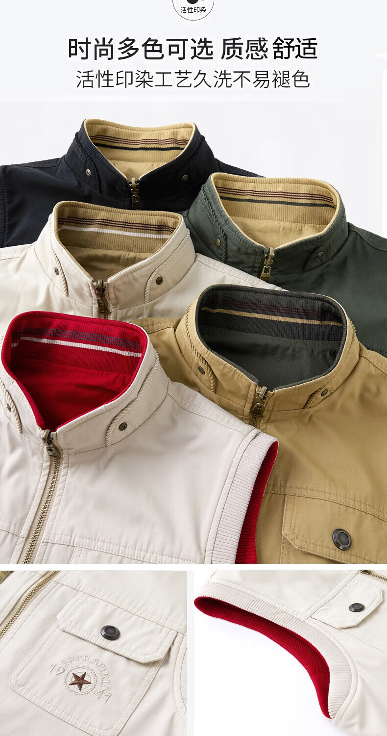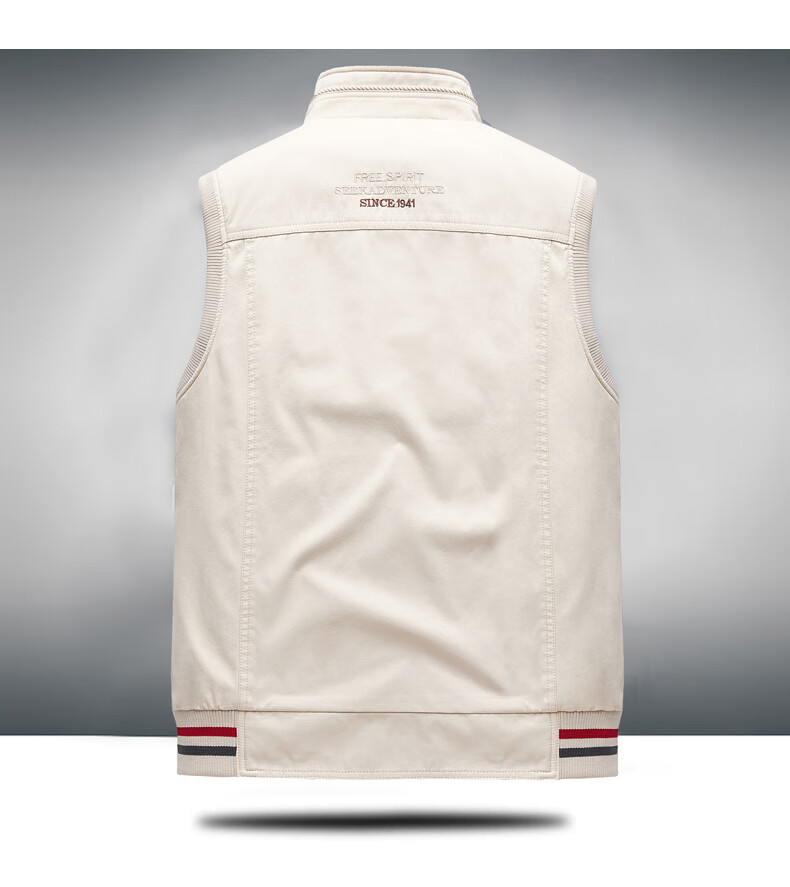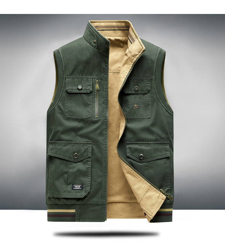 卡思威仪春秋新款双面穿马甲男工装多口袋男士宽松大码纯棉立领无袖外套男 米白色/反面卡其色 XL 【建议140斤体重左右】