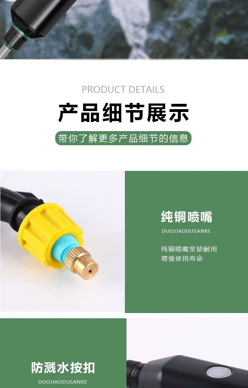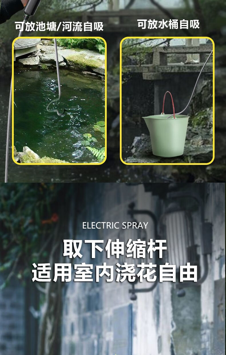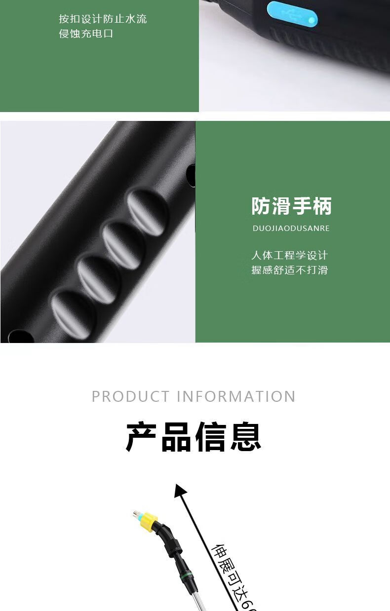 便携式喷雾器打农药全自动电动可伸缩喷枪浇花充电式消毒新款打药 2800mA重力过滤网+5米水管