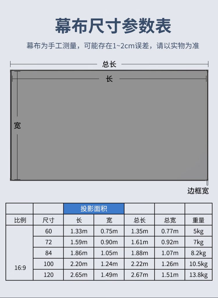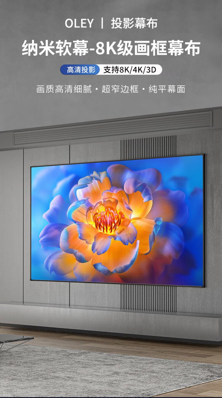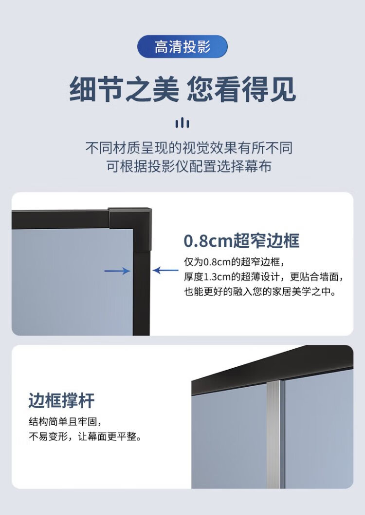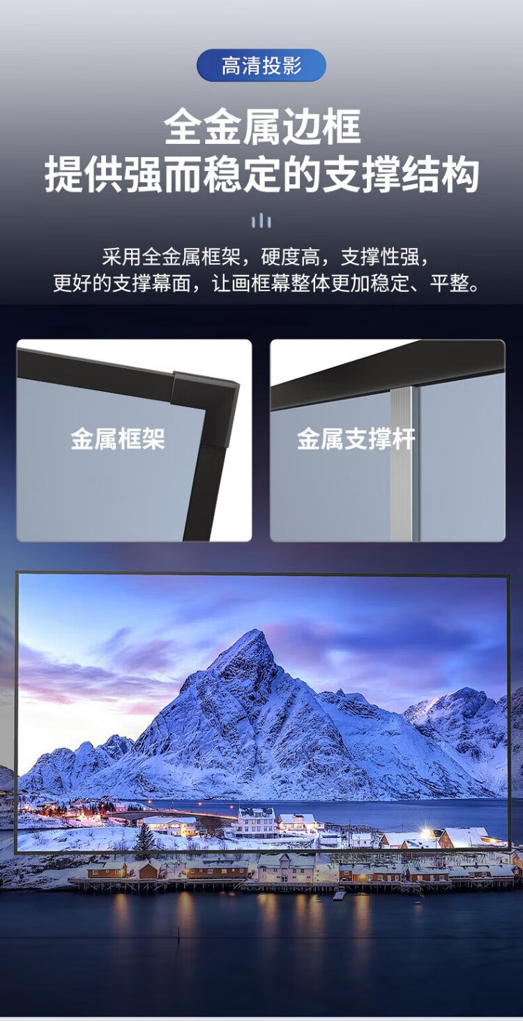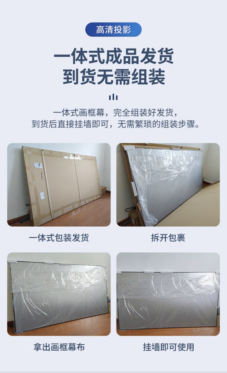 柏莱抗光投影幕布壁挂高清家用 一体式画框幕布投影仪幕布屏幕 家庭影院电视金属墙面投影布幕布 4K金属软幕【上门安装】 16:9 100英寸【包装230*130*4cm】