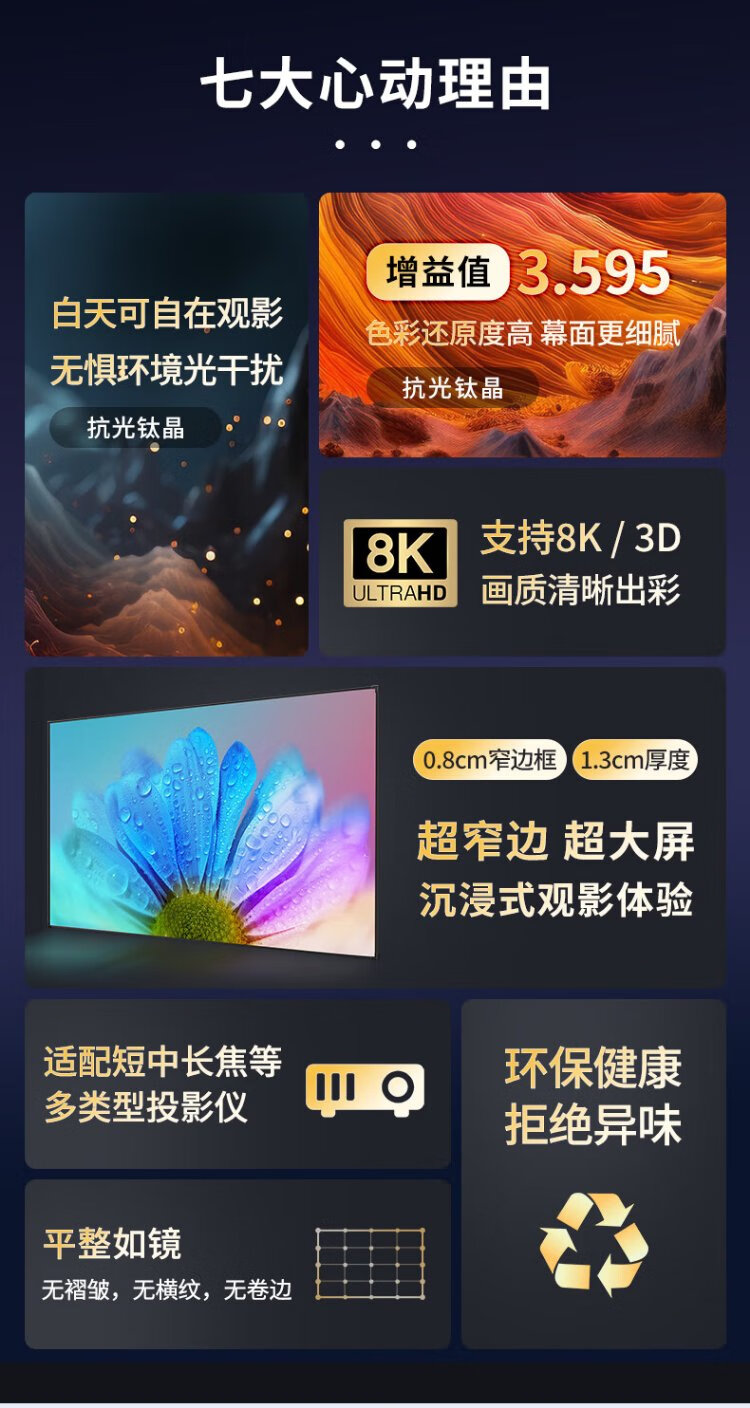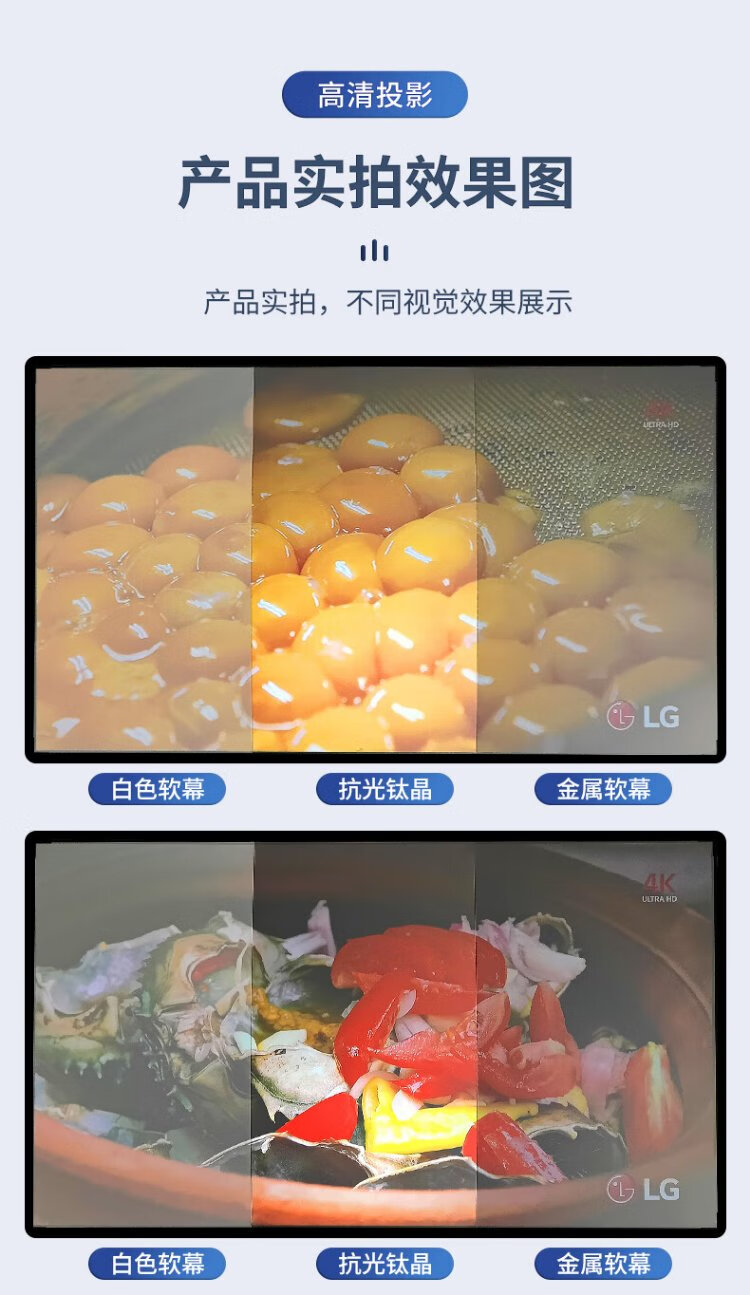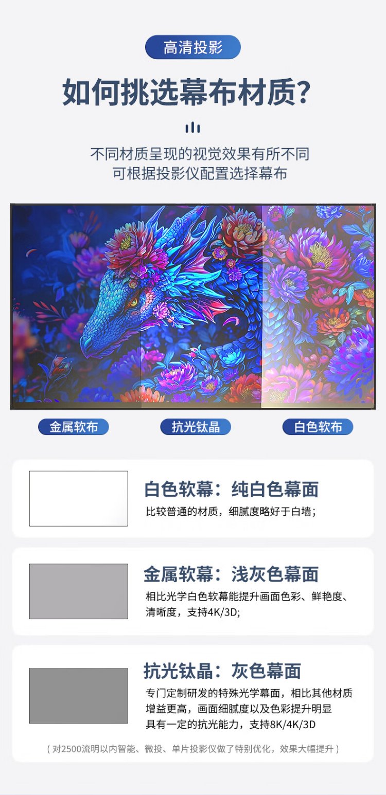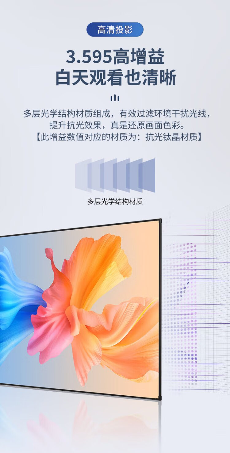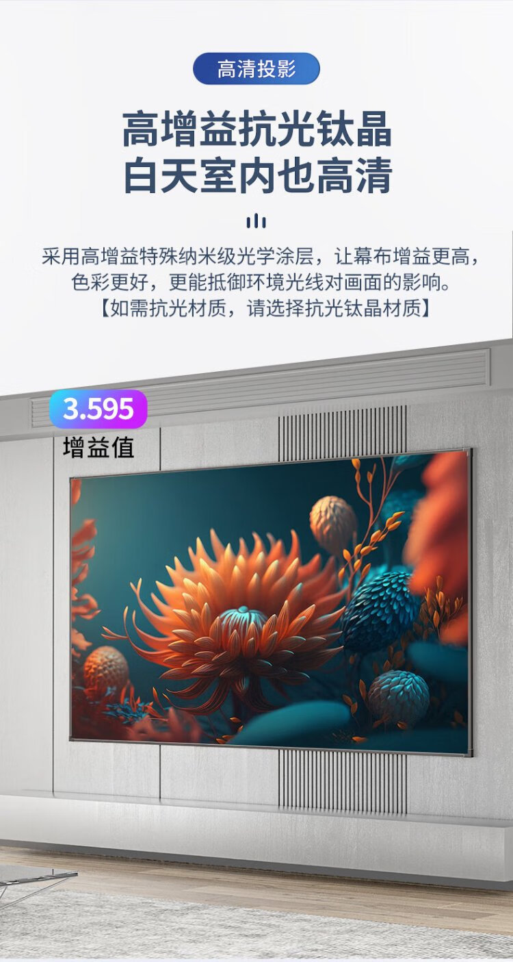 柏莱抗光投影幕布壁挂高清家用 一体式画框幕布投影仪幕布屏幕 家庭影院电视金属墙面投影布幕布 4K金属软幕【上门安装】 16:9 100英寸【包装230*130*4cm】