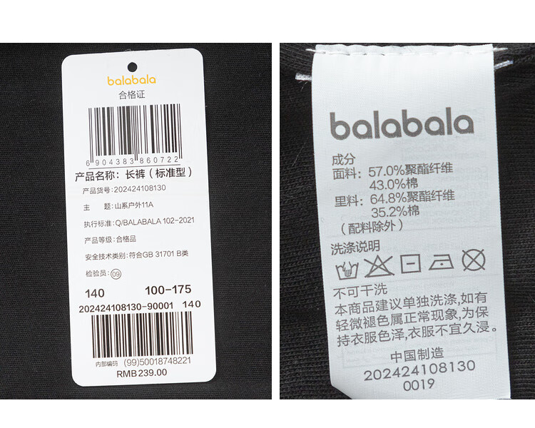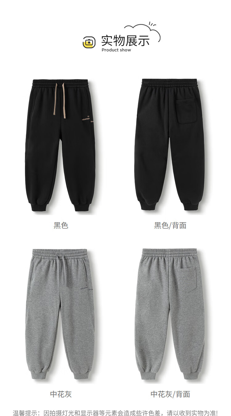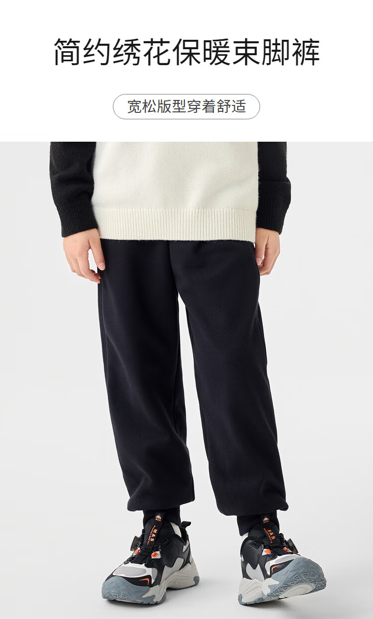 巴拉巴拉童装男童裤子秋冬款束脚裤儿童长裤时尚休闲运动卫裤百搭 黑色90001 130