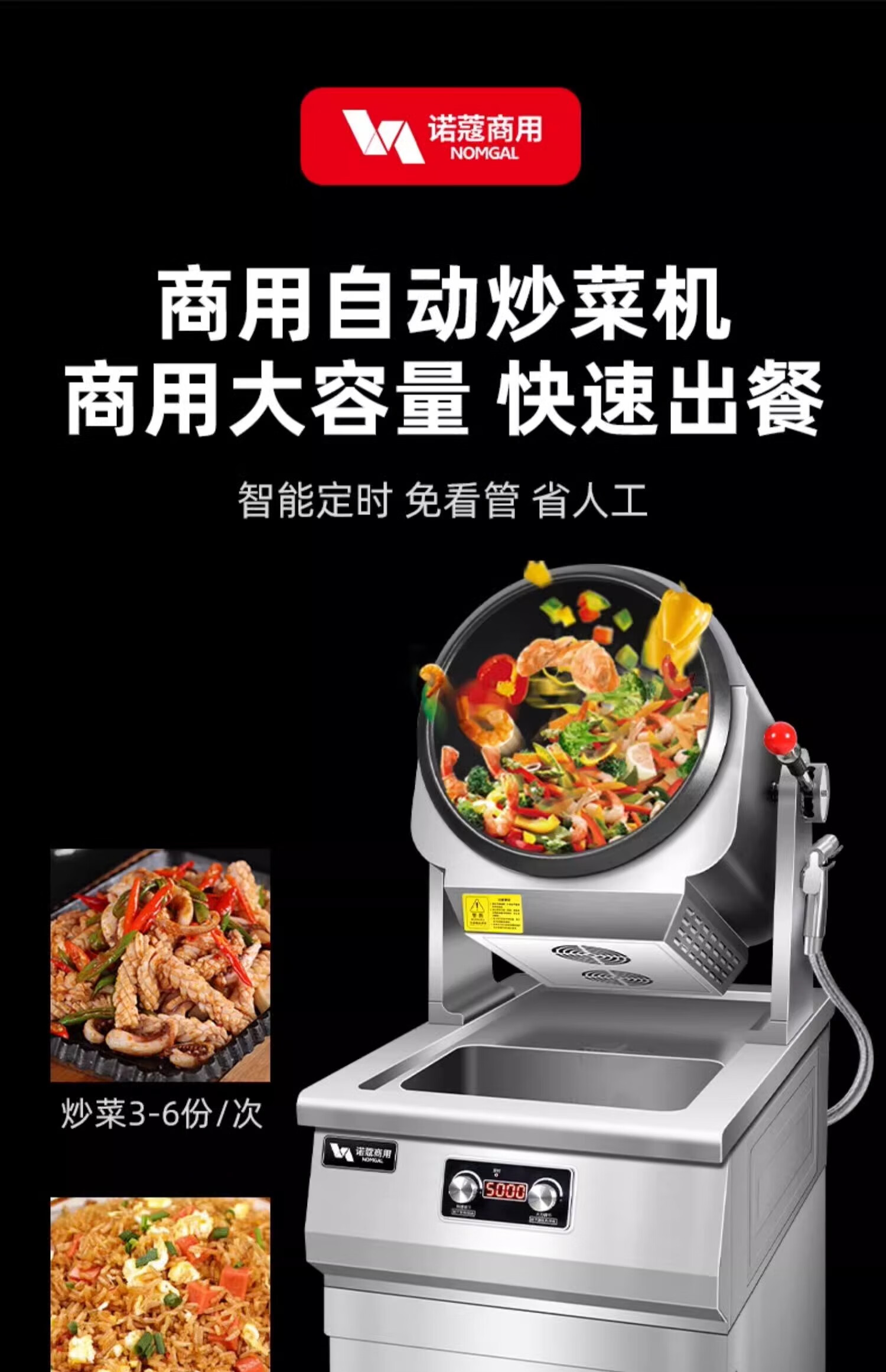 NOMGAL cooking machine commercial intelligent automatic drum fried rice stir-fry machine multi-functional cooking robot takeaway catering canteen kitchen robot gas liquefied gas cooking machine economical bracket 8000W 30 type round bottom intelligent timing water gun