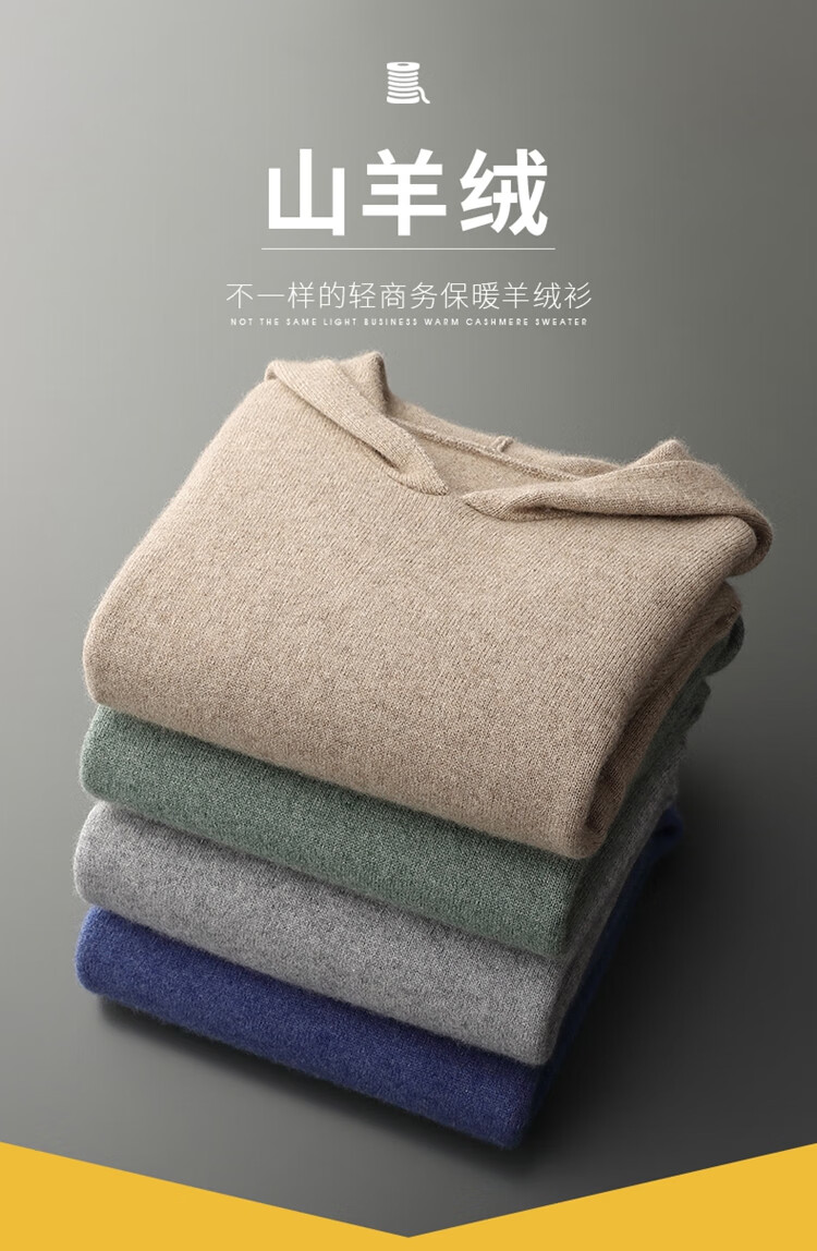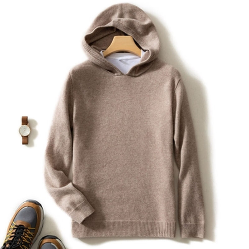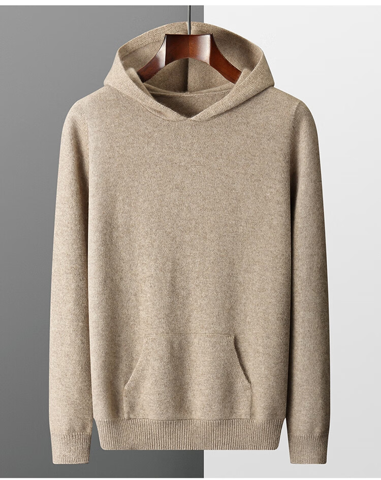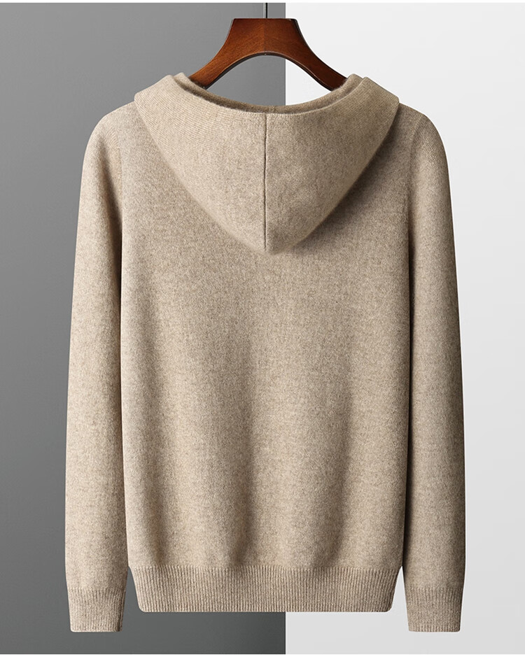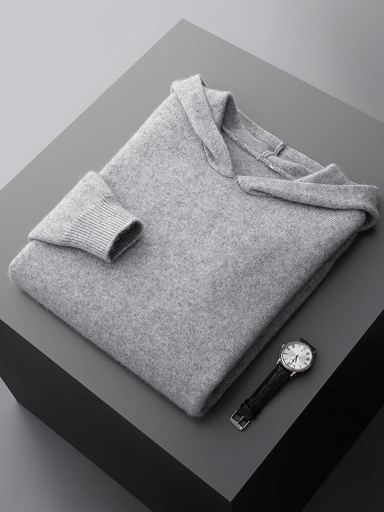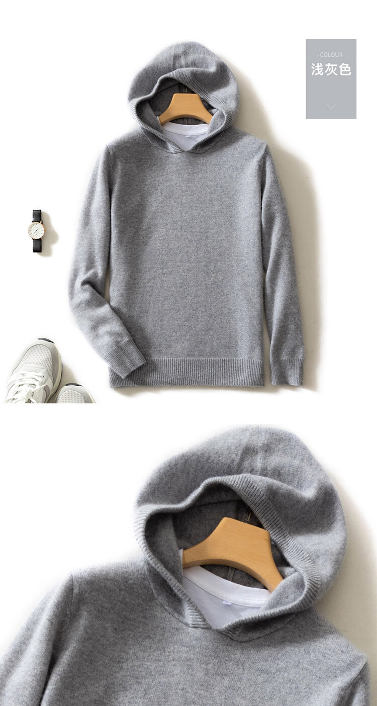 KAISENSHI Ordos City 2024 new pure cashmere men's hoodie sweater long-sleeved casual knitted sweatshirt thickened model produced in Ordos City - light gray without pockets XD M