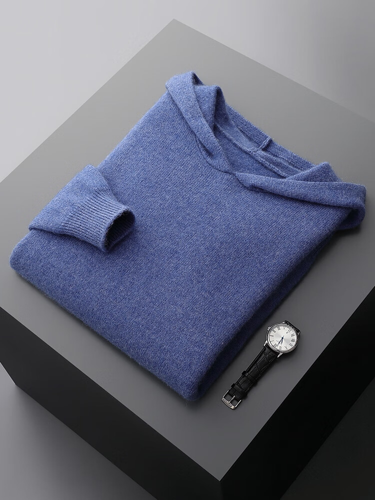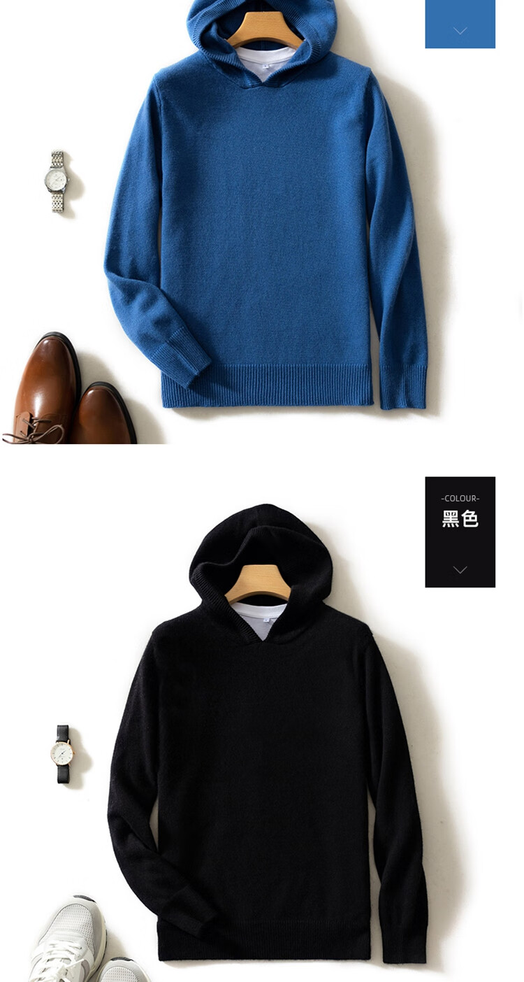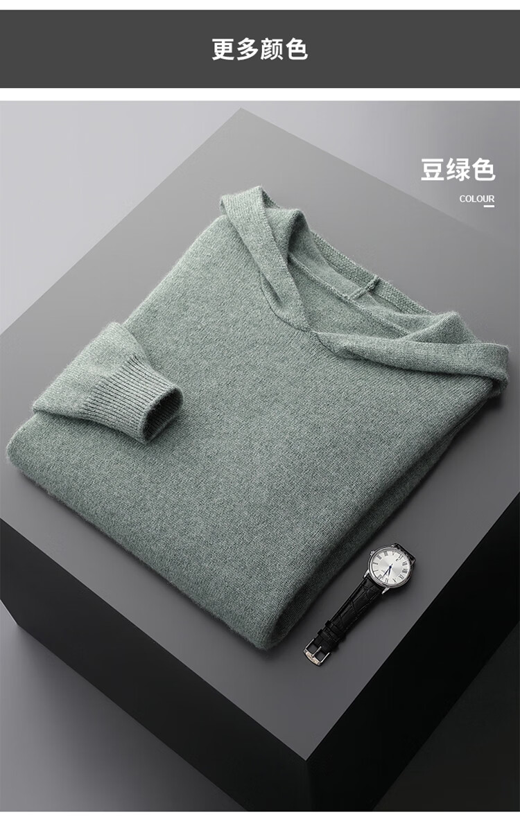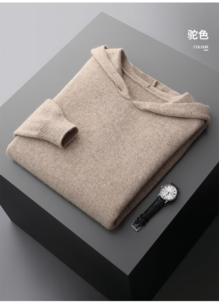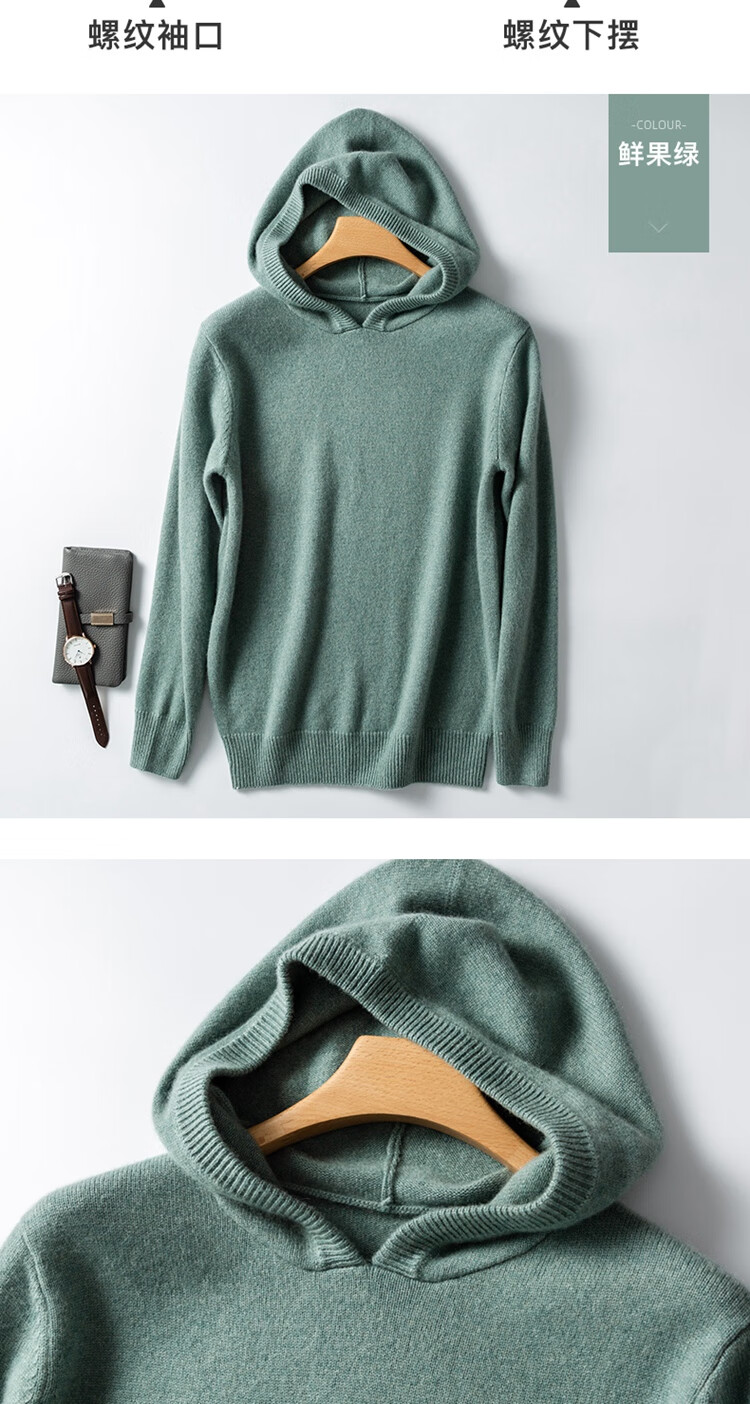 KAISENSHI Ordos City 2024 new pure cashmere men's hoodie sweater long-sleeved casual knitted sweatshirt thickened model produced in Ordos City - light gray without pockets XD M