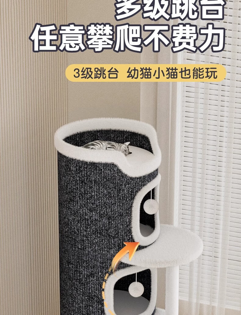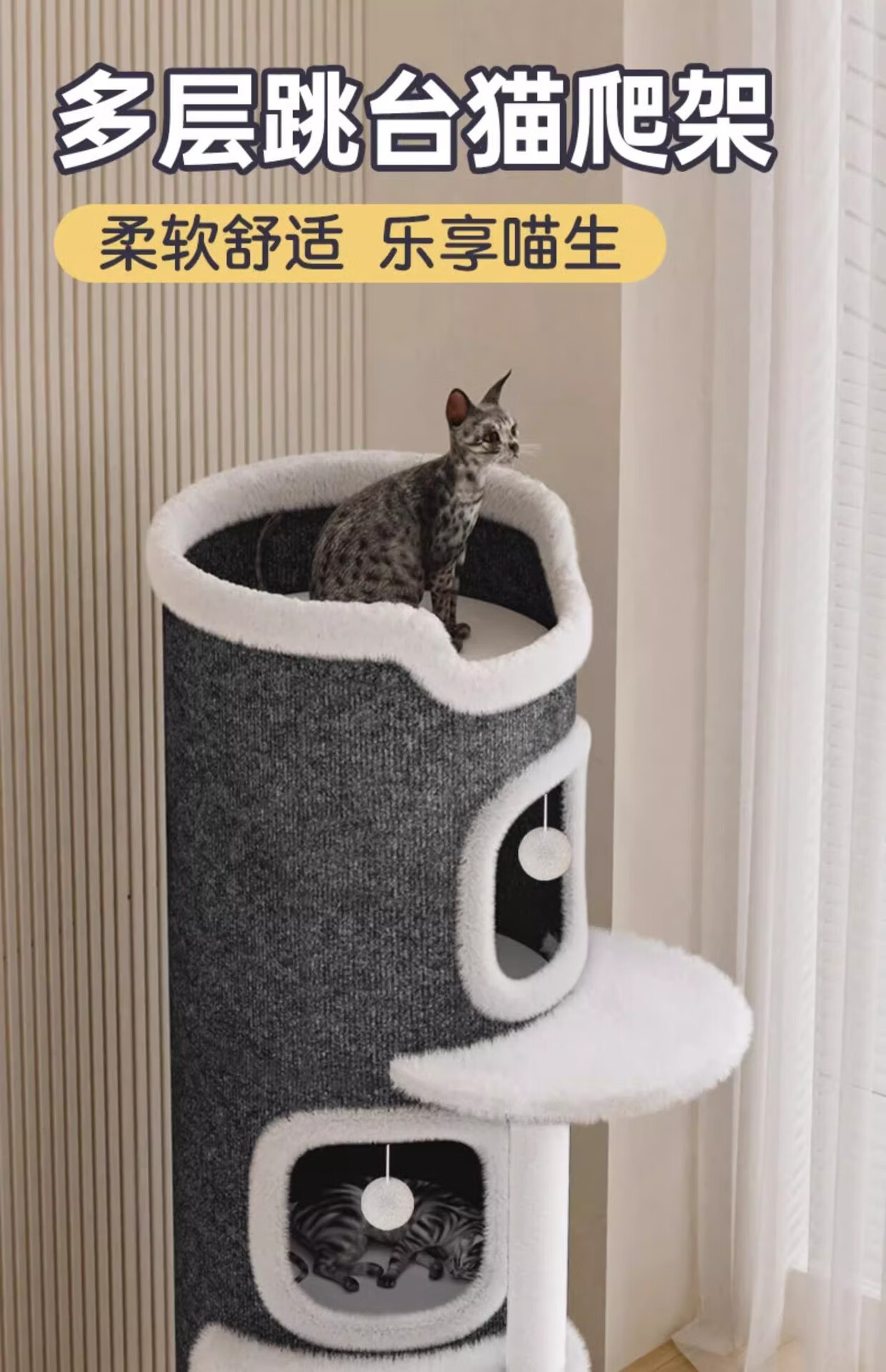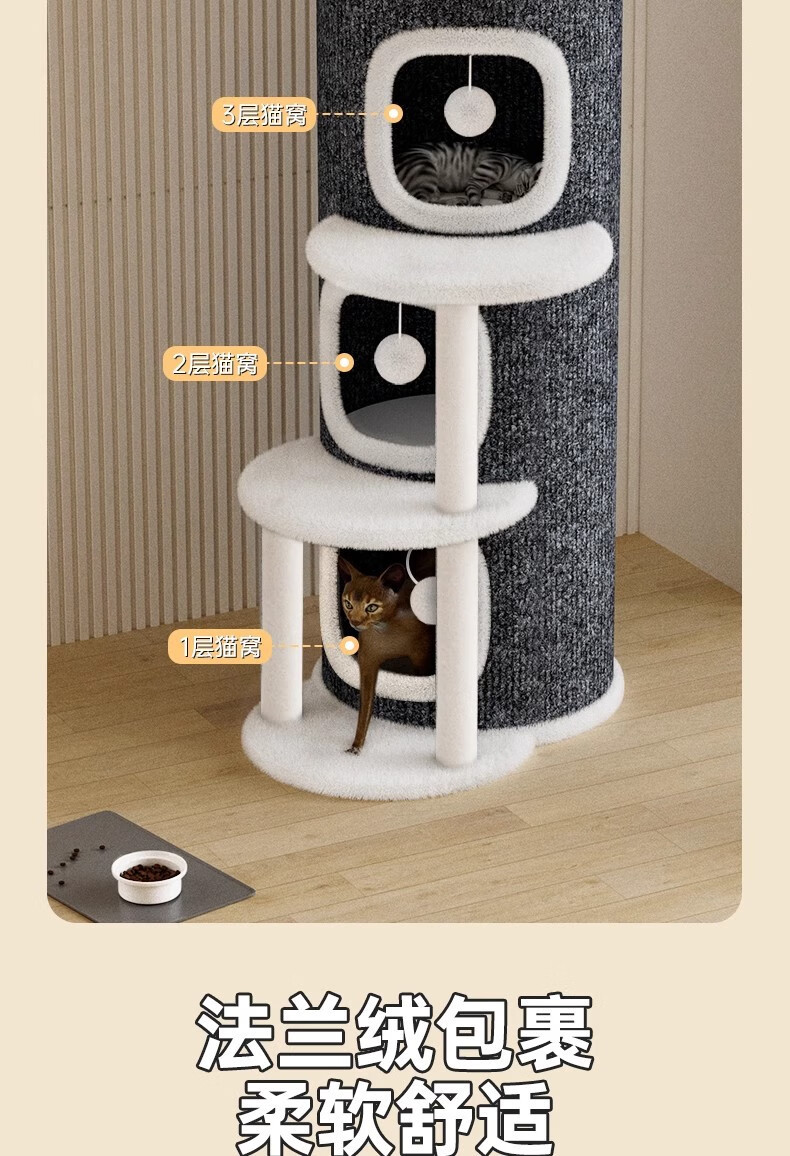 施尼鹿猫桶猫窝抓毯猫架封闭式一体猫爬架猫屋四季通用树洞猫跳台玩具 60cm 2层 大号方桶