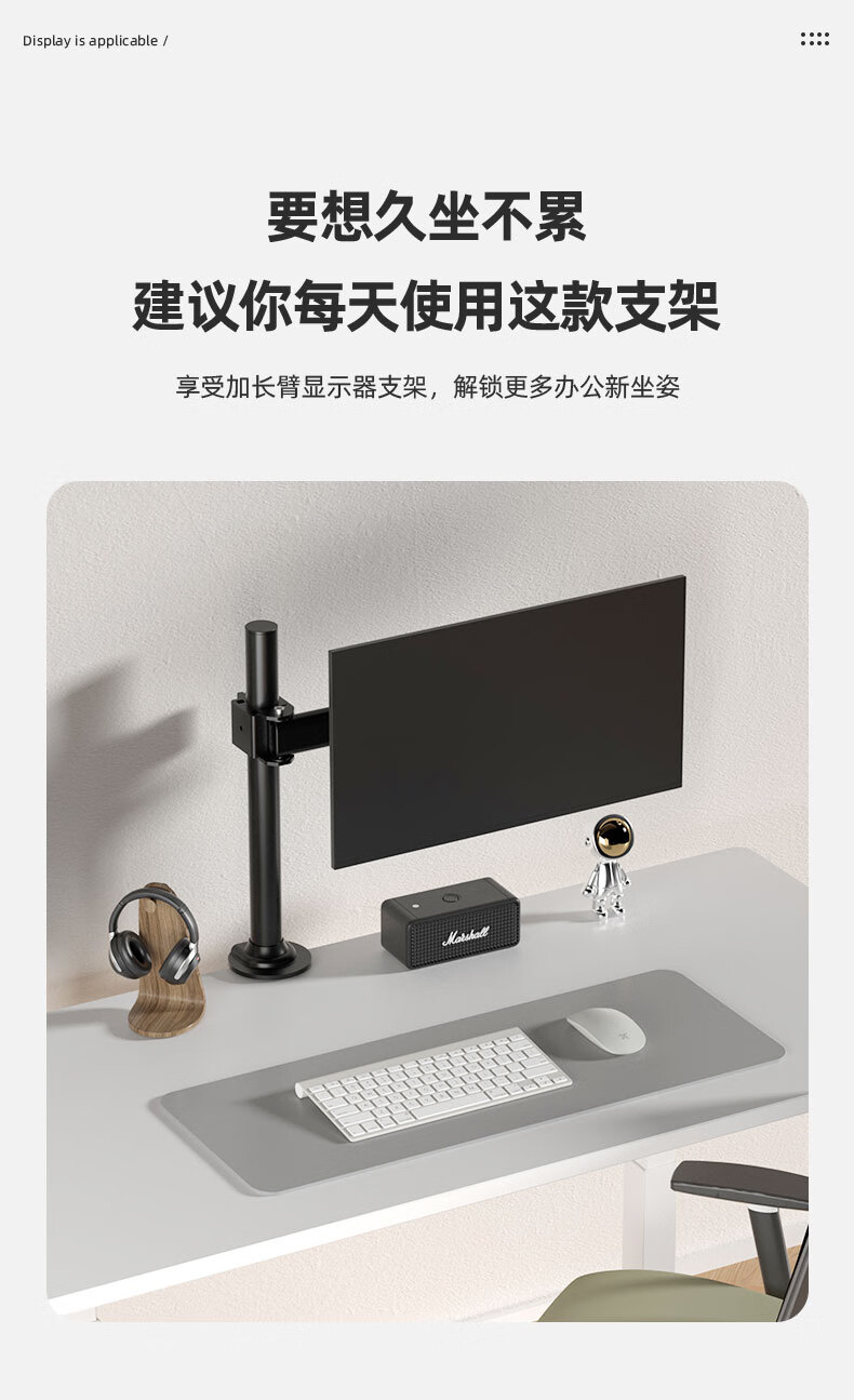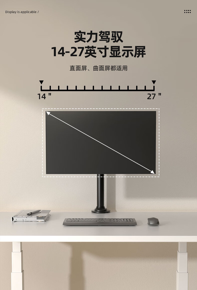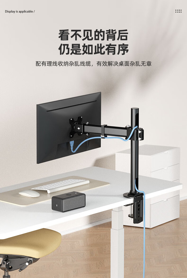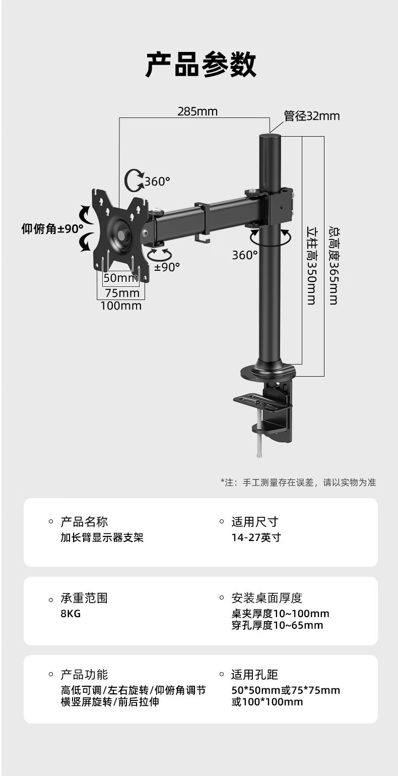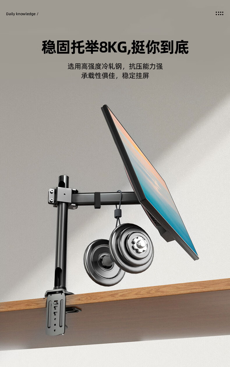 Budi 24/27-inch computer monitor desktop lifting bracket can be hung upside down on the wall to increase the height of the horizontal and vertical screens. 14-27 inches is suitable for clamping or perforation installation. The column is 35 cm.