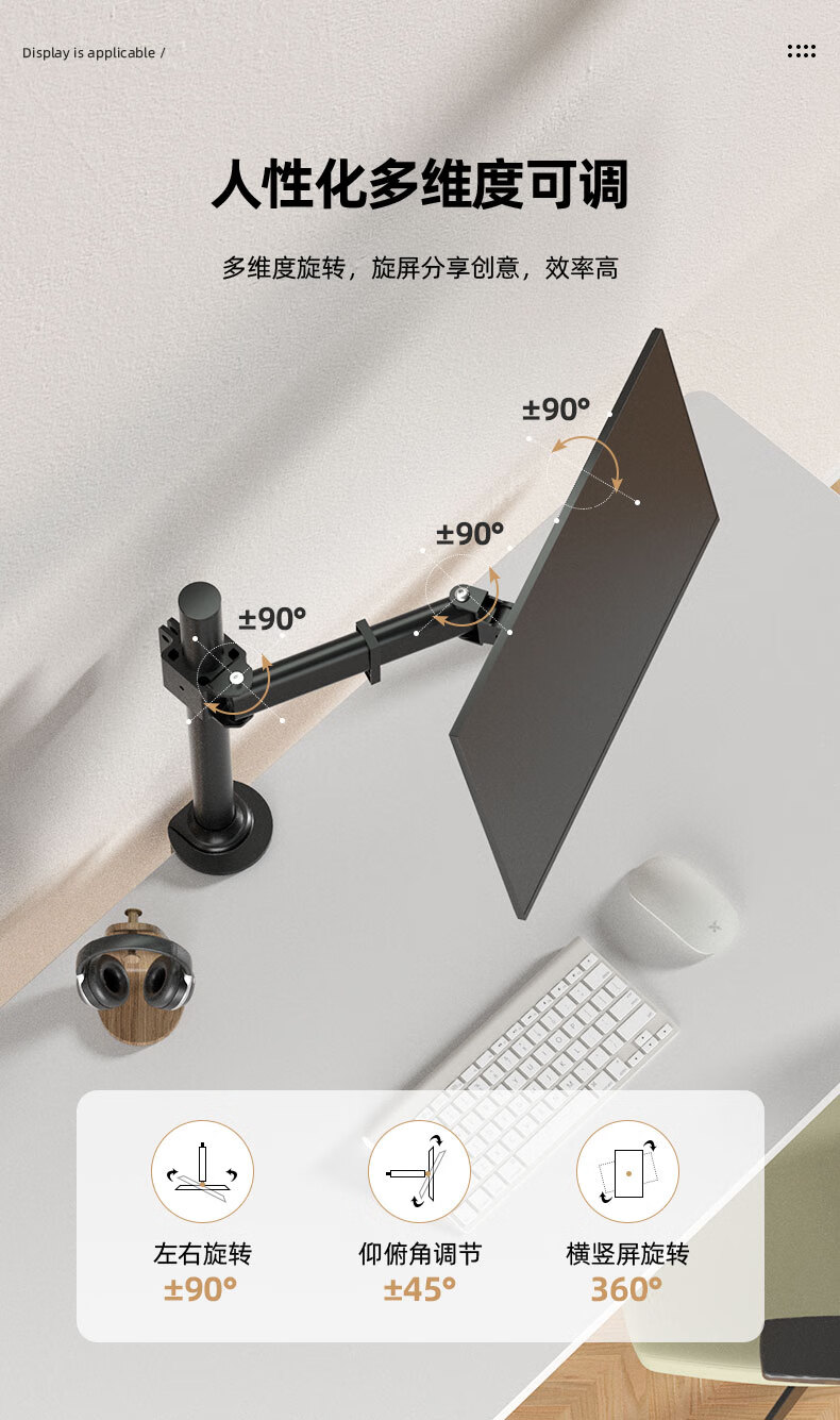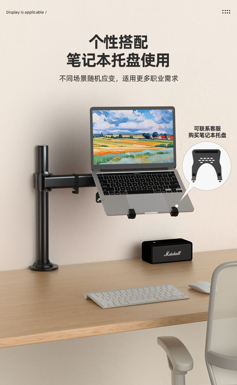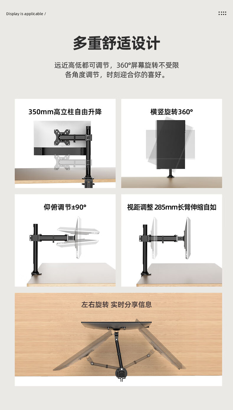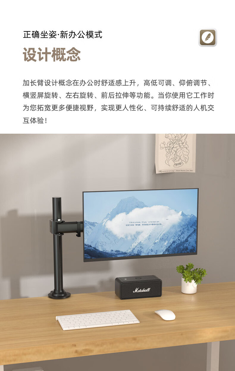 Budi 24/27-inch computer monitor desktop lifting bracket can be hung upside down on the wall to increase the height of the horizontal and vertical screens. 14-27 inches is suitable for clamping or perforation installation. The column is 35 cm.